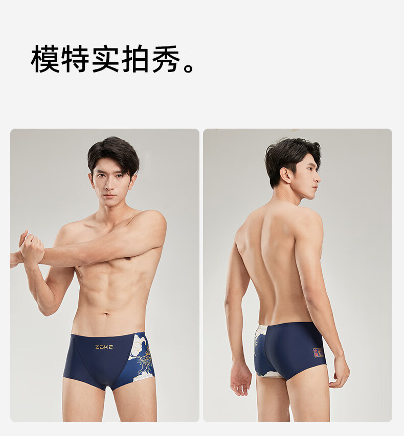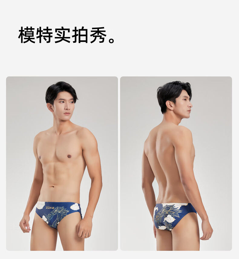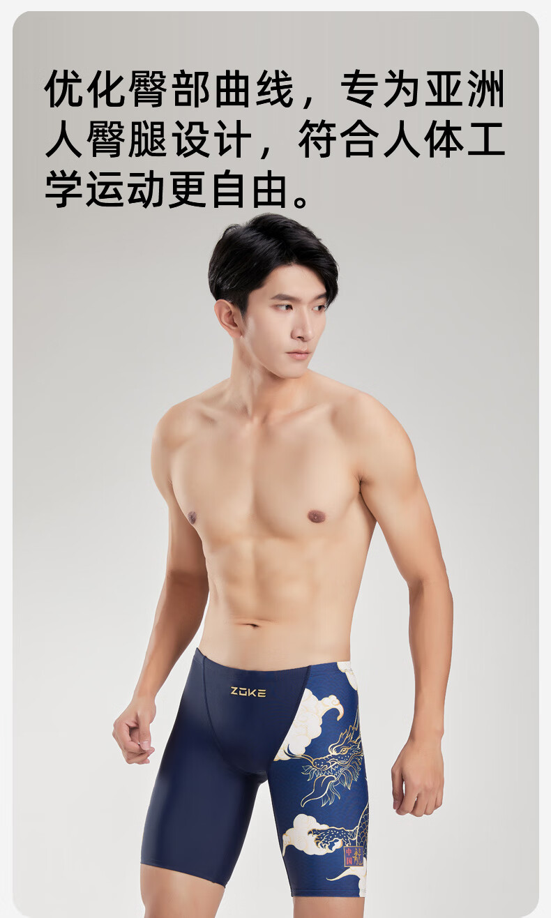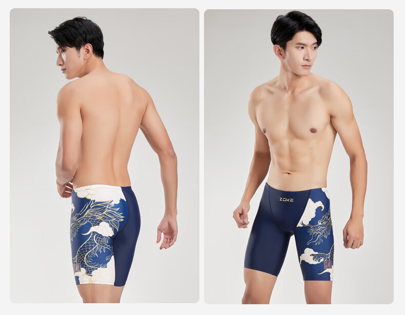 ZOKE Herren-Badehose, Fünf-Punkt-Schwimmtraining, flacher Winkel, schnell trocknend, Jugend-Wettkampf-Dreieck, blauer Drache, Badehose, fünf Punkte, tiefblaues Gold, chinesischer Drache_123536885 M
