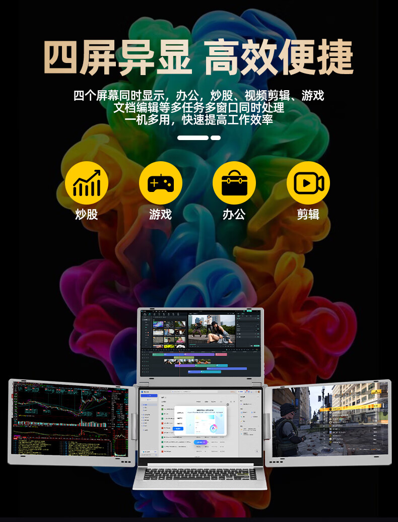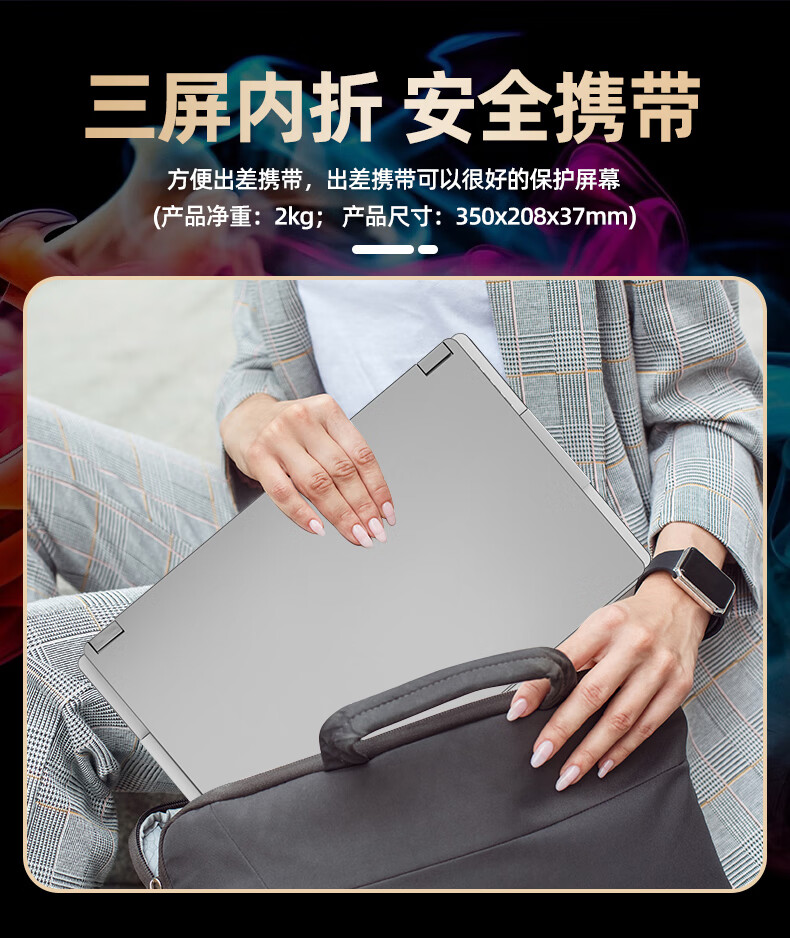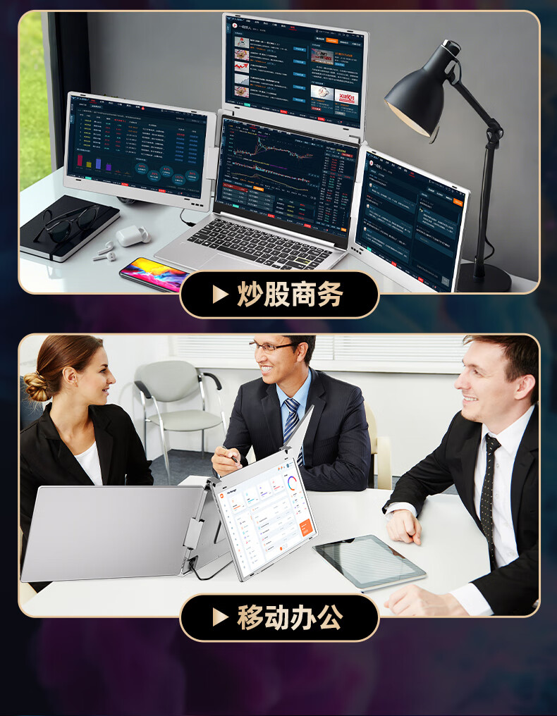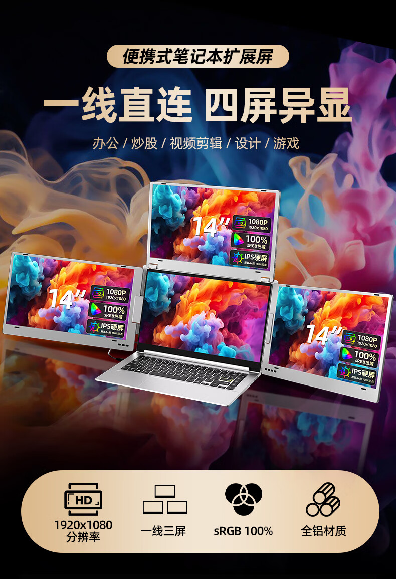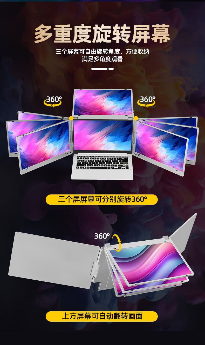 THINKSEA tragbarer Notebook-Computer mit drei Bildschirmen, erweiterter Bildschirm, Büro, Aktienhandel, Videobearbeitung, Design, Spiel, sekundärer Bildschirm, einzeiliger Direktanschluss, Vier-Bildschirm-Differentialanzeige, tragbares 14-Zoll-Dreibildschirm-Display, Vollaluminiumlegierungsmaterial, einzeiliger Direktanschluss