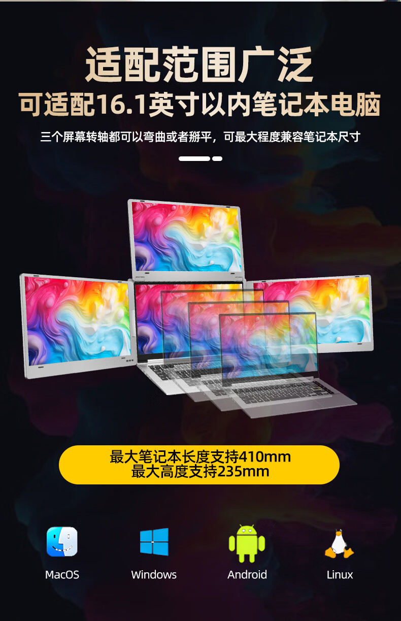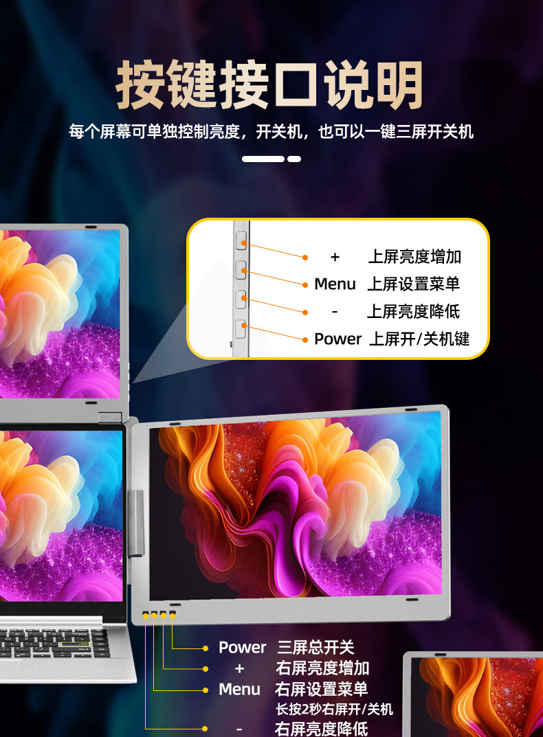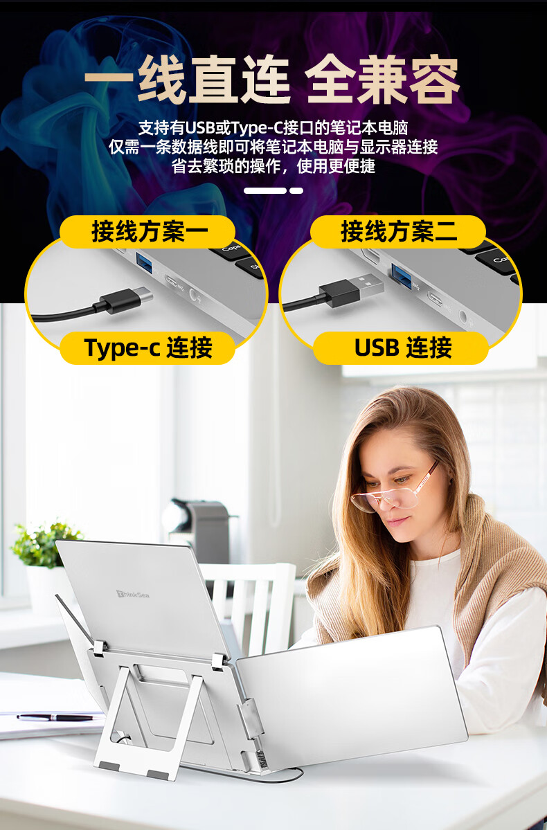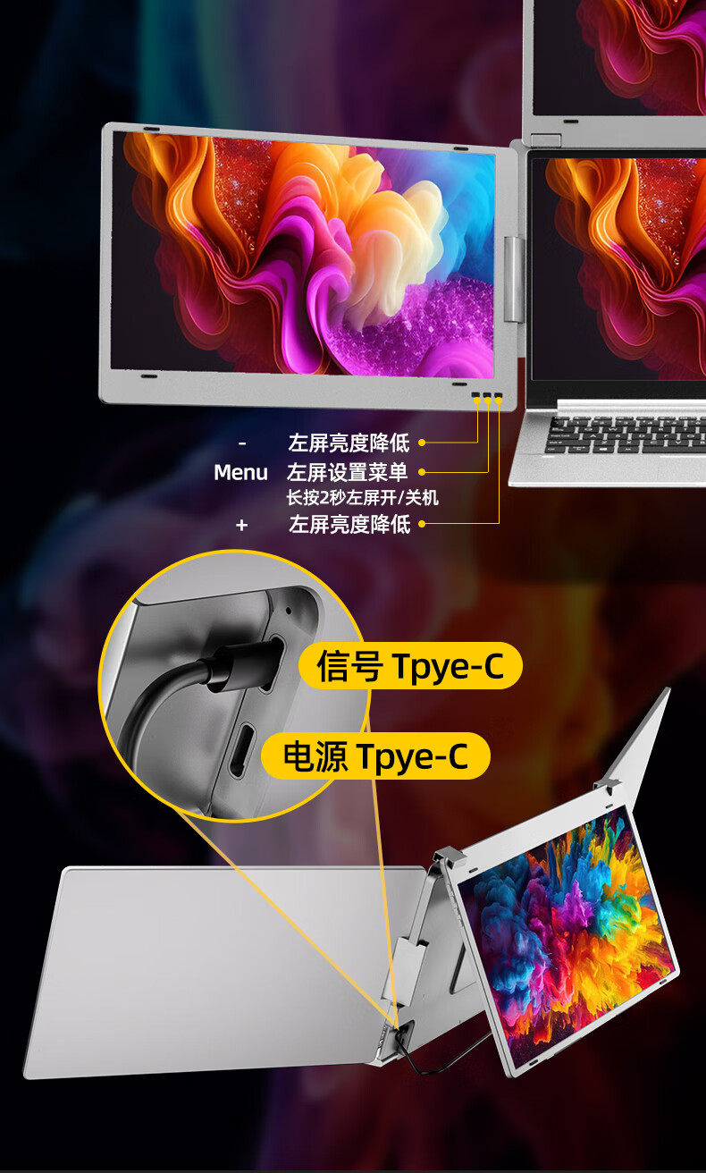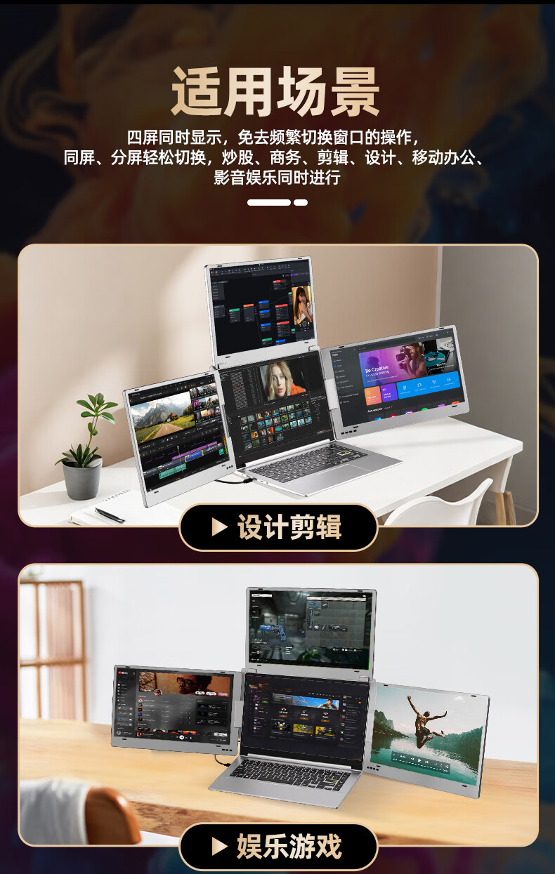 THINKSEA tragbarer Notebook-Computer mit drei Bildschirmen, erweiterter Bildschirm, Büro, Aktienhandel, Videobearbeitung, Design, Spiel, sekundärer Bildschirm, einzeiliger Direktanschluss, Vier-Bildschirm-Differentialanzeige, tragbares 14-Zoll-Dreibildschirm-Display, Vollaluminiumlegierungsmaterial, einzeiliger Direktanschluss