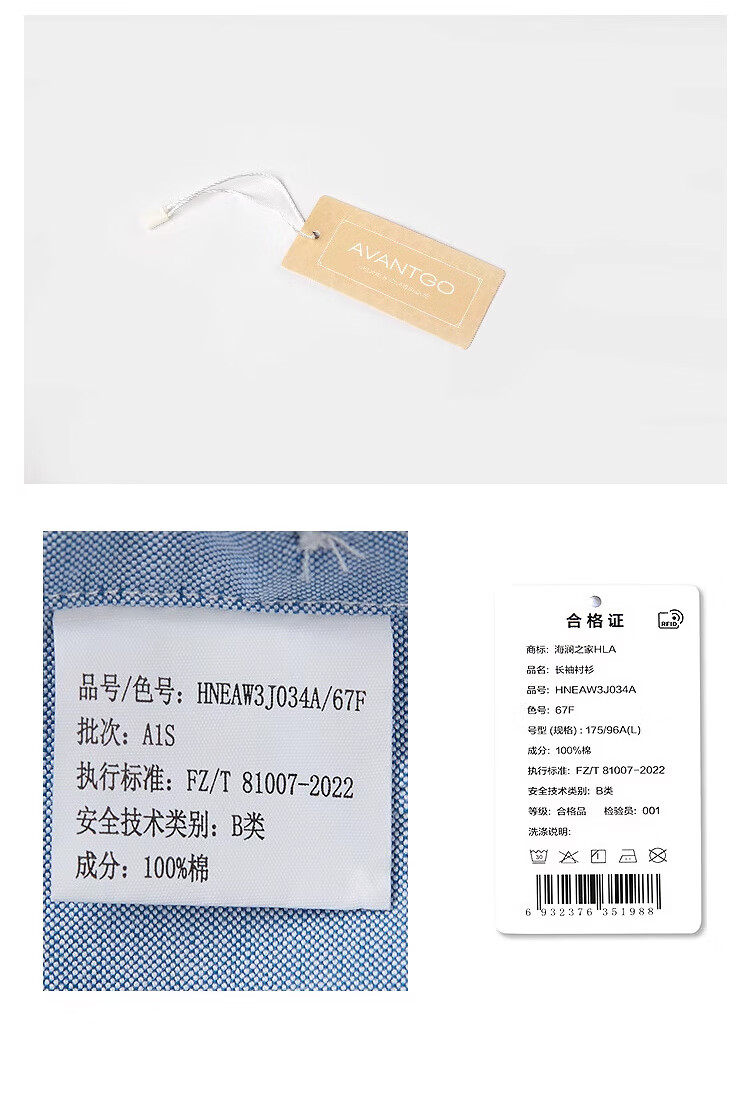HLA Hailan House Shirt Automne Light Business Classic Series Pur Coton Chemise Grande Taille Homme Bleu Clair 67 L 175/96A Recommandé 149~160Jin Jin équivaut à 0,5 kg