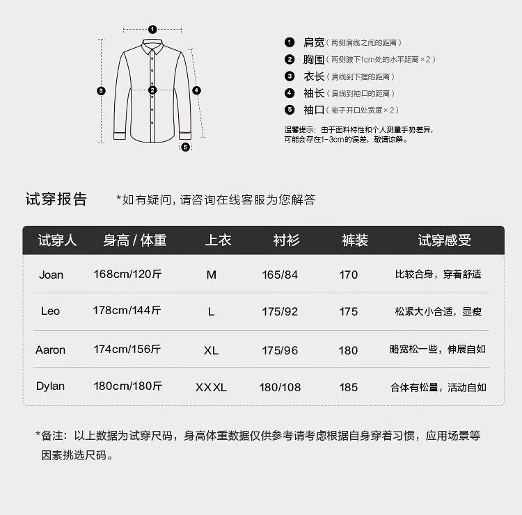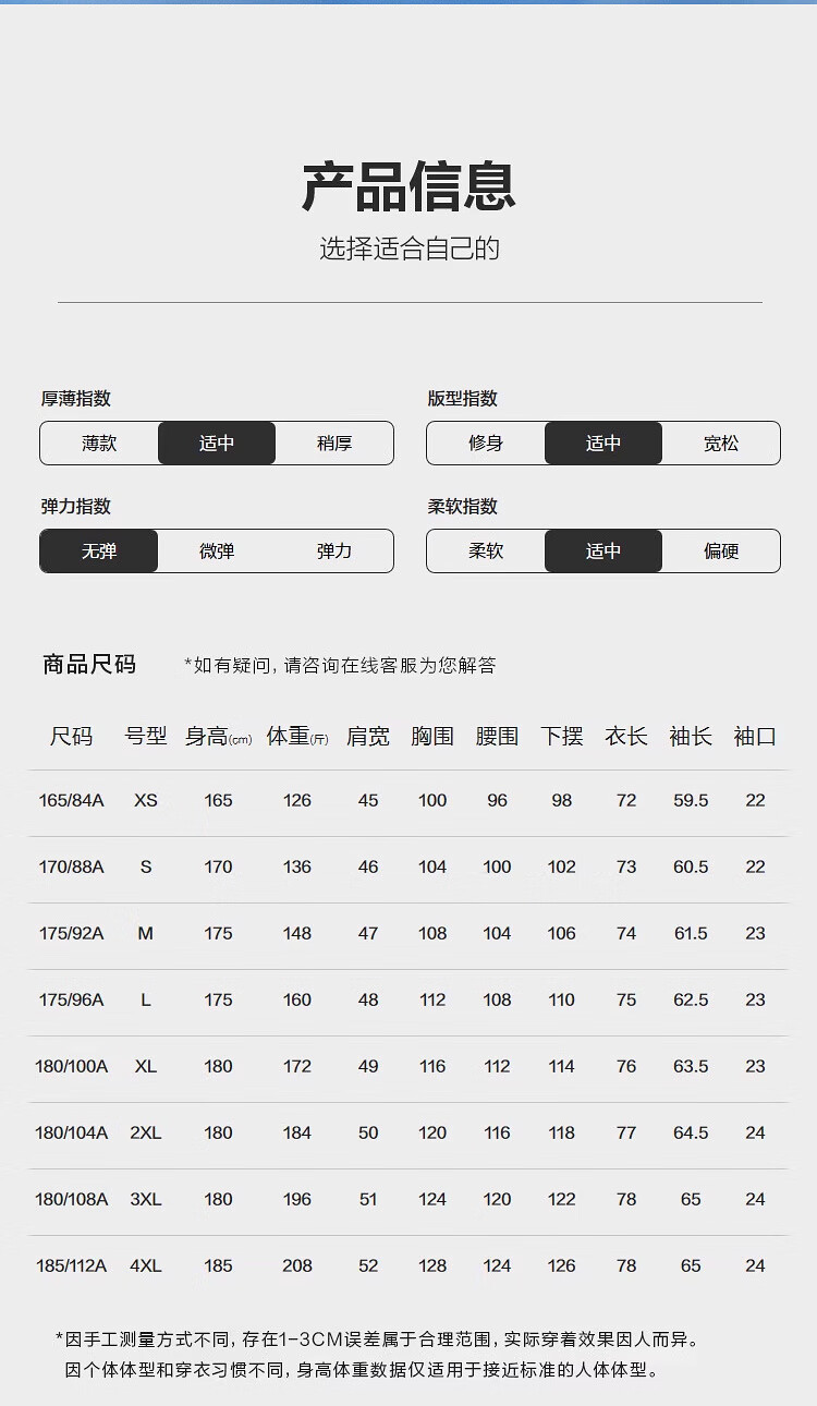 China (cm) 160-165/84-86 165-170 / 88-90 167-172 / 92-96 168-173 / 98-102 170-176 / 106-110