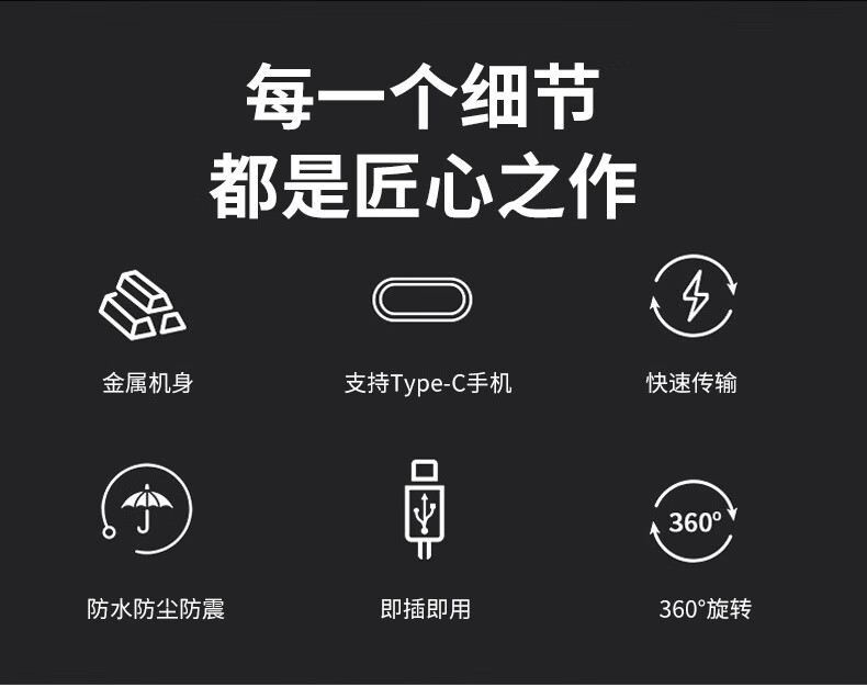 金土顿u盘手机电脑两用64g32g学生办公Typec双接口3.0高速16g定制 黑色【五年质保】免费刻字 16GB