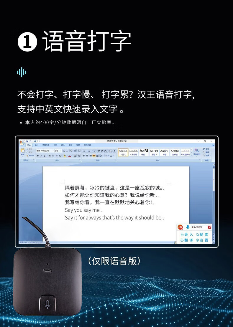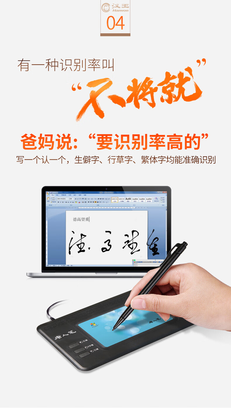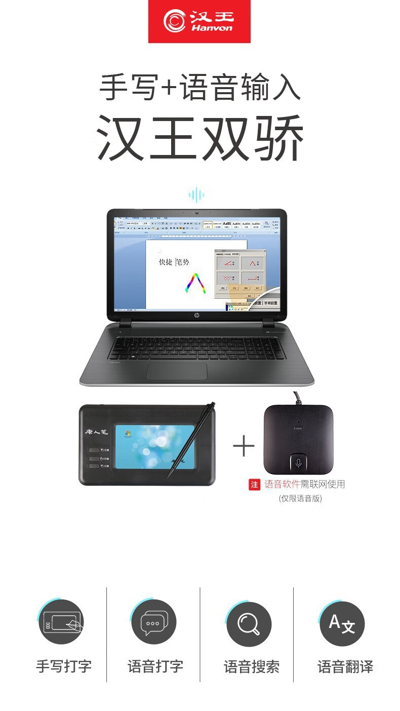 汉王(Hanvon) 智能语音打字手写板连电脑打字翻译电脑写字板台式笔记本通用老人输入板大屏吉祥 免安装挑战者:多字连写+语音校对+赠鼠标垫】