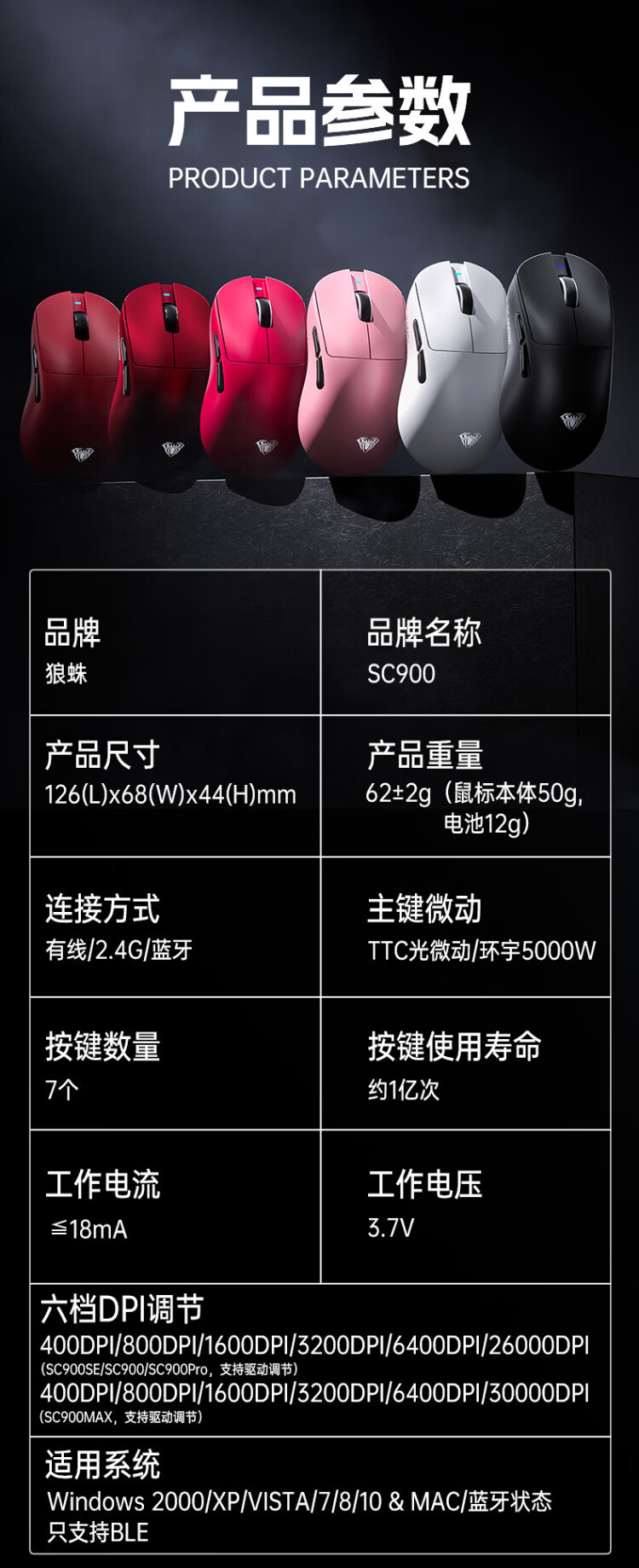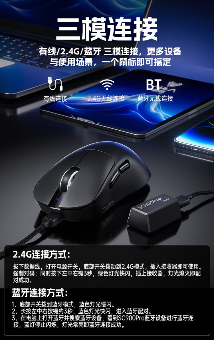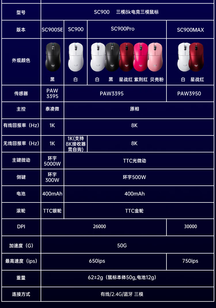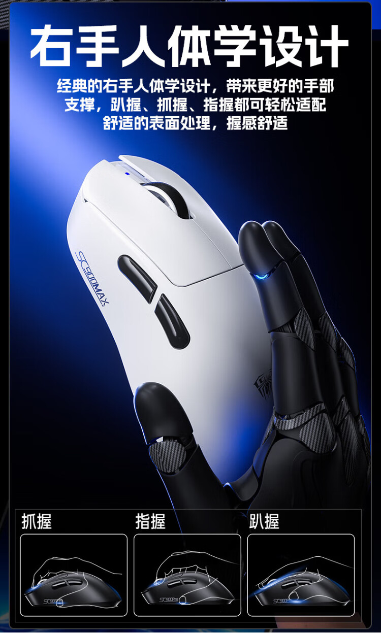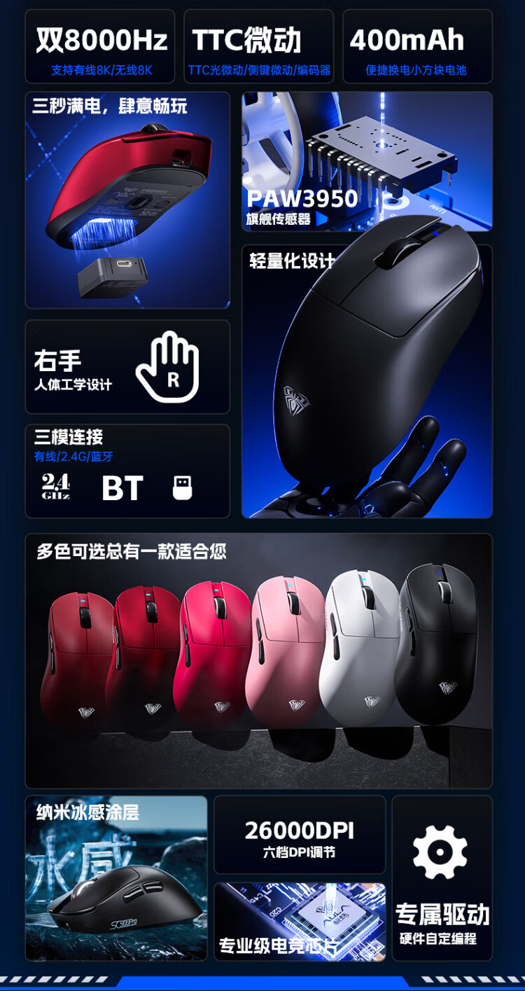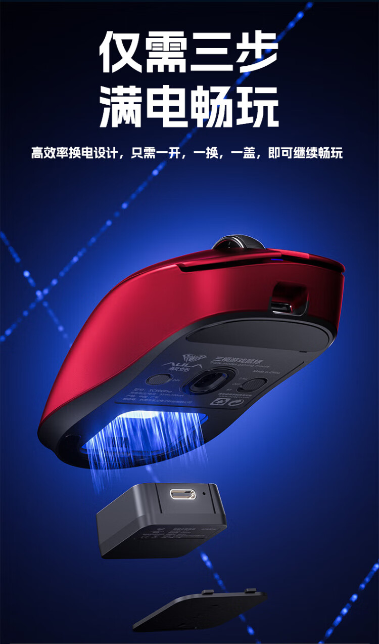 Wolf Spider (AULA) High-End-Gaming-Maus der SC900-Serie, kabellose 2,4G/Bluetooth/kabelgebundene Drei-Modus-Verbindung, leicht, Hot-Swap-fähiger Akku, austauschbar, maximale Dual-8K-Return-Rate, einzelner Akku SC900-white-PAW3395