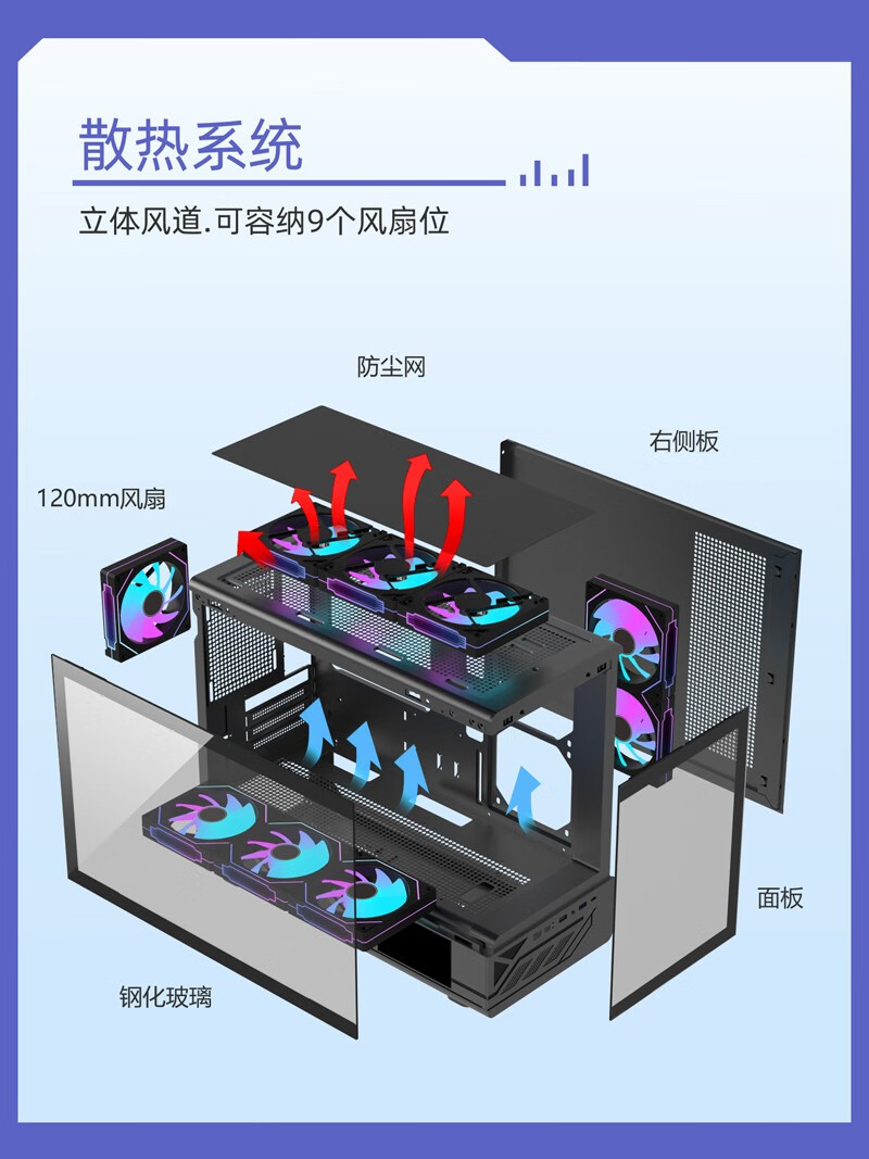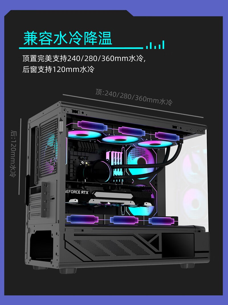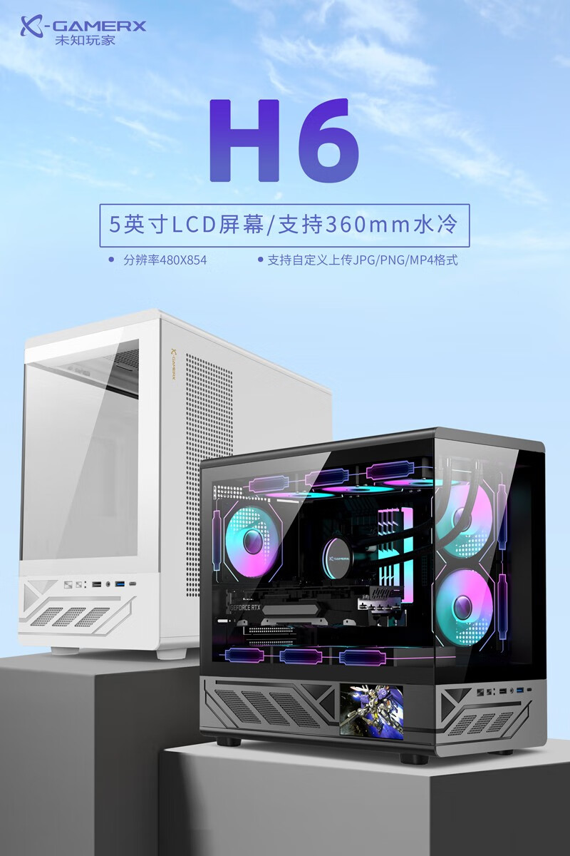 PowerTrain Unknown Player H6 White Sea View Room-Chassis mit Bildschirm Computer-Hauptgehäuse MATX Desktop Säulenlose Glasseite Transparent 360 Wassergekühltes Game-Chassis Unterstützt Typ-C Unknown Player H6 White + Prism Pro-Chassis-Lüfter der 7. Generation*6