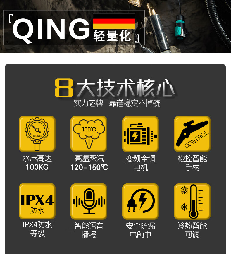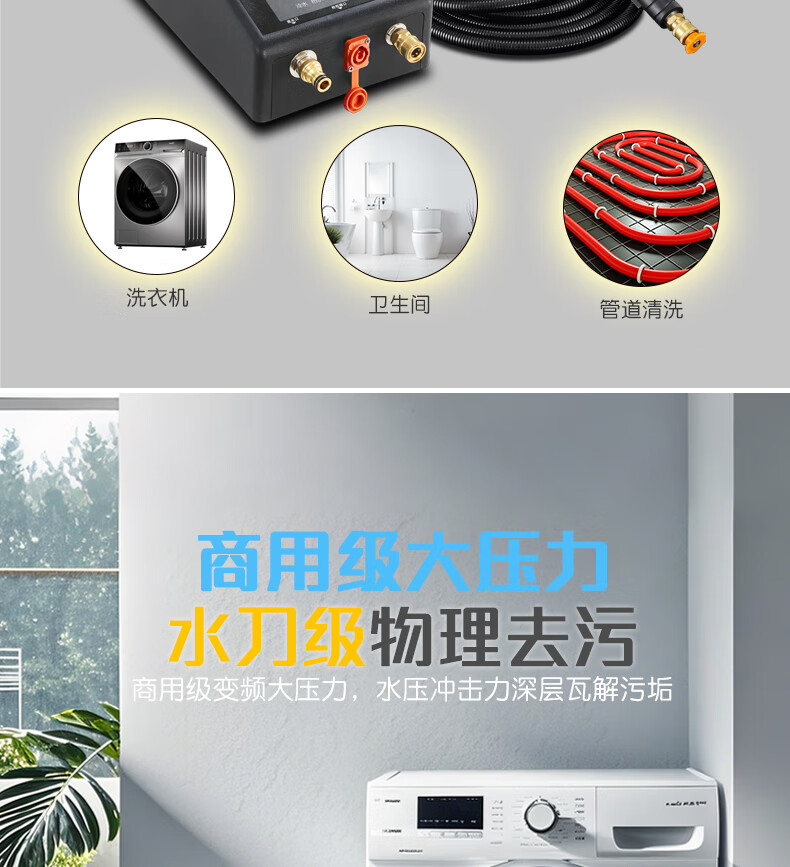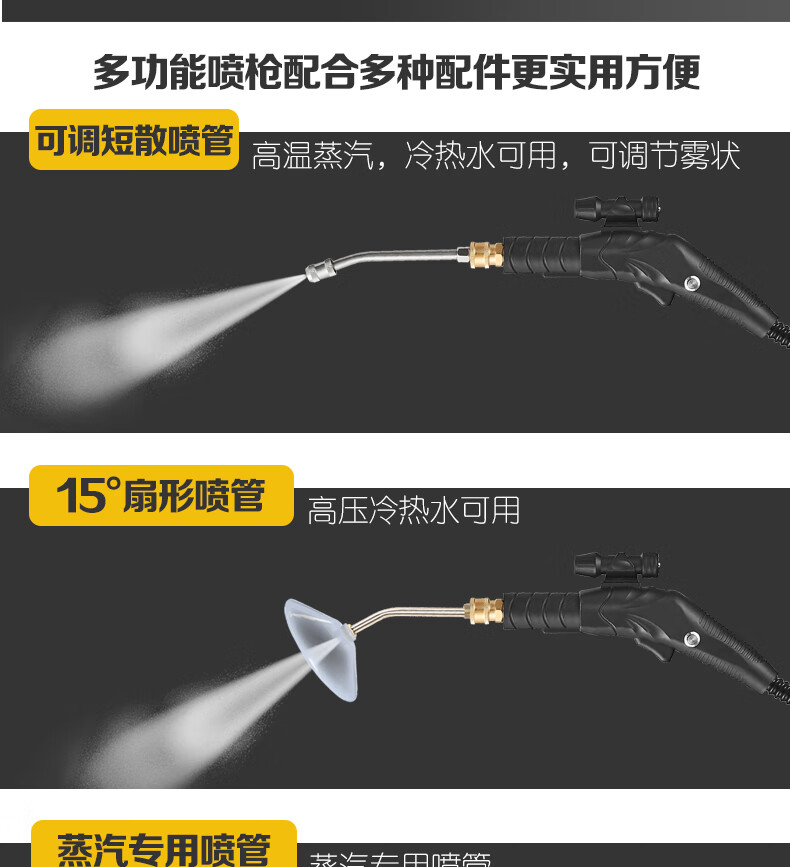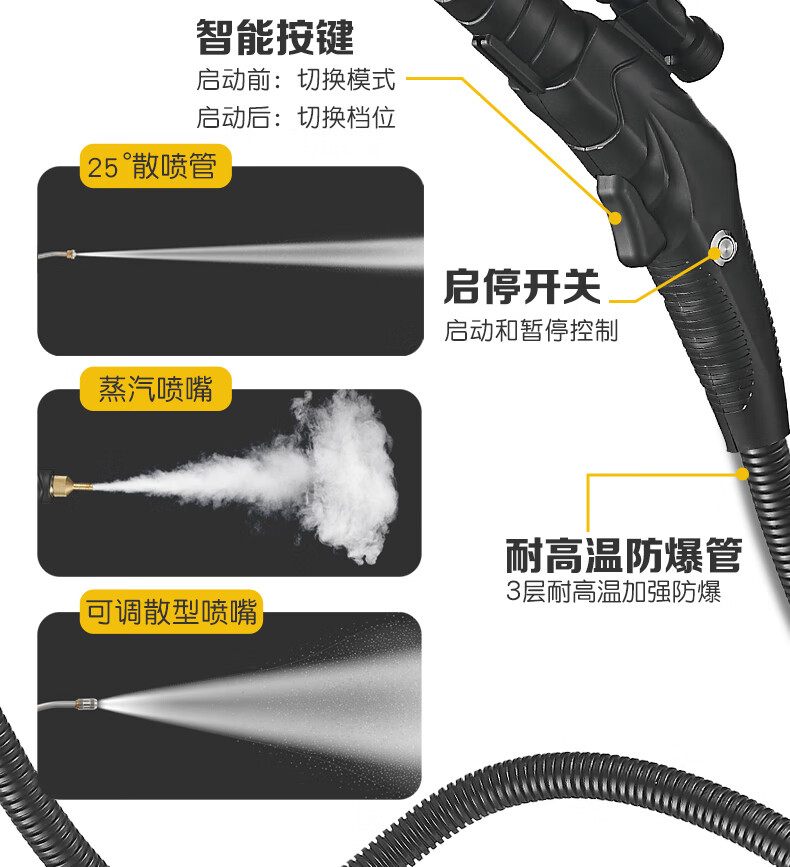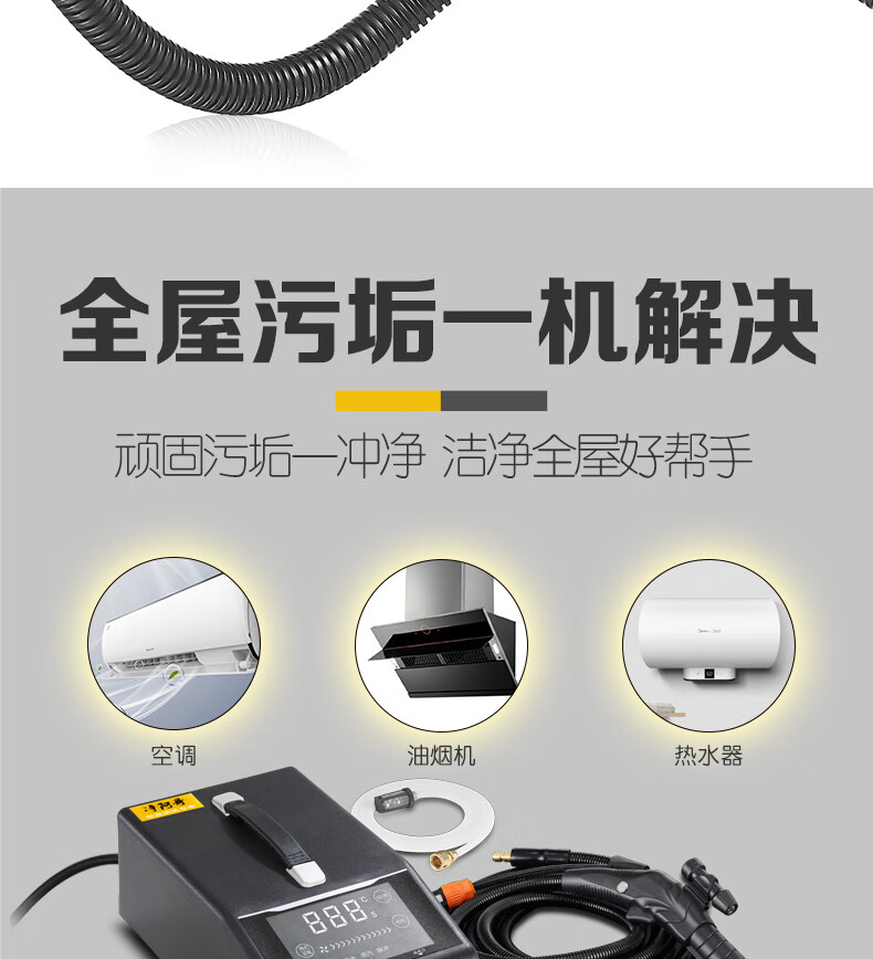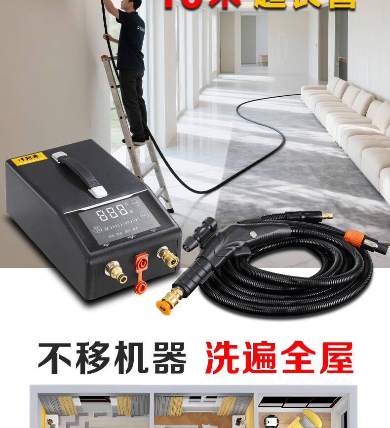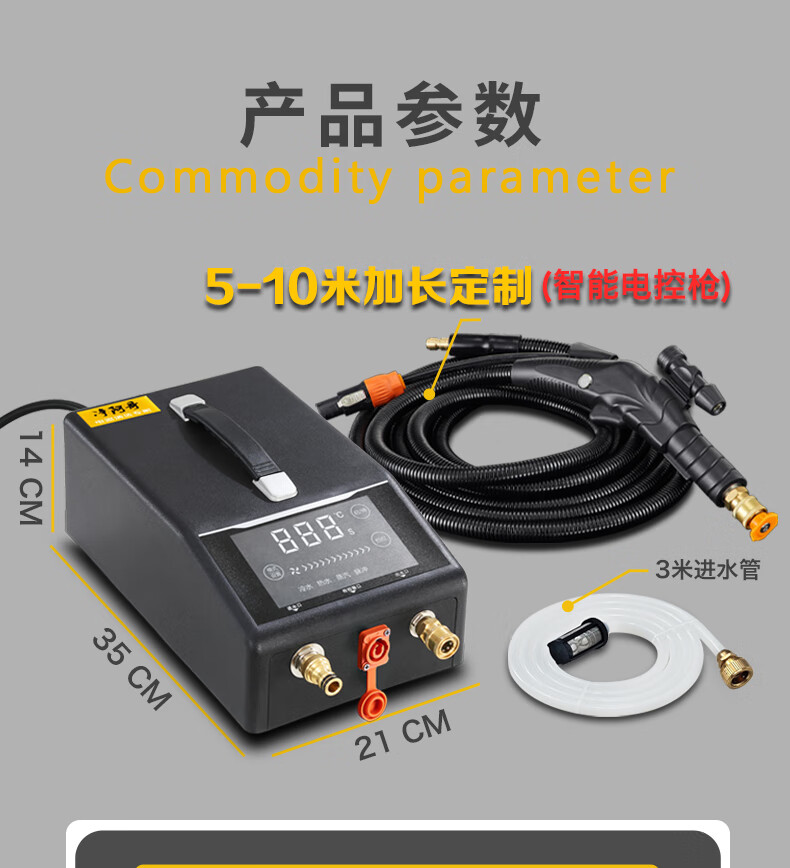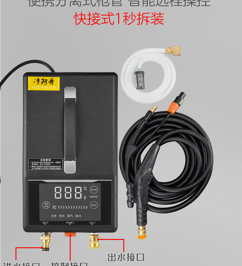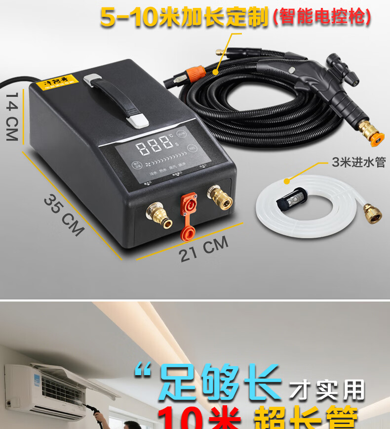 Jing Age 007 high-pressure and high-temperature steam cleaner, air conditioner, indoor and outdoor machine, washing machine, household appliances, range hood, floor heating, car wash special equipment, household appliance cleaning machine, frequency conversion, light and compact, 10 meters, electronically controlled gun frequency conversion, standard configuration - no caustic soda