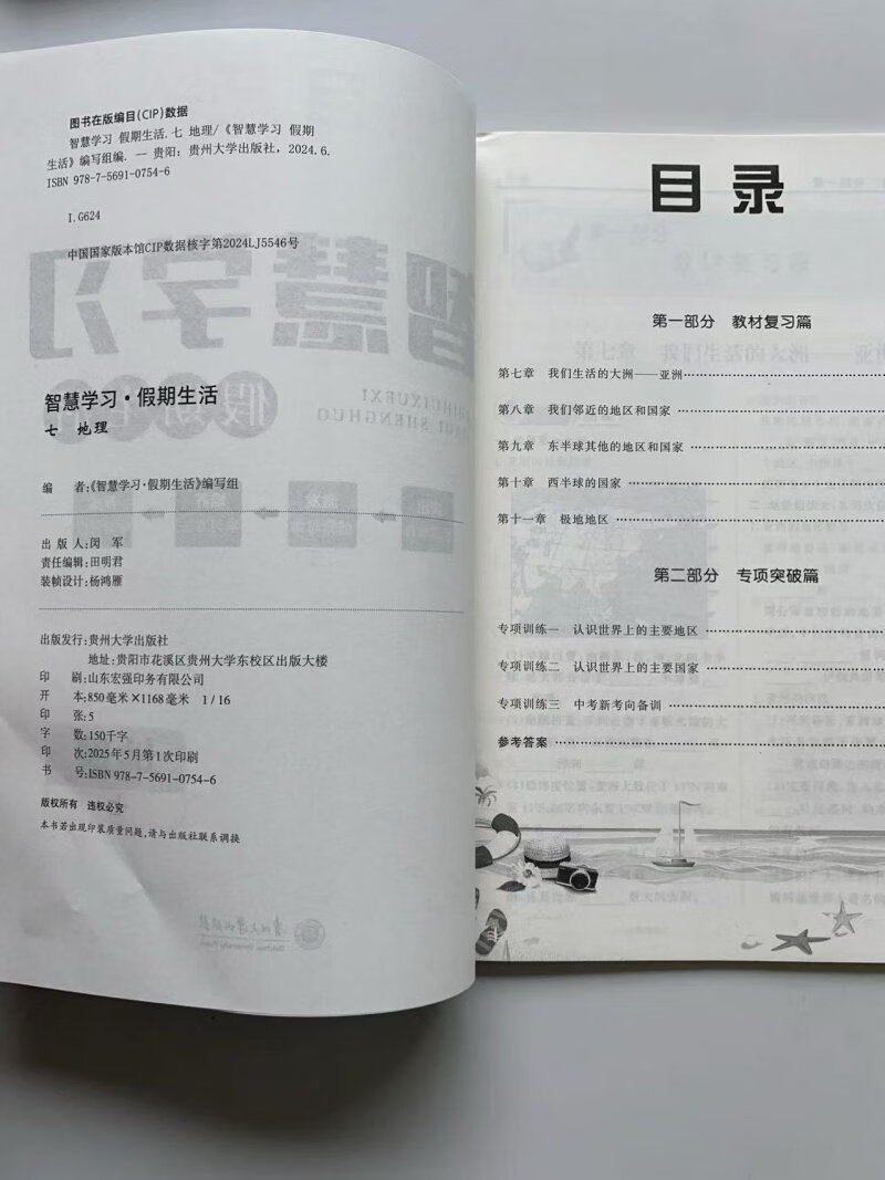 2025版  智慧学习  假期生活  暑假作业  七八年级语文数学英语政 英语-人教版 七年级/初中一年级