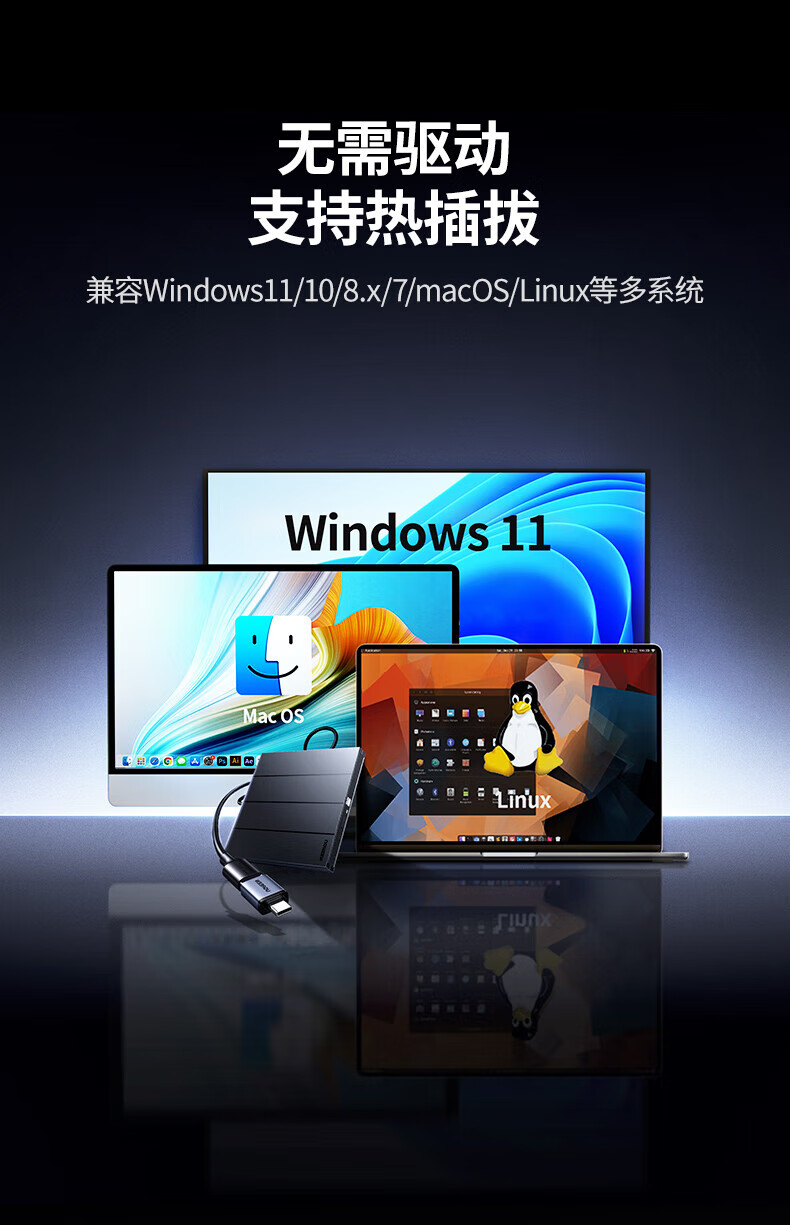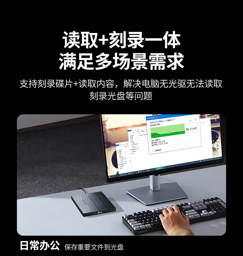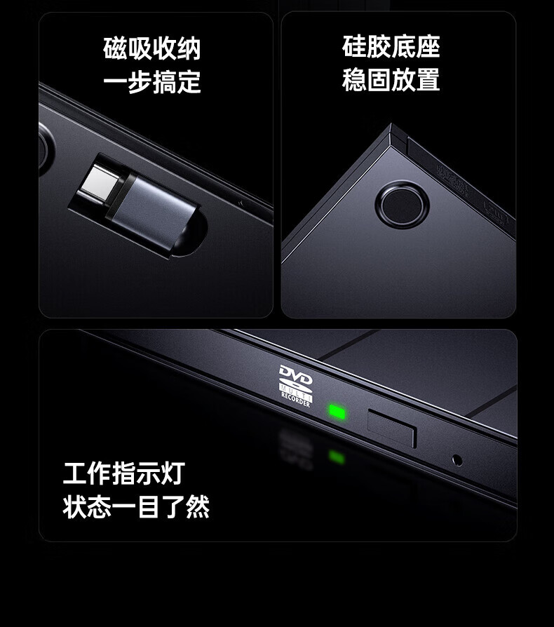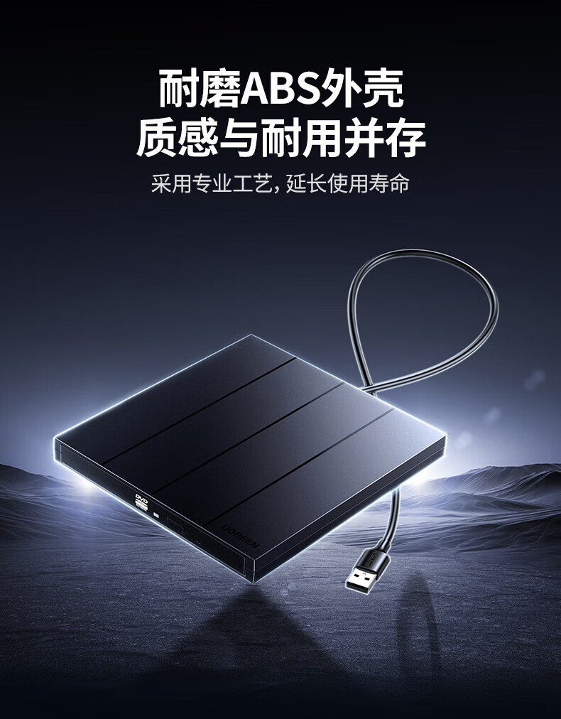 Unidad óptica móvil externa UGREEN de 8x de velocidad, grabadora de discos DVD, interfaz dual USB tipo C, adecuada para unidad óptica externa de computadora portátil y de escritorio, interfaz dual USB + tipo C, plug and play sin controlador