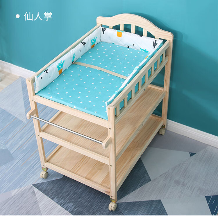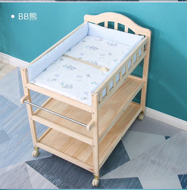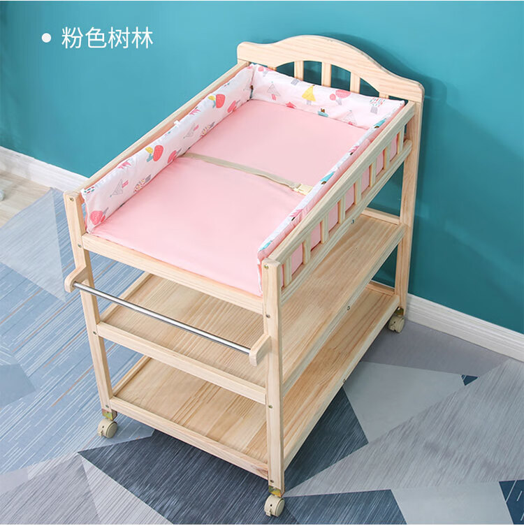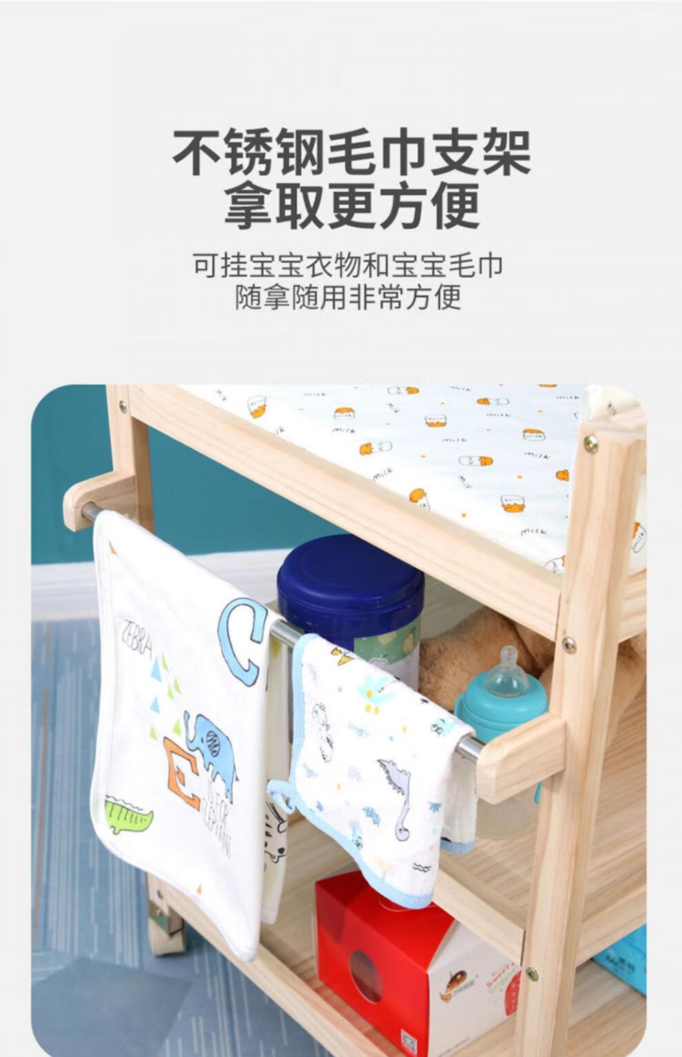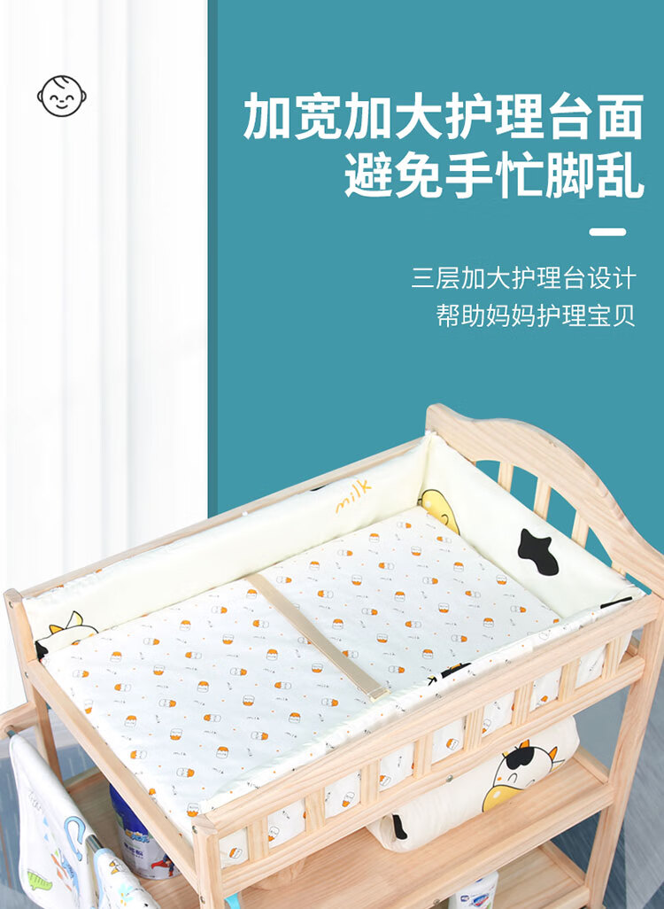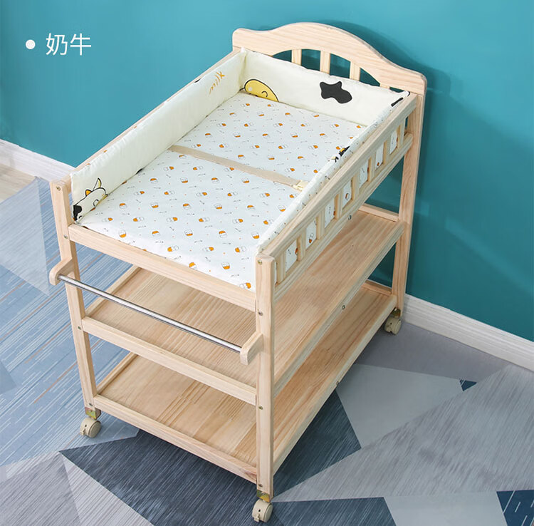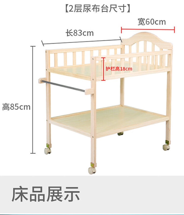 山头林村婴儿实木无漆尿布台护理台新生儿宝宝多功能洗澡按摩抚触台可移动 双层 (隔板全实木)