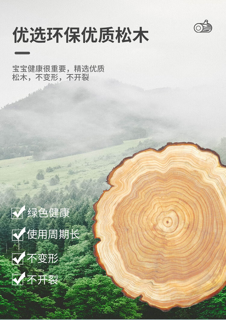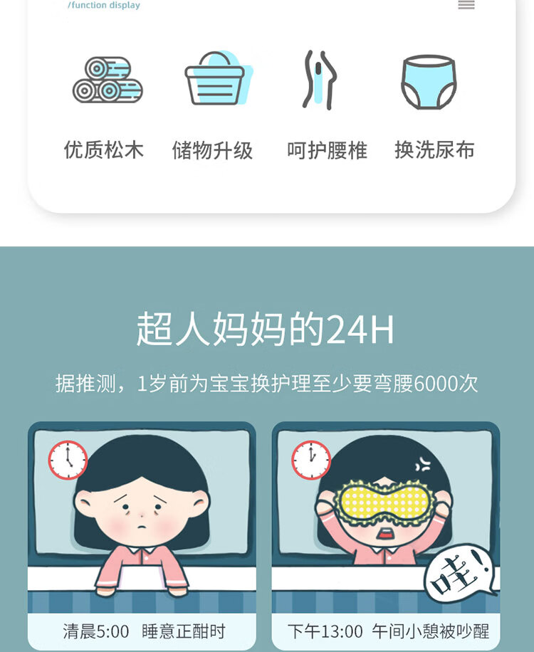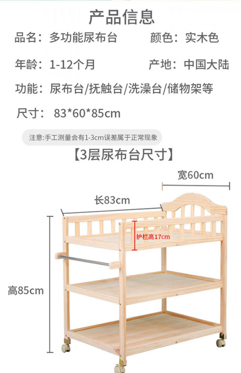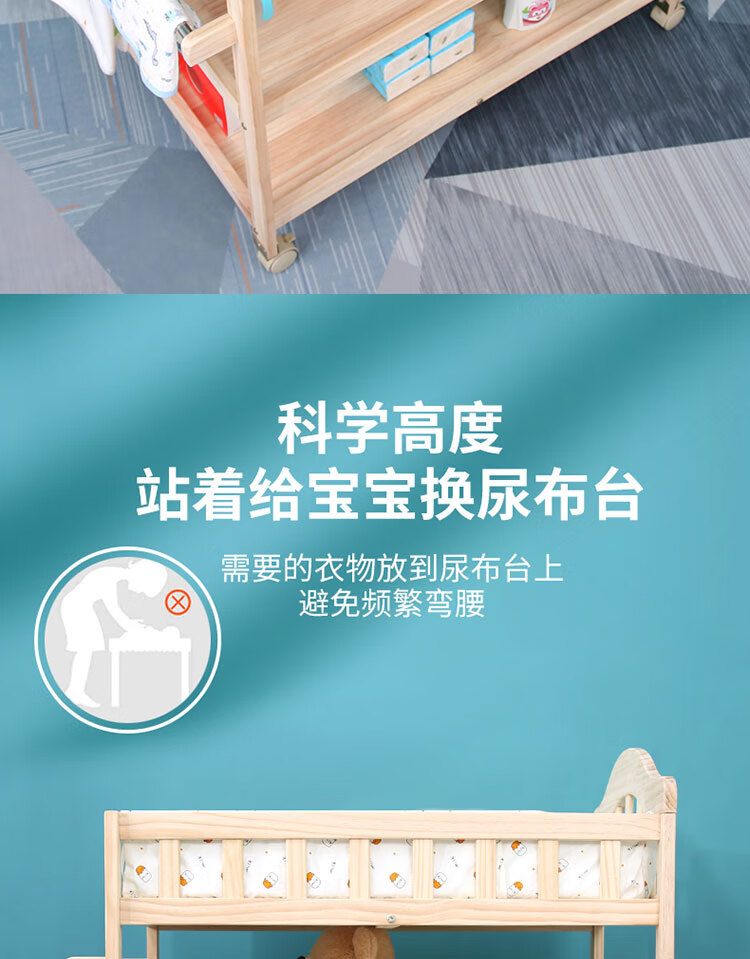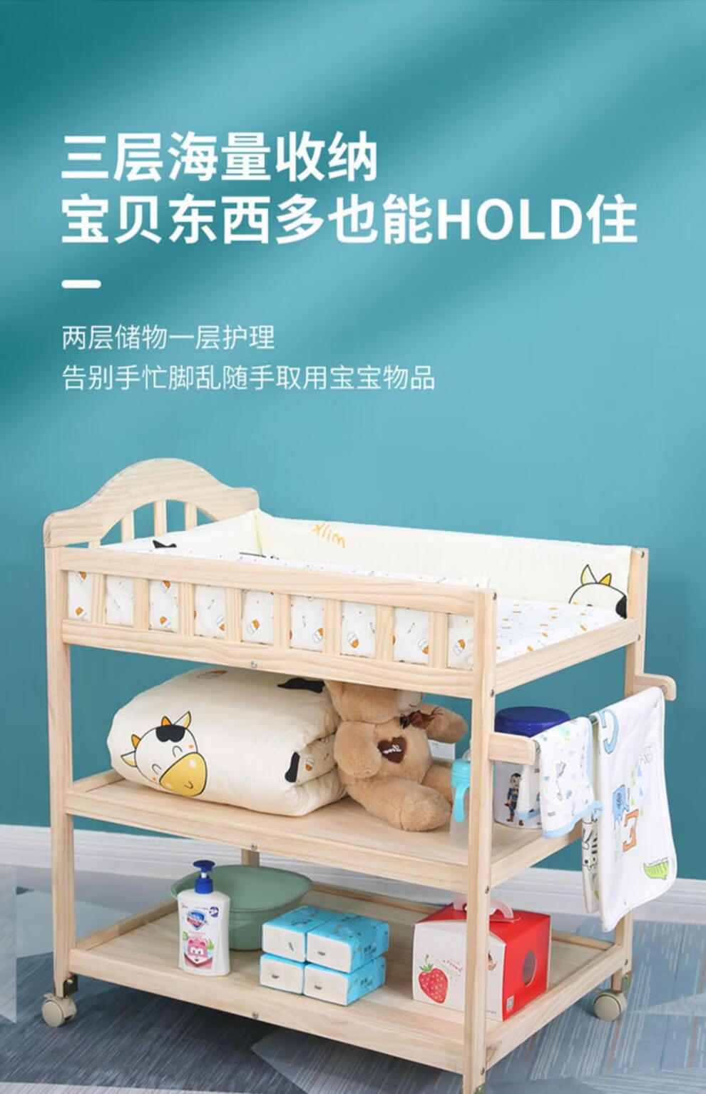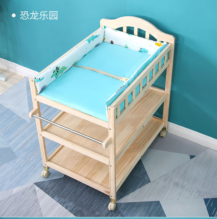 山头林村婴儿实木无漆尿布台护理台新生儿宝宝多功能洗澡按摩抚触台可移动 双层 (隔板全实木)