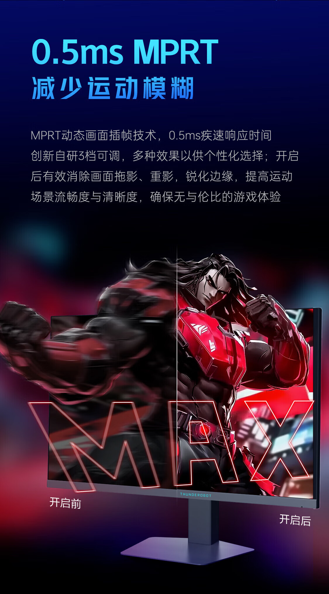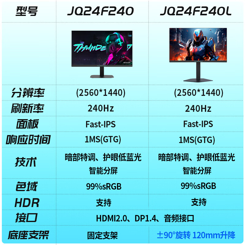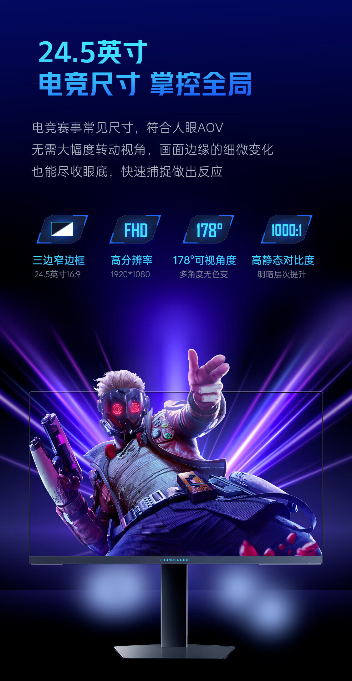 ThundeRobot 24,5-Zoll-High-Definition-E-Sport-Monitor 240/320 High Brush FastIPS HDR-Augenschutz und Anti-Blaulicht-Gaming- und Entertainment-Notebook externes Computerdisplay 23,8-Zoll JQ24F240 2K240Hz E-Sport-Bildschirm
