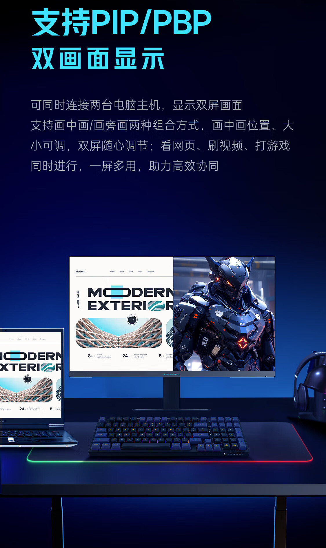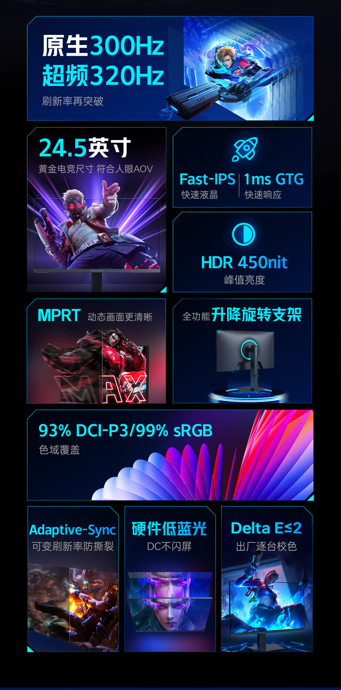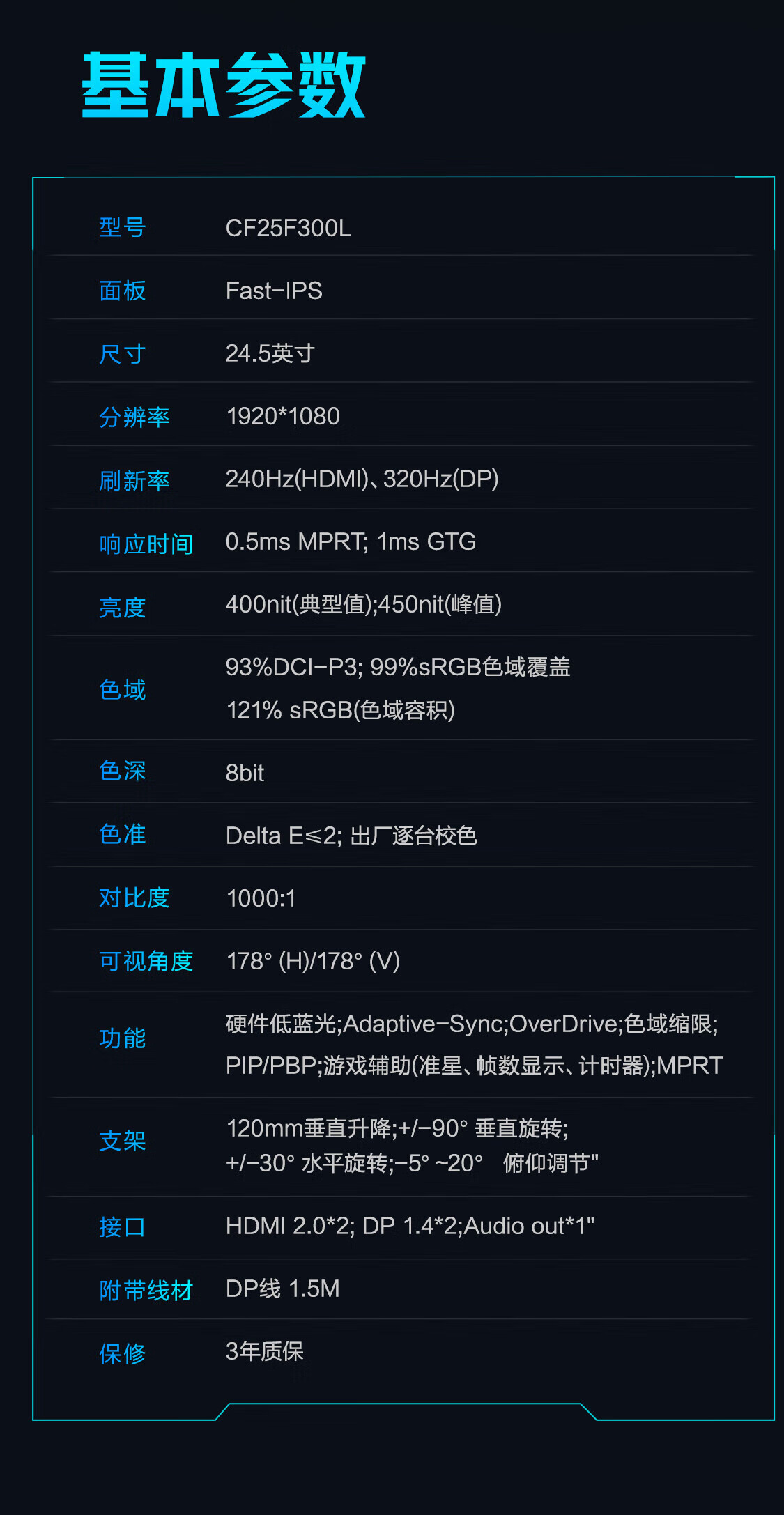 ThundeRobot 24,5-Zoll-High-Definition-E-Sport-Monitor 240/320 High Brush FastIPS HDR-Augenschutz und Anti-Blaulicht-Gaming- und Entertainment-Notebook externes Computerdisplay 23,8-Zoll JQ24F240 2K240Hz E-Sport-Bildschirm