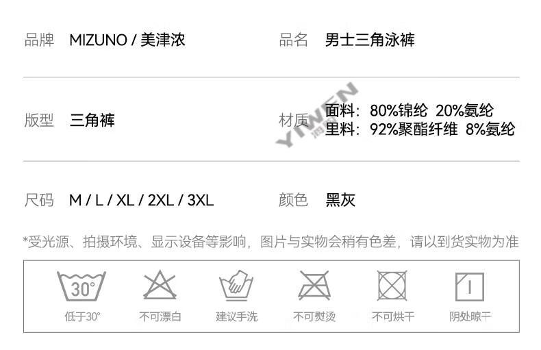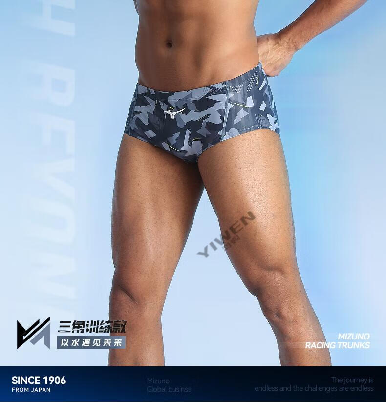 美津浓(MIZUNO)三角泳裤男士2025新款男生小平角速干抗氯款训练游泳裤 黑灰色 XL