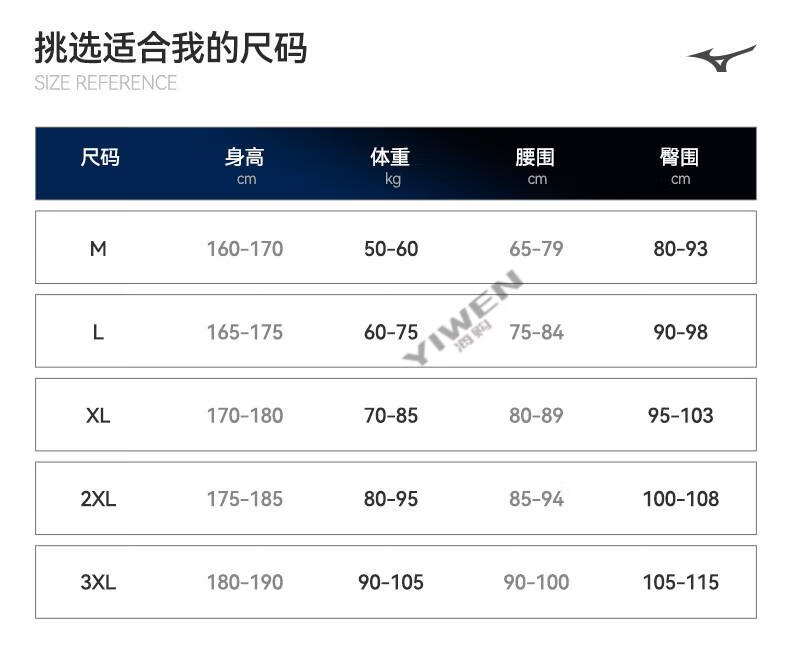 China (cm) 165 / 88-90 170 / 96-98 175 / 108-110 180 / 118-122 185 / 126-130