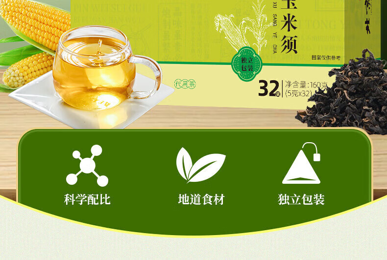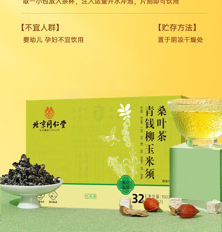 北京同仁堂玉米须茶桑叶茶青钱柳橘皮葛根三高茶糖高脂高压高养生茶包 【店长推荐】三盒/96包