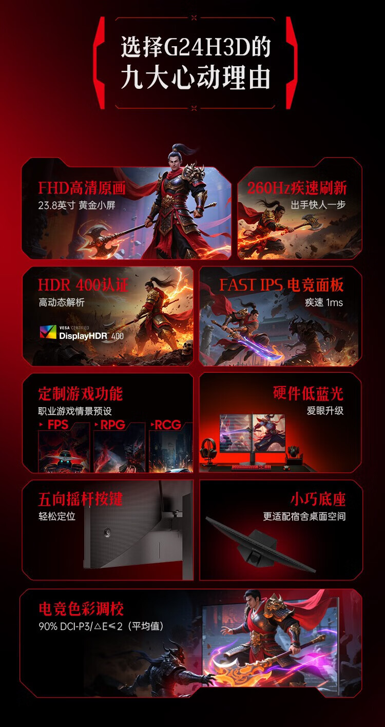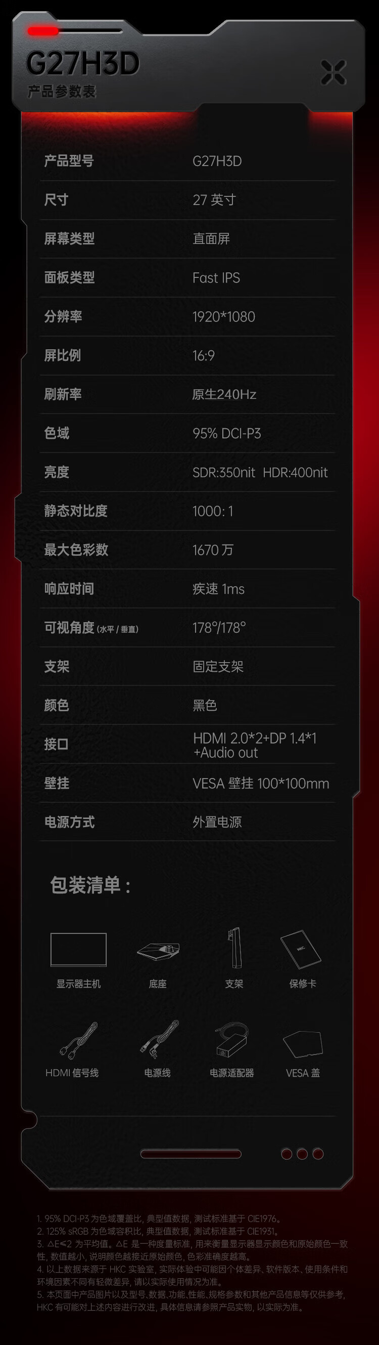 HKC-Gaming-Monitor, 240 Hz, hohe Bildwiederholfrequenz, Fast-IPS-Bildschirm, 1080P, 1 ms Reaktion, HDR400-Zertifizierung, Hardware, geringes blaues Licht, Unterstützung für Dual-SIM-Synchronisierung, 23,8 Zoll, 240 Hz, übertaktbar, G24H3D