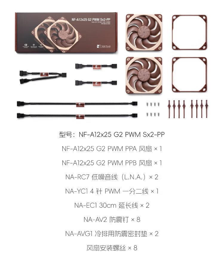 Noctua NF-A12x25 G2 PWM Sx2-PP LS-PWM zweite Generation A12 Cat-Lüfter 12025 12CM LCP Flüssigkristall-Polymer-Gehäuselüfter intelligente Temperaturregelung Noctua A12x25 G2 PWM Sx2-PP