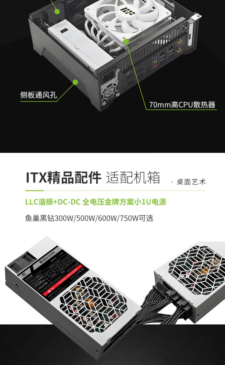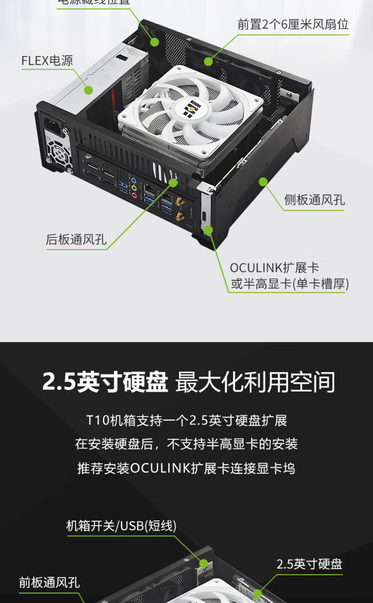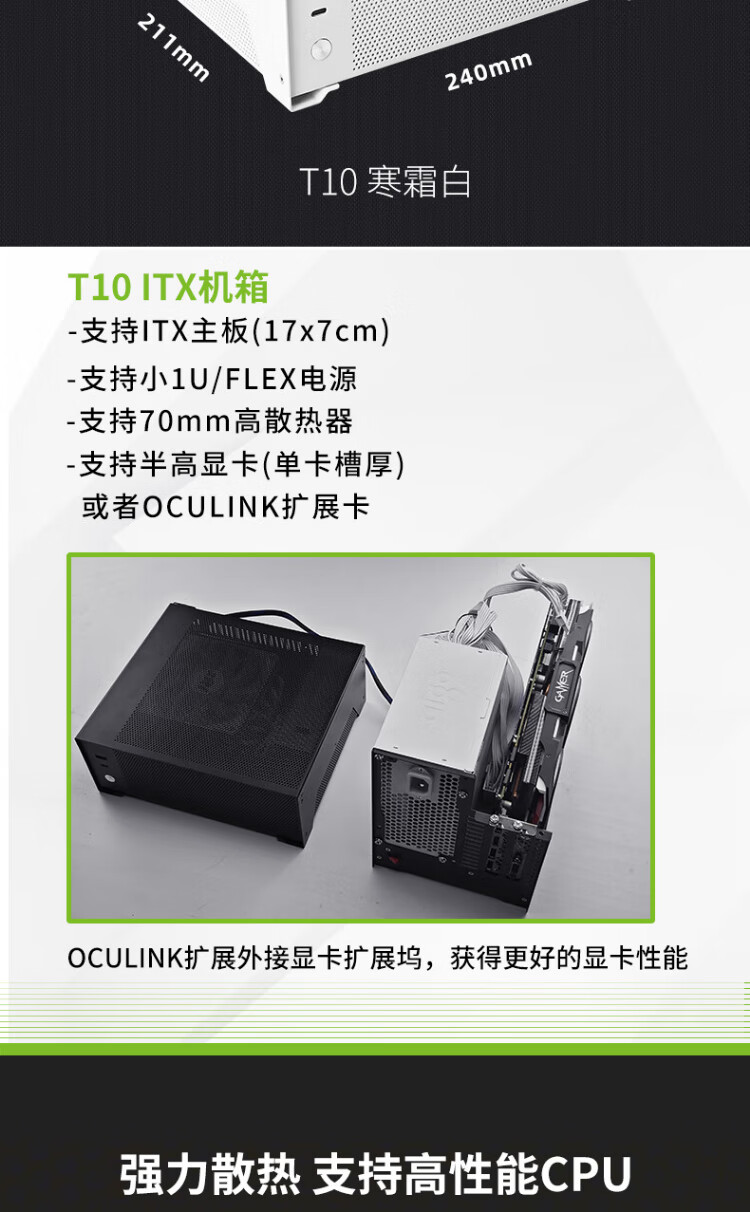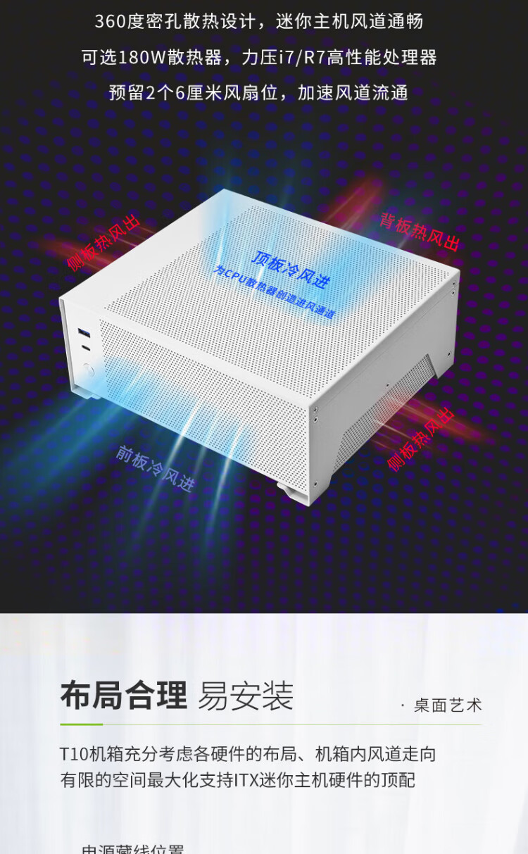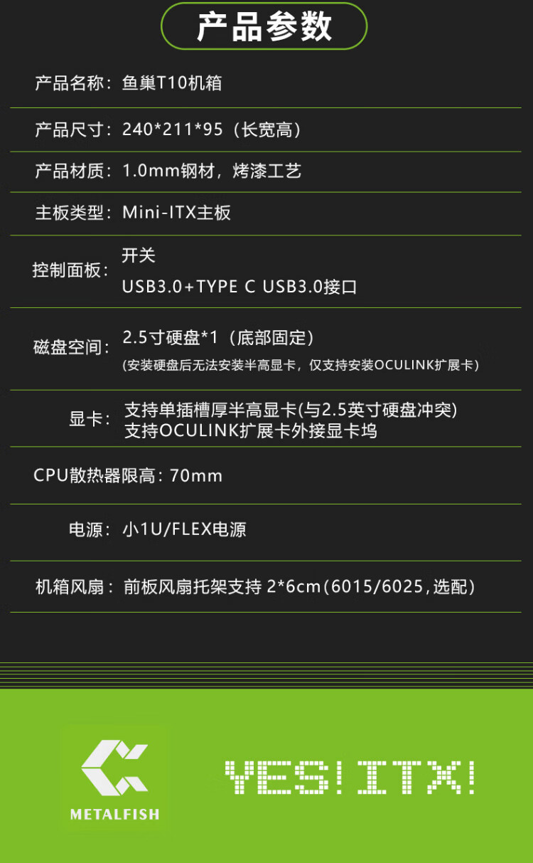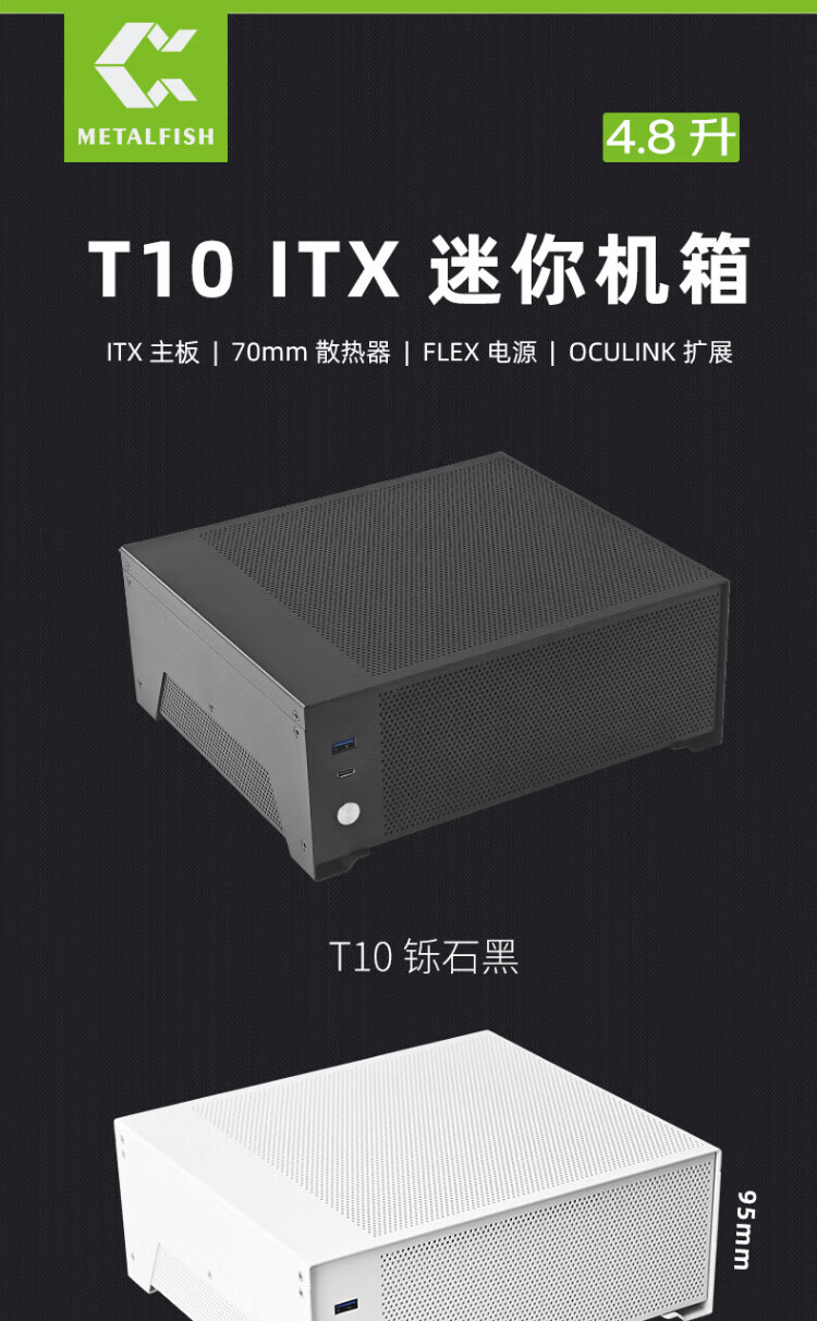 Fish Nest (METALFISH) T10 chassis ITX mini computer DIY desktop thin horizontal nuclear display small chassis half-height graphics card slot 4.8L supports small 1U power supply T10 white + small 1U 500W power supply