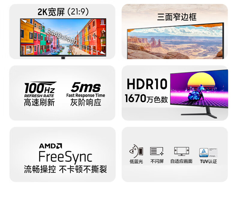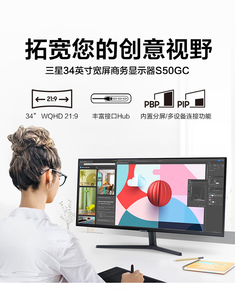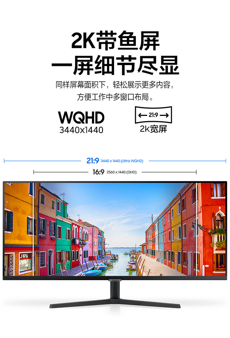 Samsung (SAMSUNG) 34-Zoll-WQHD-Hairtail-Bildschirm HDR FreeSync, an der Wand montierbarer intelligenter Dual-Screen-Ultra-Weitwinkel-HD-Monitor S34C500GAB