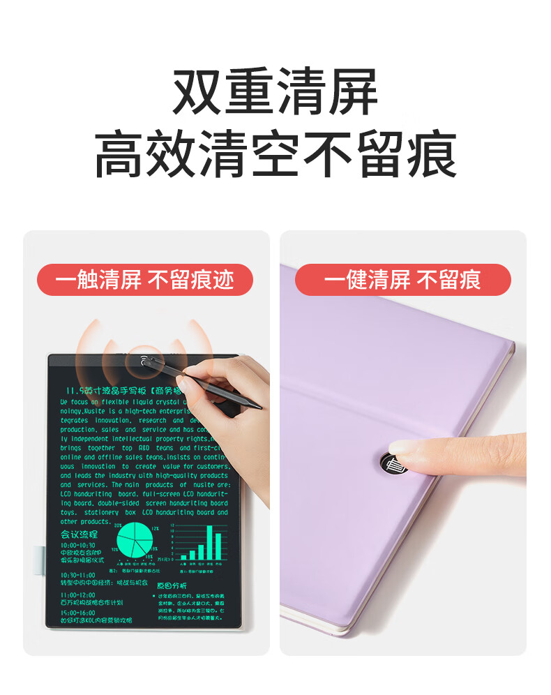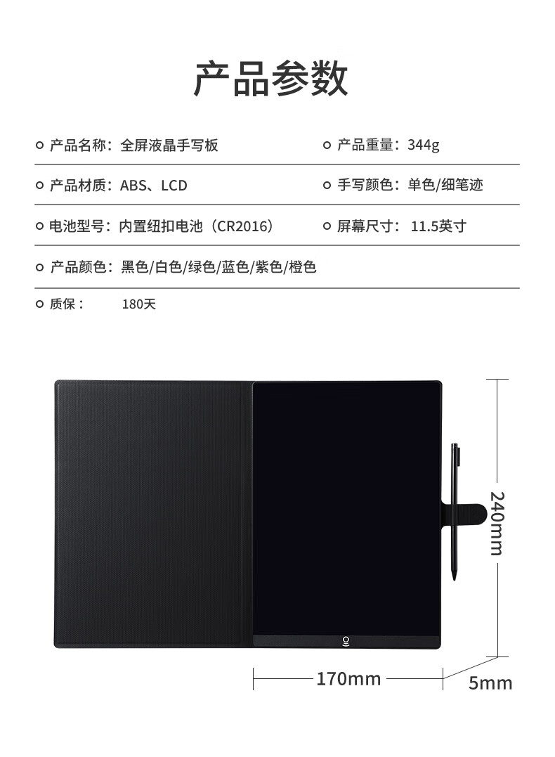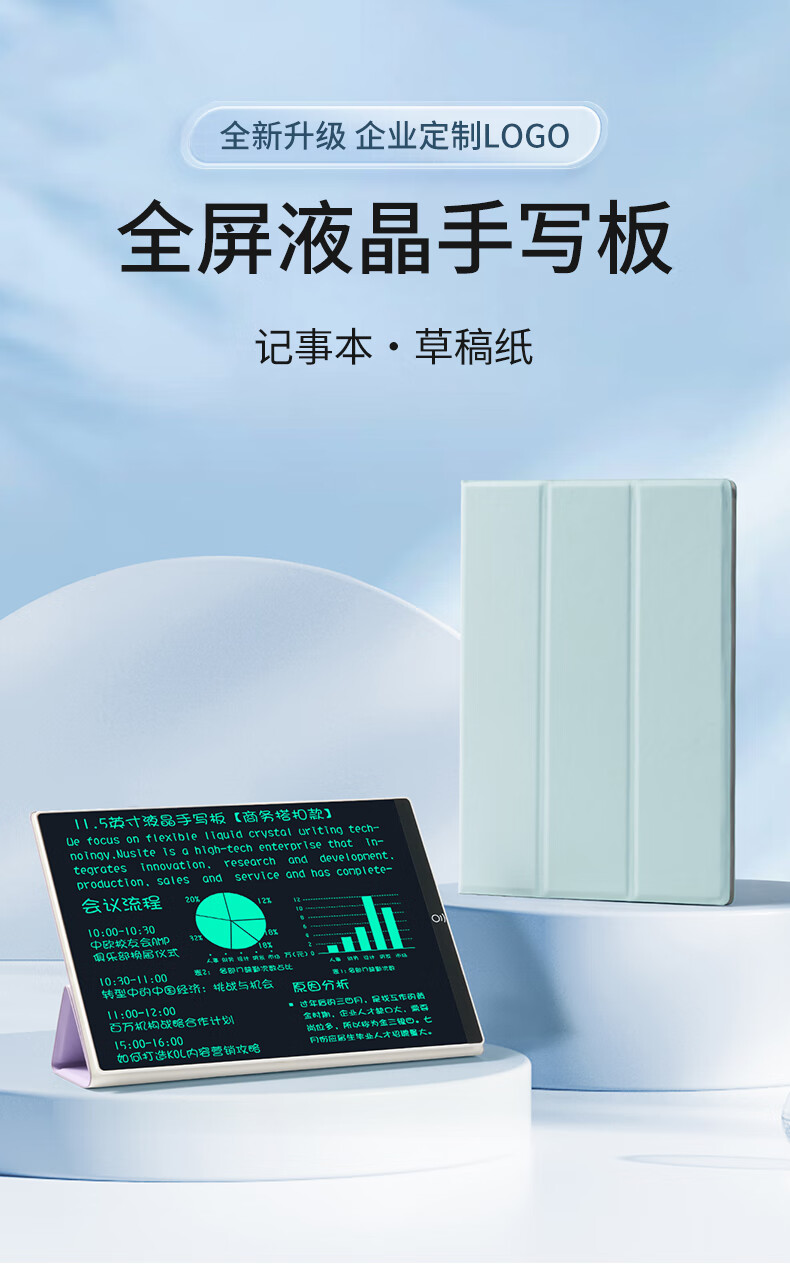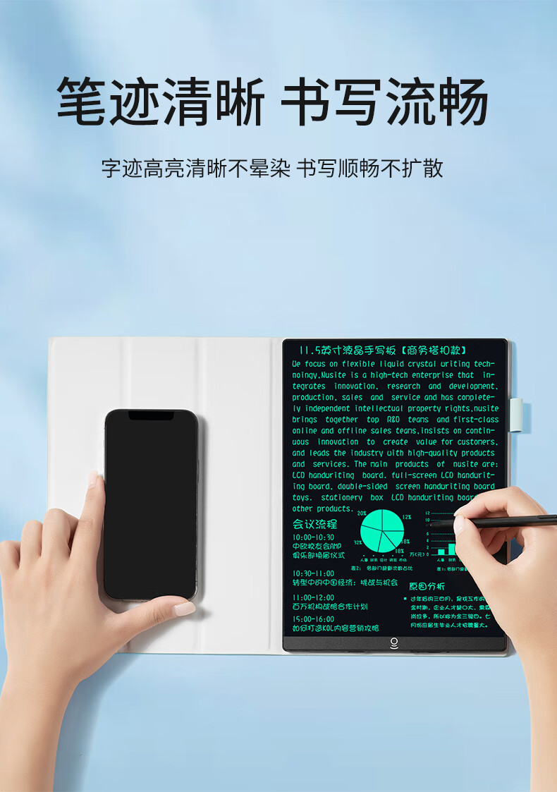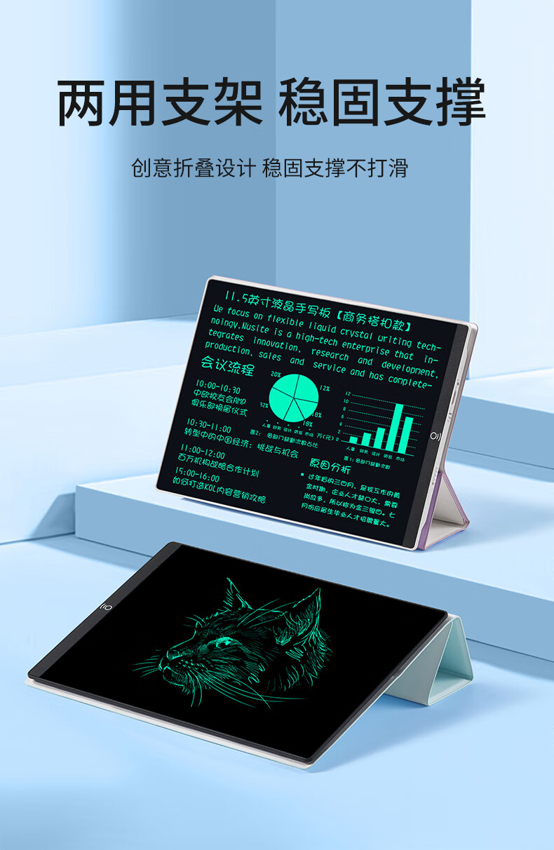 PBJ液晶手写板自带皮套全面屏细笔迹电子笔记本写字板企业办公会议记事本家用手绘板学生草稿黑板画板 【充电款】12英寸黑细笔迹+保护套