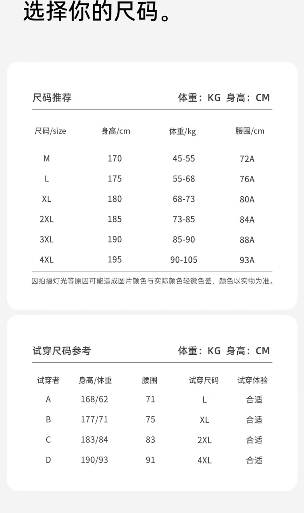 China (cm) 165 / 88-90 170 / 96-98 175 / 108-110 180 / 118-122 185 / 126-130