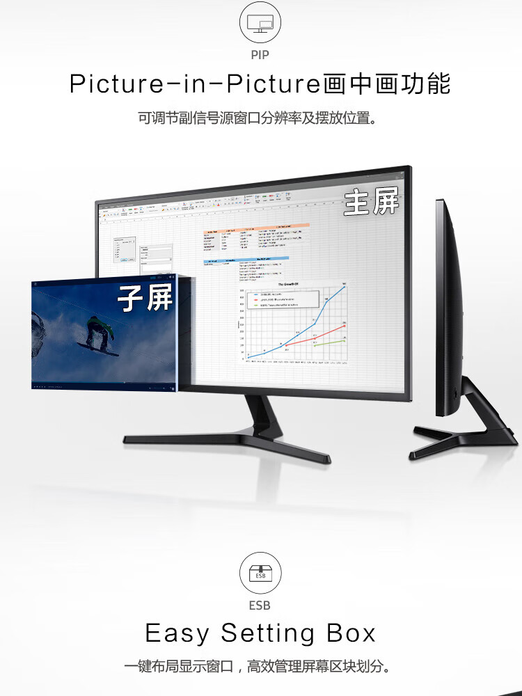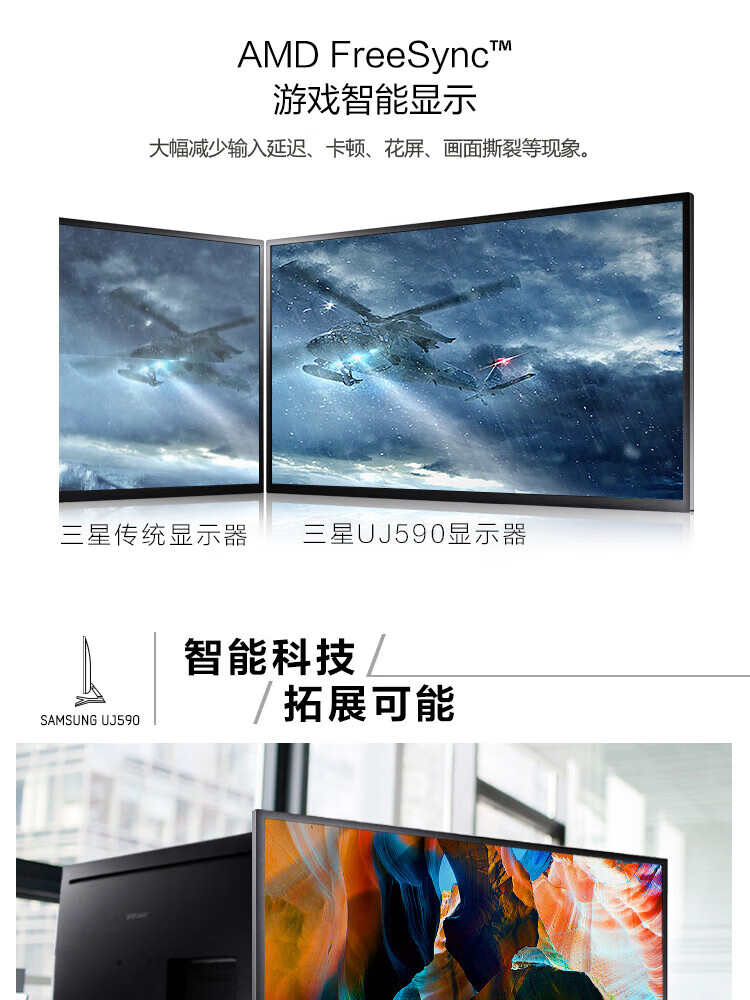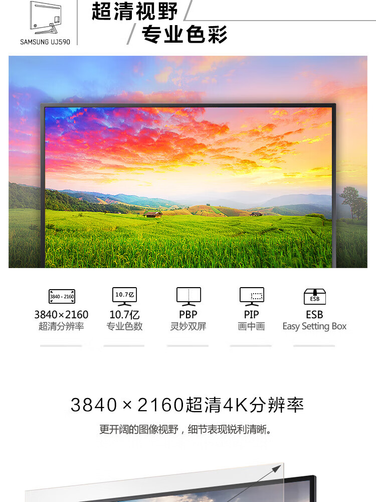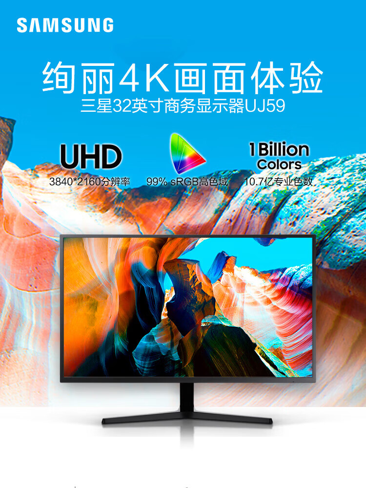 Samsung (SAMSUNG) Moniteur 4K 32 pouces HD conception édition jeu d'ordinateur PS4 externe grand écran intelligent double écran U32J590UQC configuration standard officielle