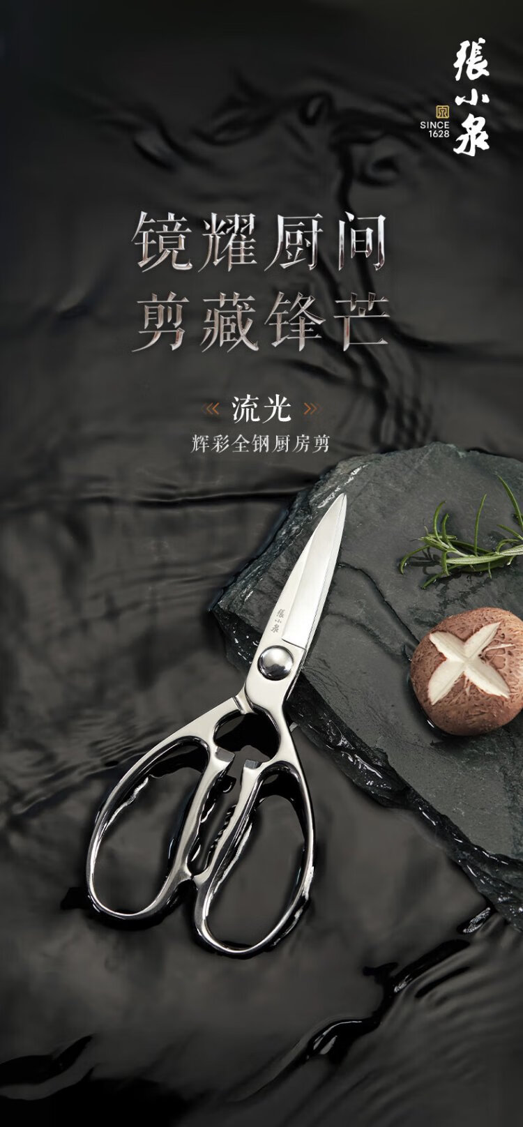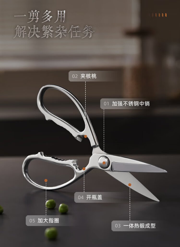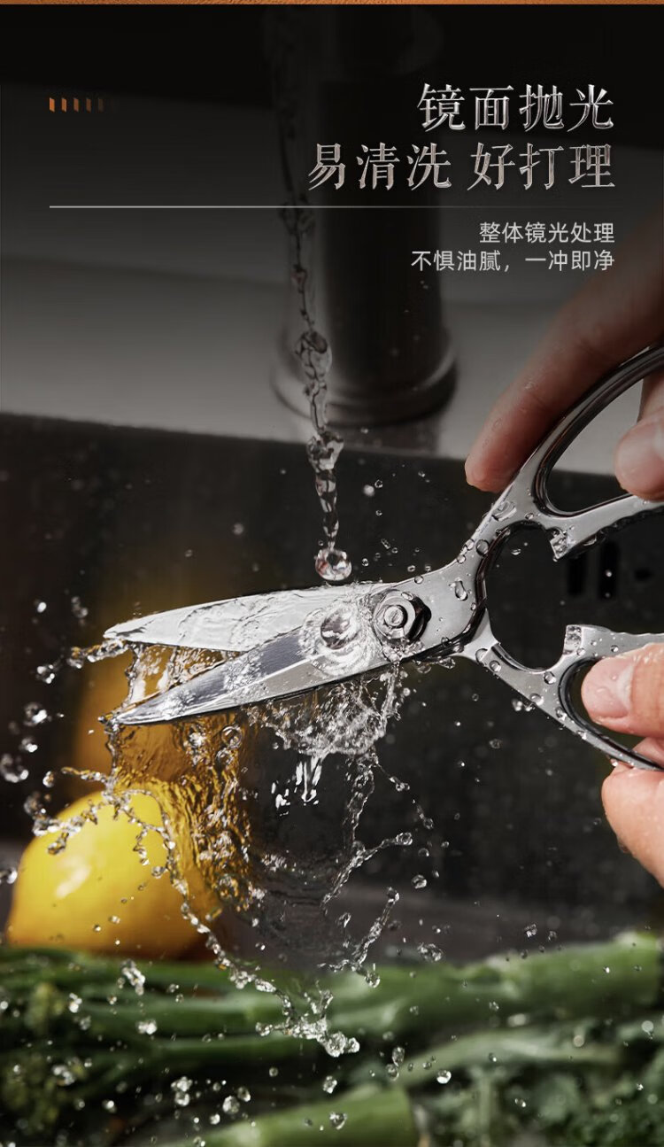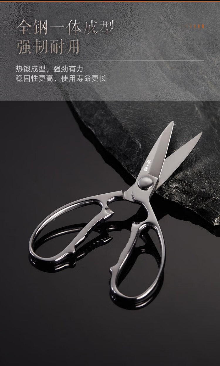张小泉全钢一体成型厨房剪家用食品级不锈钢多功能剪鸡鸭鹅骨头大剪刀 【新品】全钢厨房剪镜面设计
