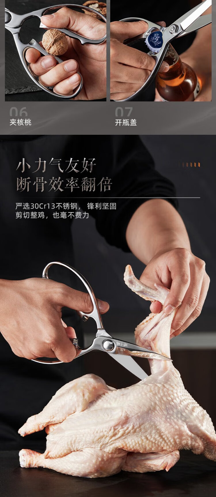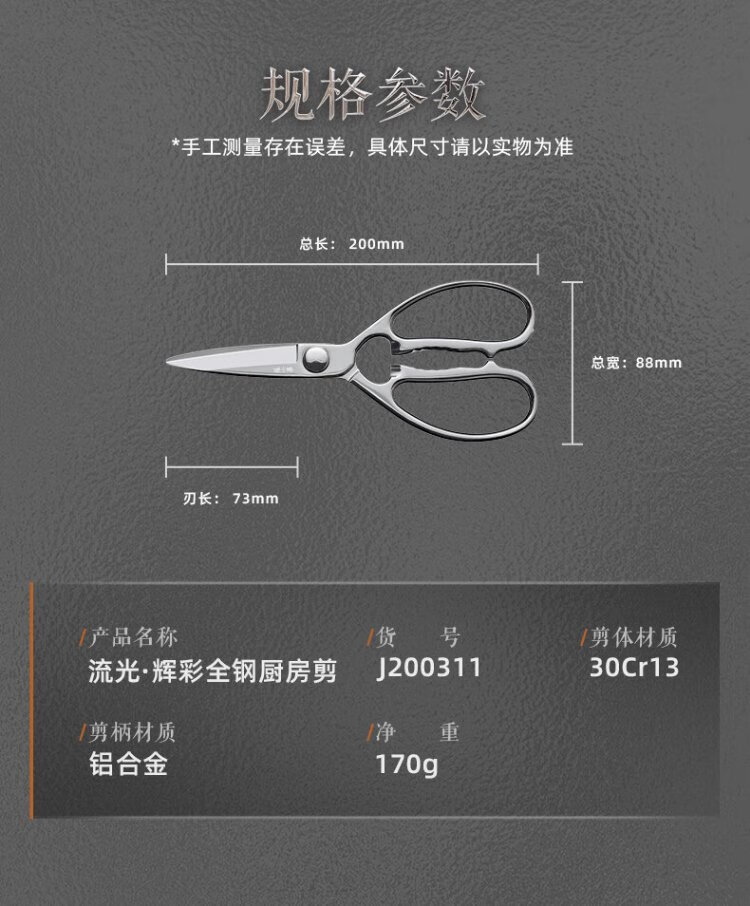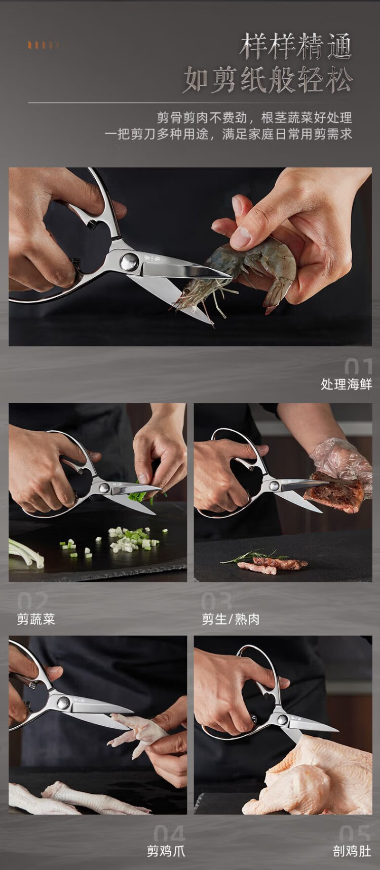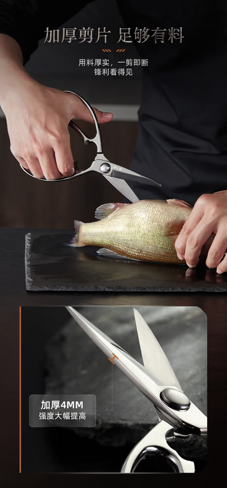 张小泉全钢一体成型厨房剪家用食品级不锈钢多功能剪鸡鸭鹅骨头大剪刀 【新品】全钢厨房剪镜面设计
