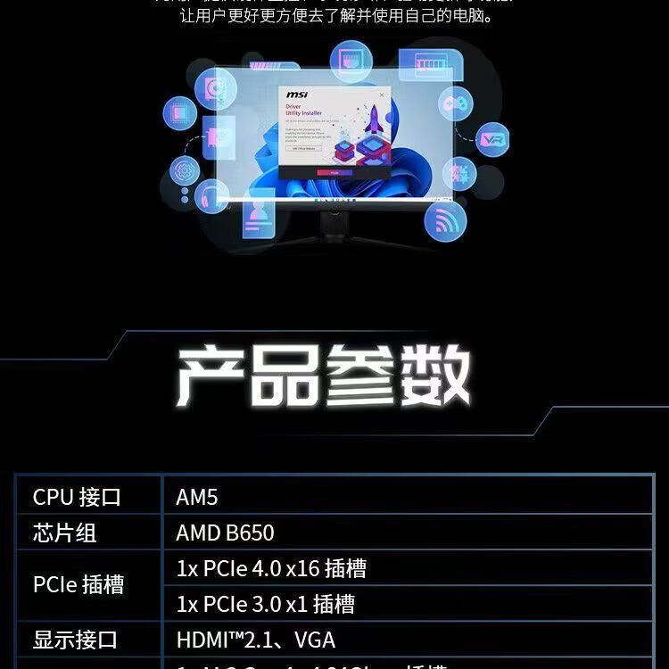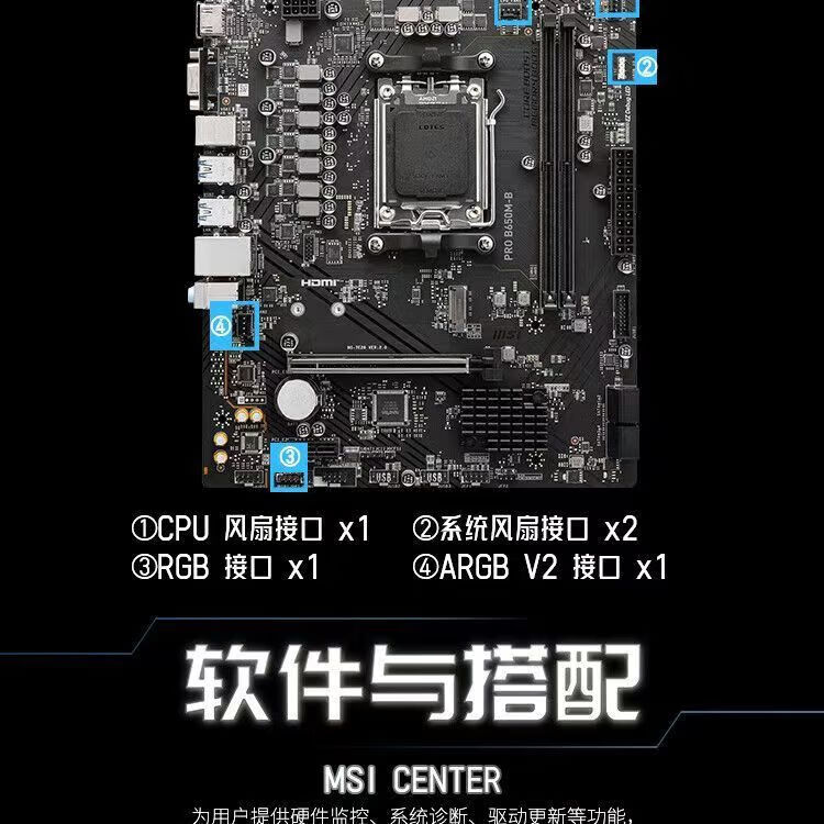 技嘉微星PRO B650M 迫击炮 WiFi DDR5台式机电脑主板 9600X/9700X板U套装 微星B650M 爆破弹WiFi 单主板