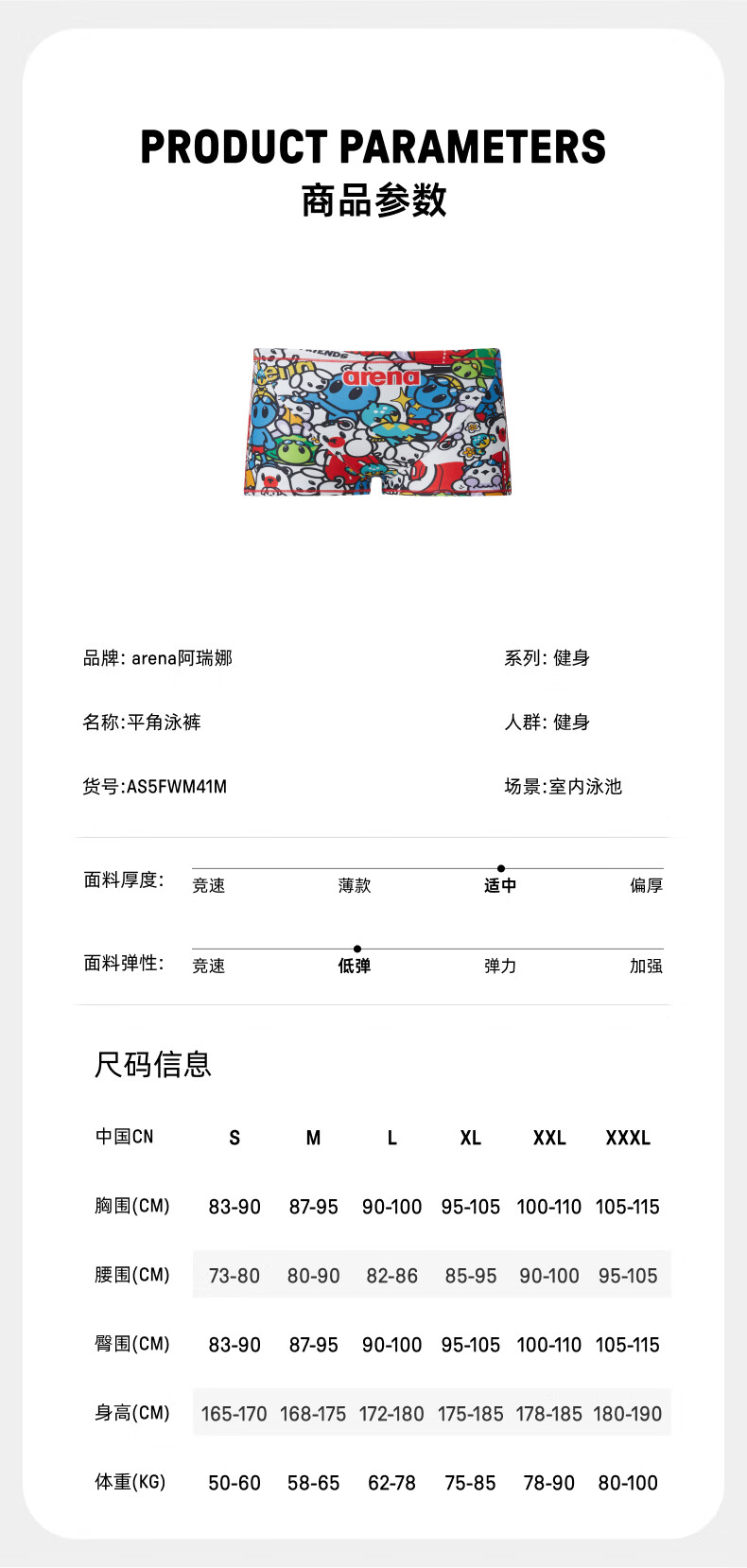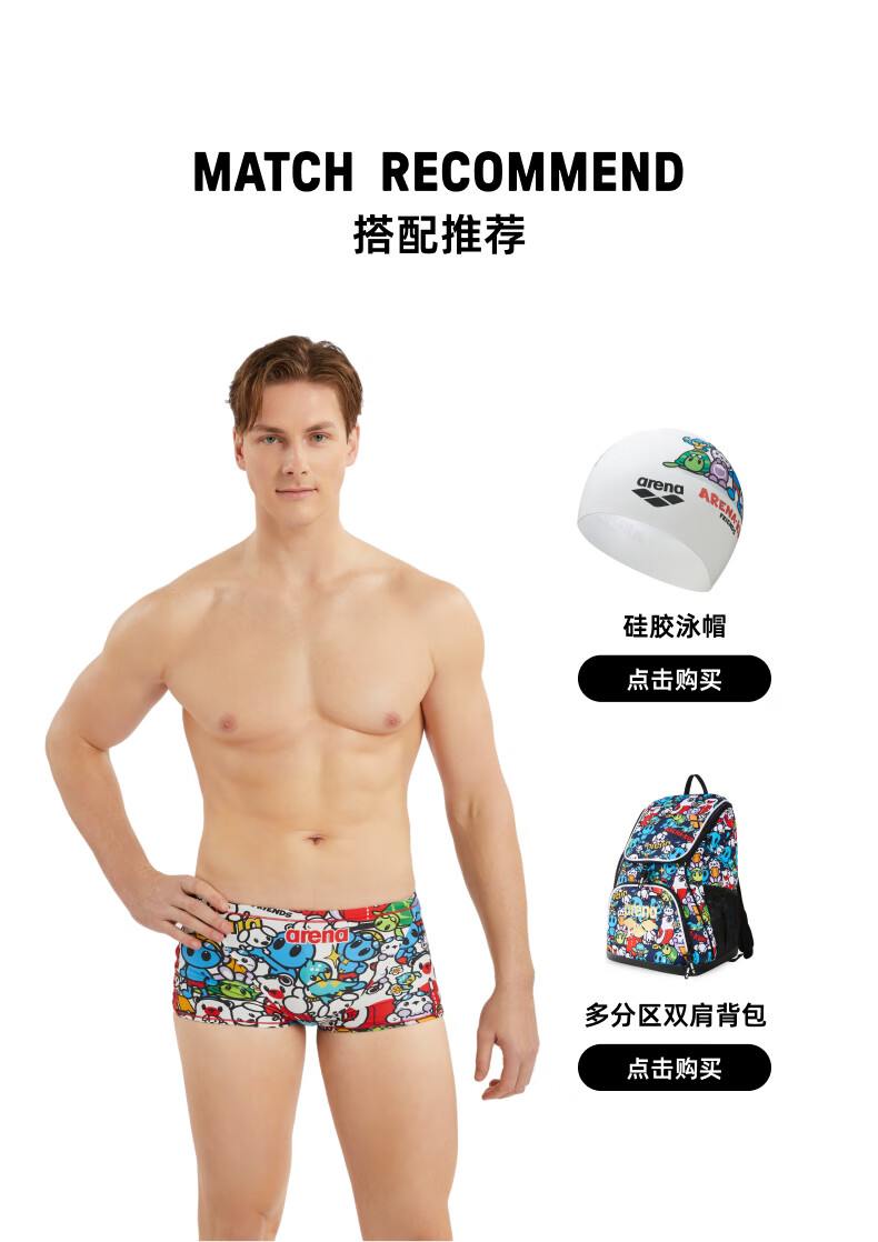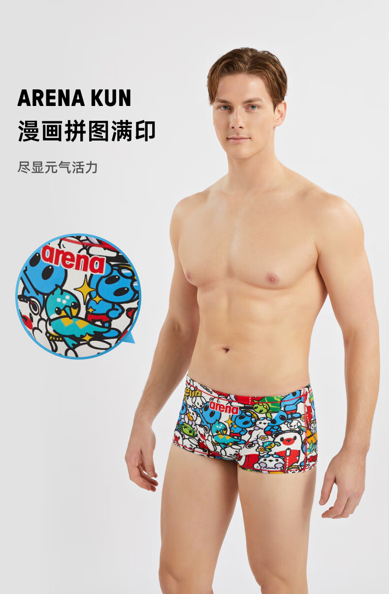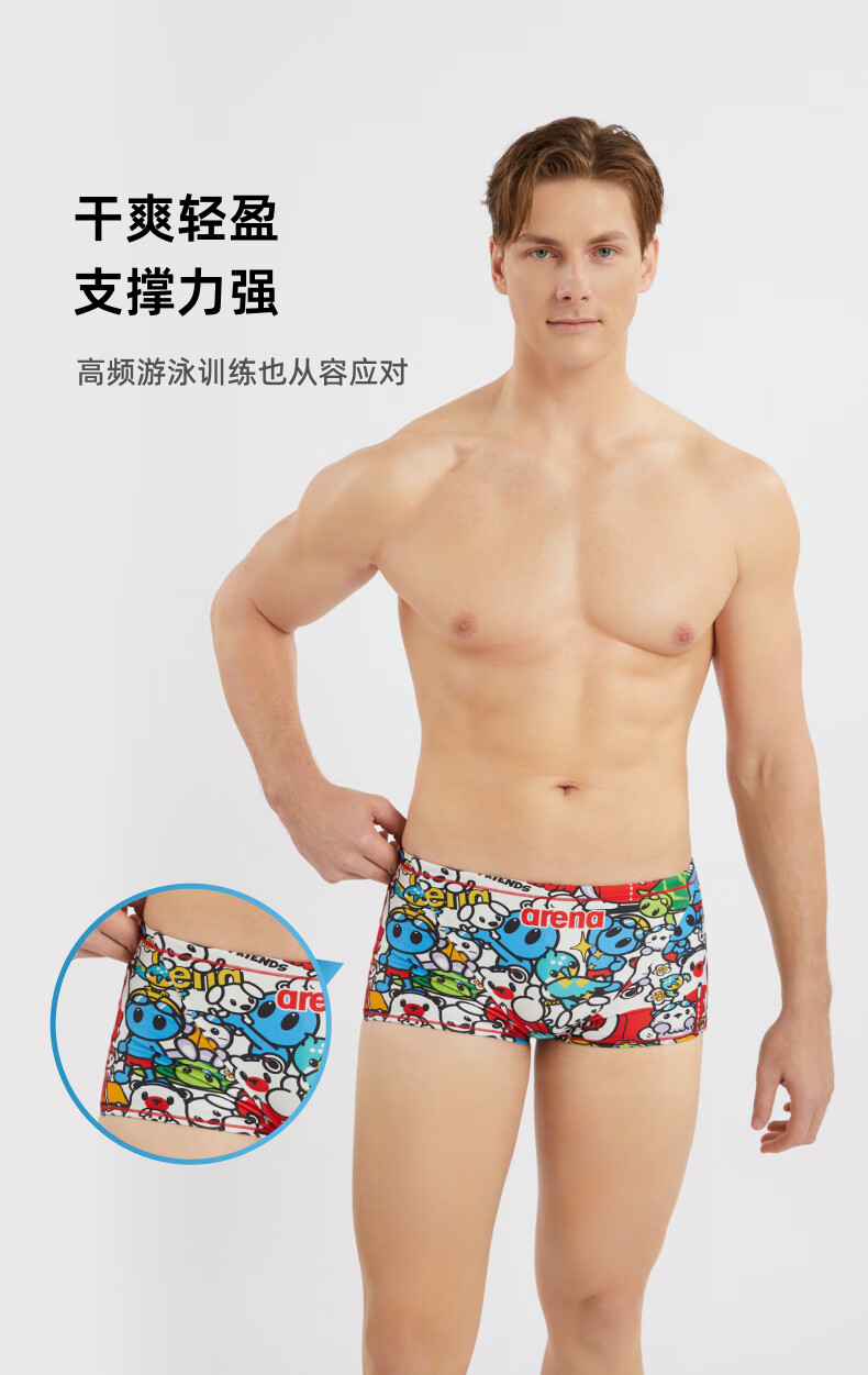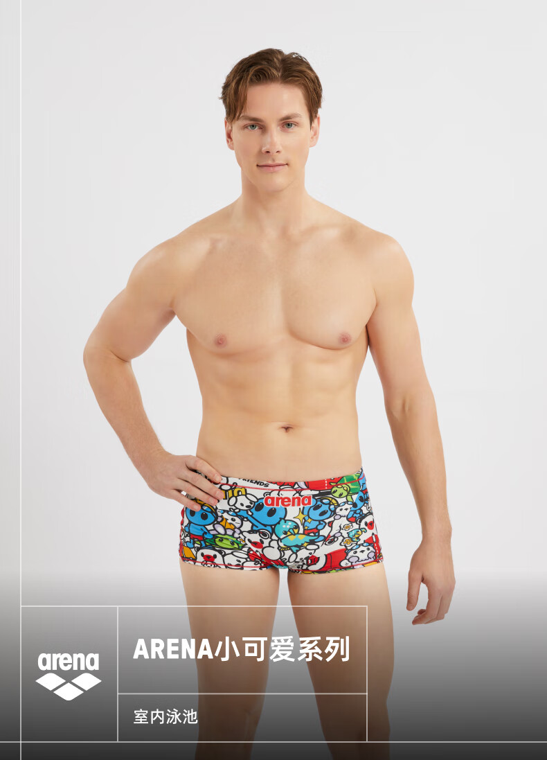 Arena 2025 neues Produkt süße Serie Herren-Badehose, Sport, Freizeit, bequem, lebendige Anti-Chlor-Boxer-Badehose weiß/blau (WHBL) L
