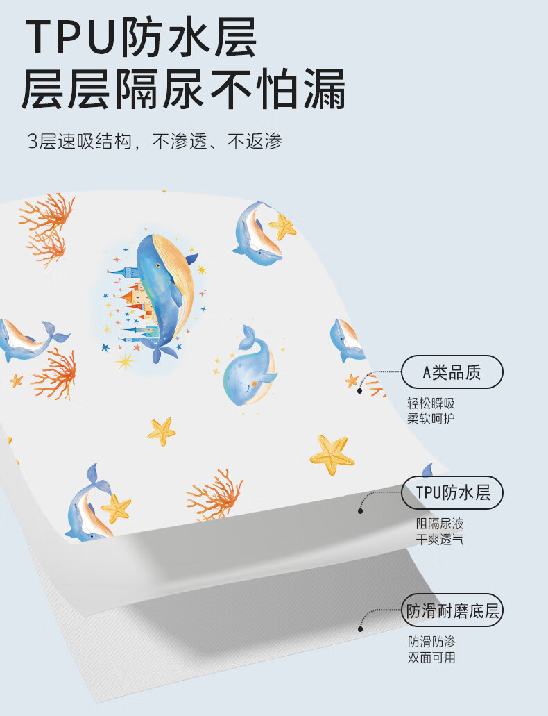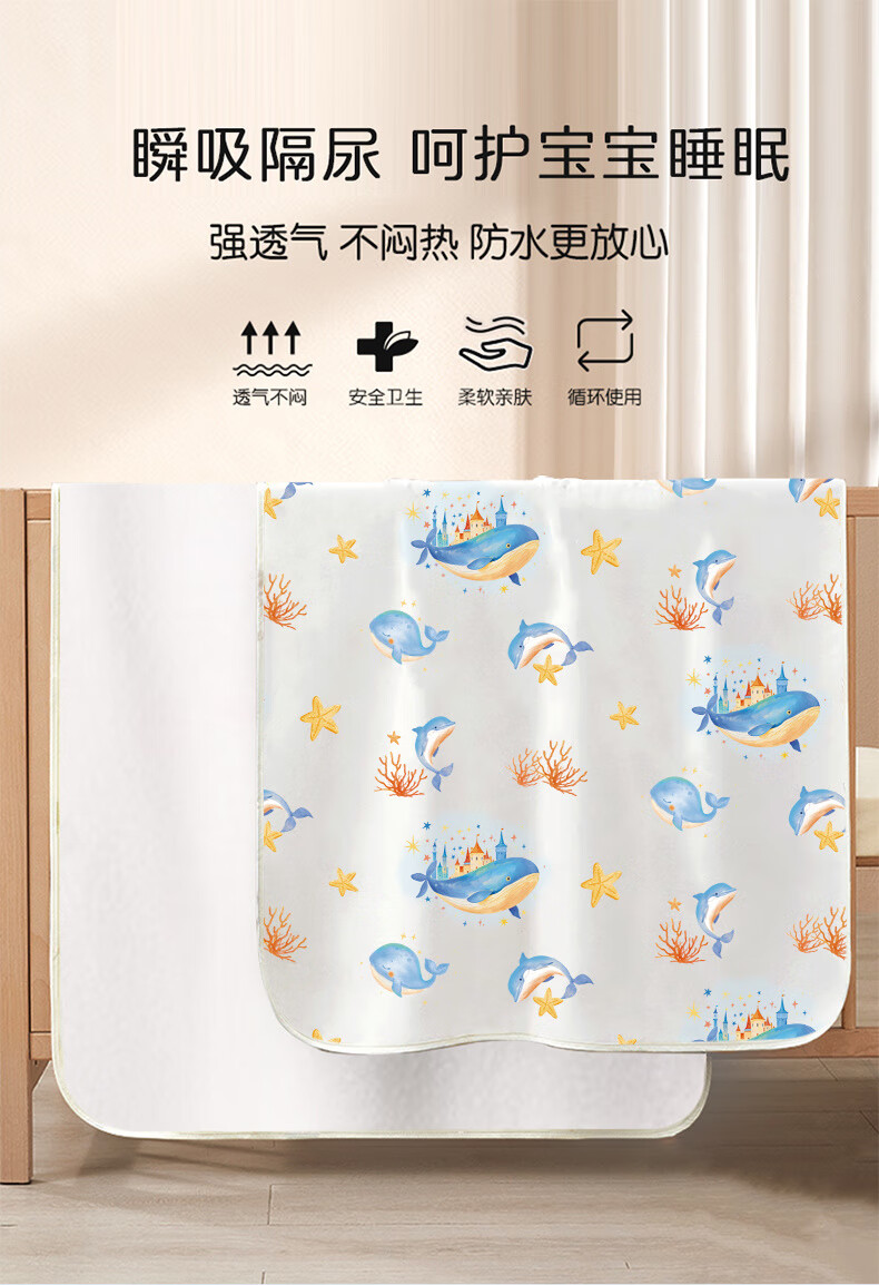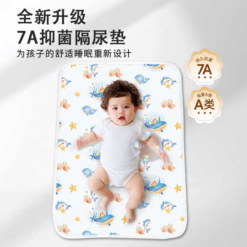 语森忆婴儿隔尿垫可水洗防漏尿布垫整床防水新生儿童宝宝隔尿垫姨妈垫 【2条装】100*80CM 【7A-三层加厚隔尿】鲸悠豚欢