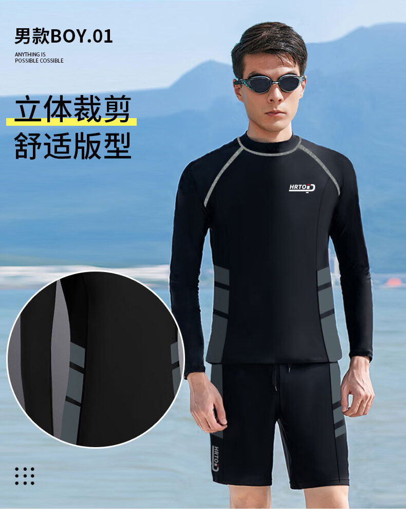 Hurun Combinaison de style coréen pour femmes, maillot de bain de sport fendu à manches longues, combinaison de surf pour couple conservateur, combinaison de méduse pour hommes, M pour hommes