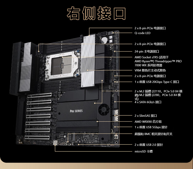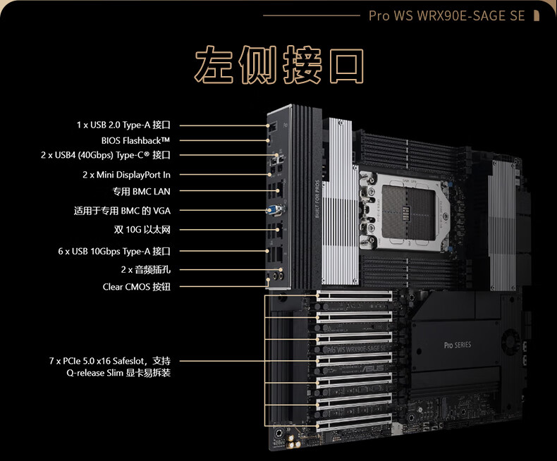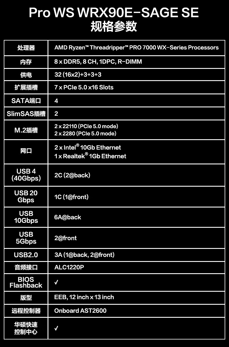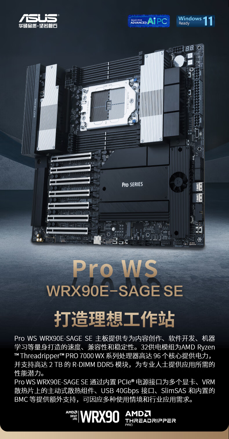 华硕(ASUS)Pro WS WRX90E-SAGE SE专业工作站主板 支持CPU 线程撕裂者7000/9000系列(AMD sTR5插槽 EEB) Pro WS WRX90E-SAGE SE