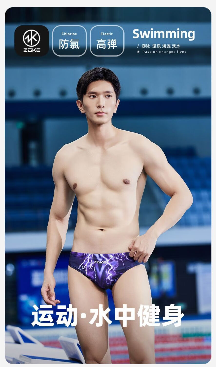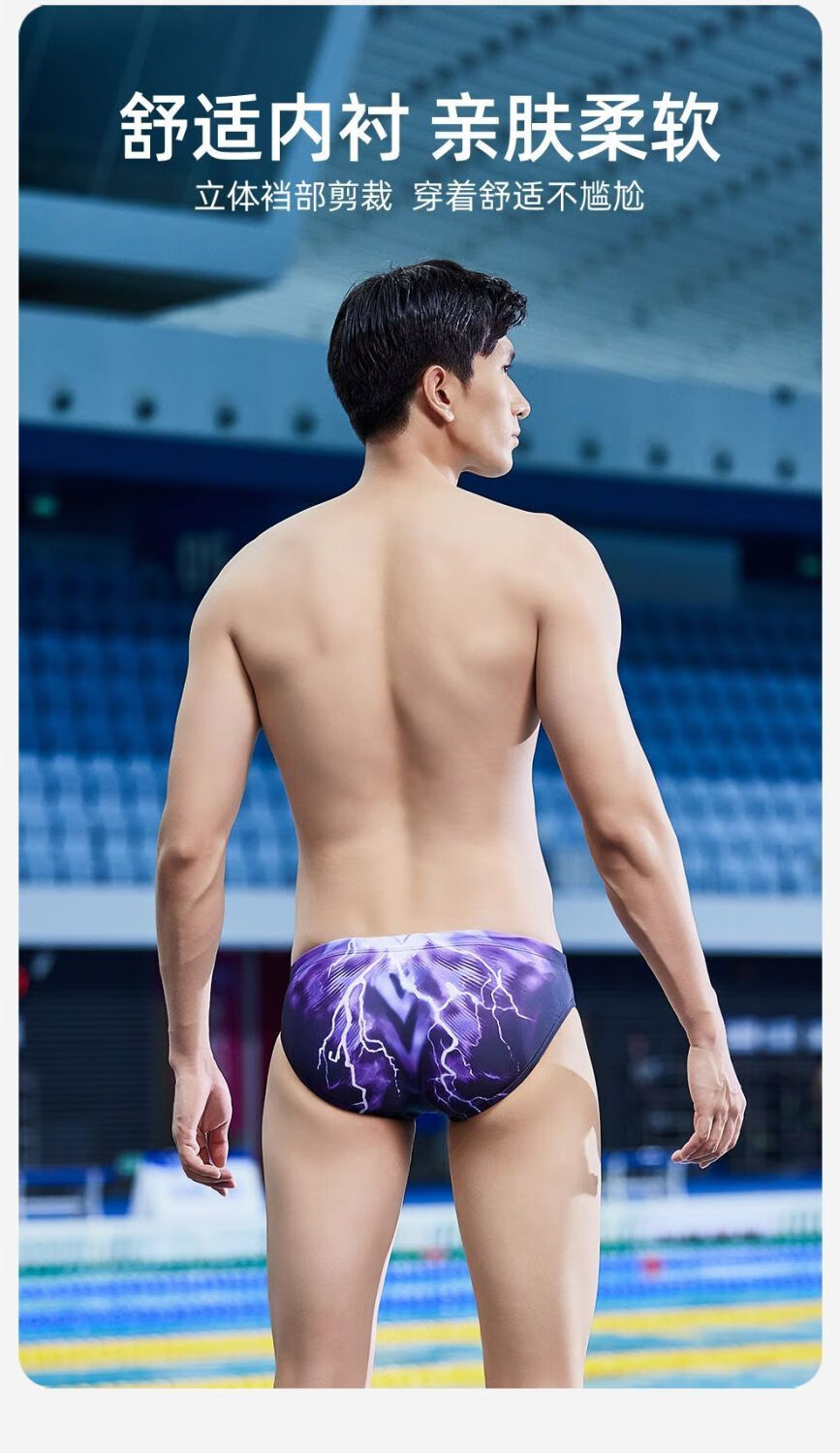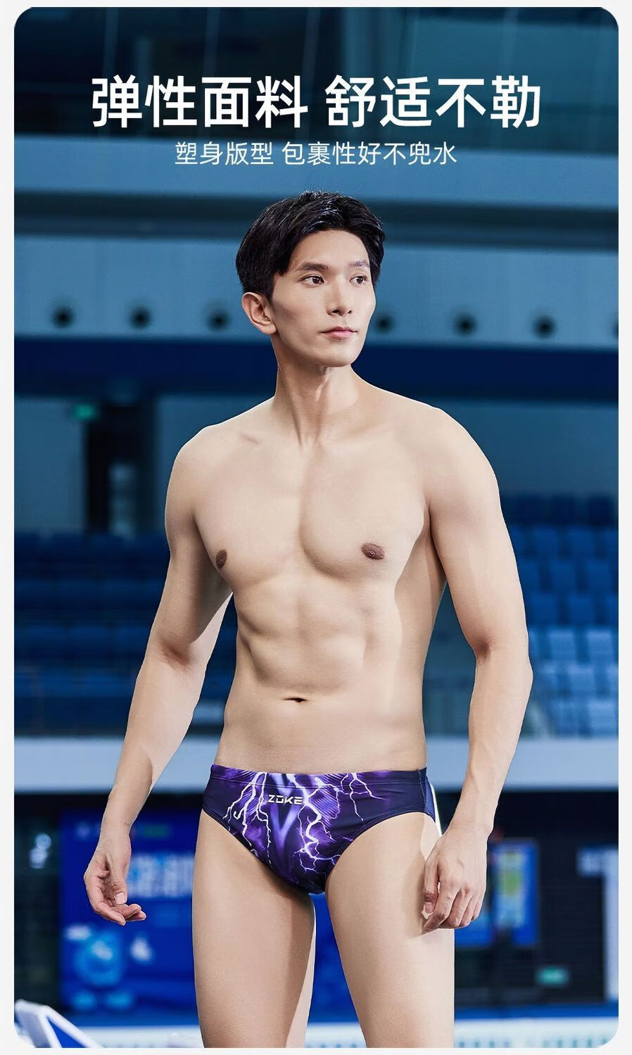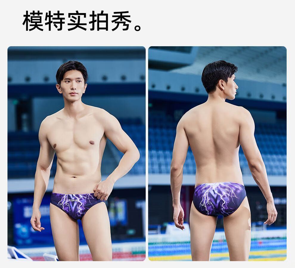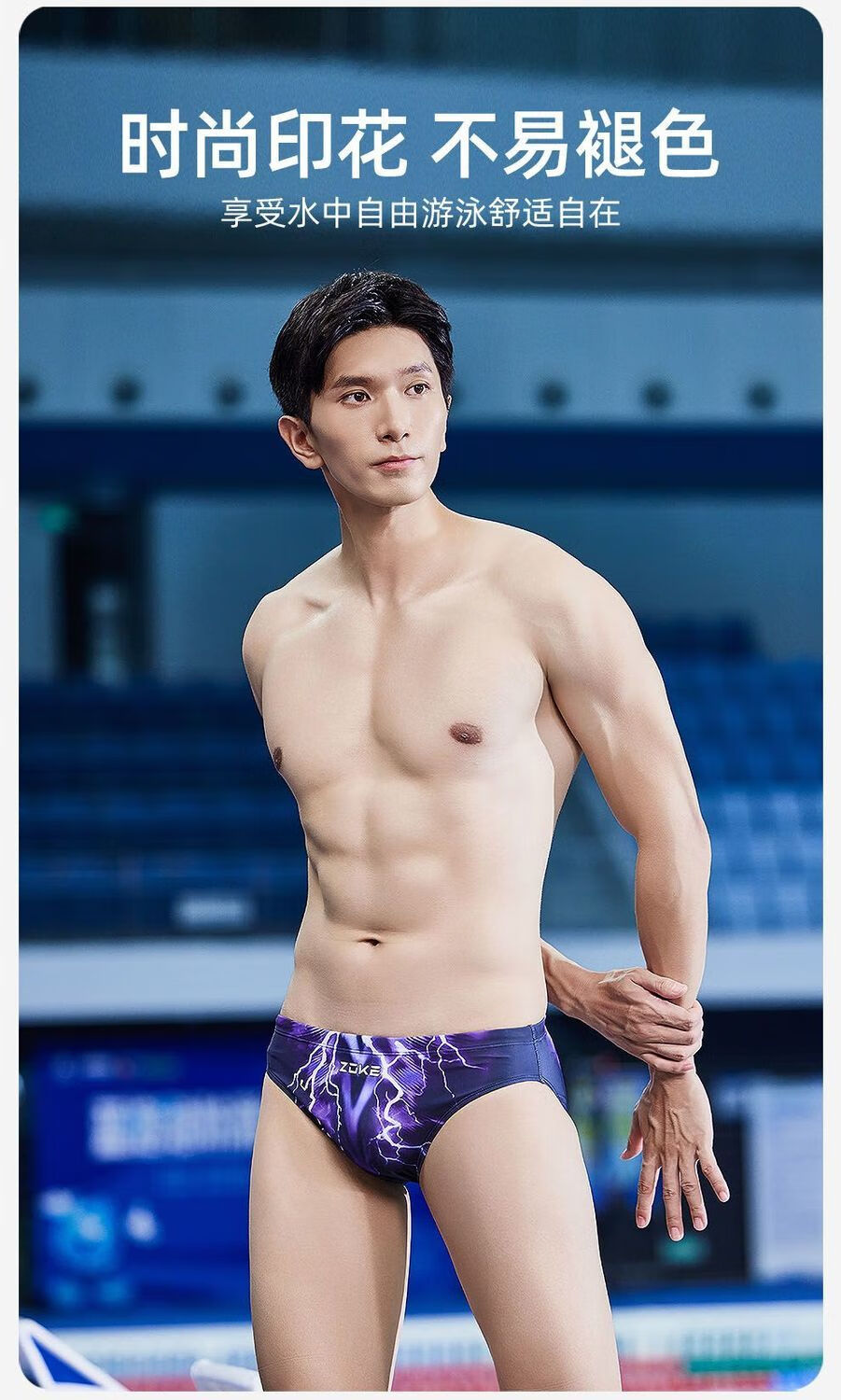 Zhouke men's triangle competitive swimming trunks new style fashionable and colorful sports training special high-elastic comfortable quick-drying swimming trunks purple lightning flower 125636806 M