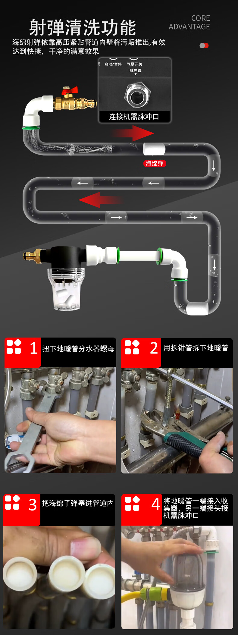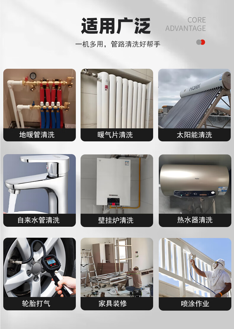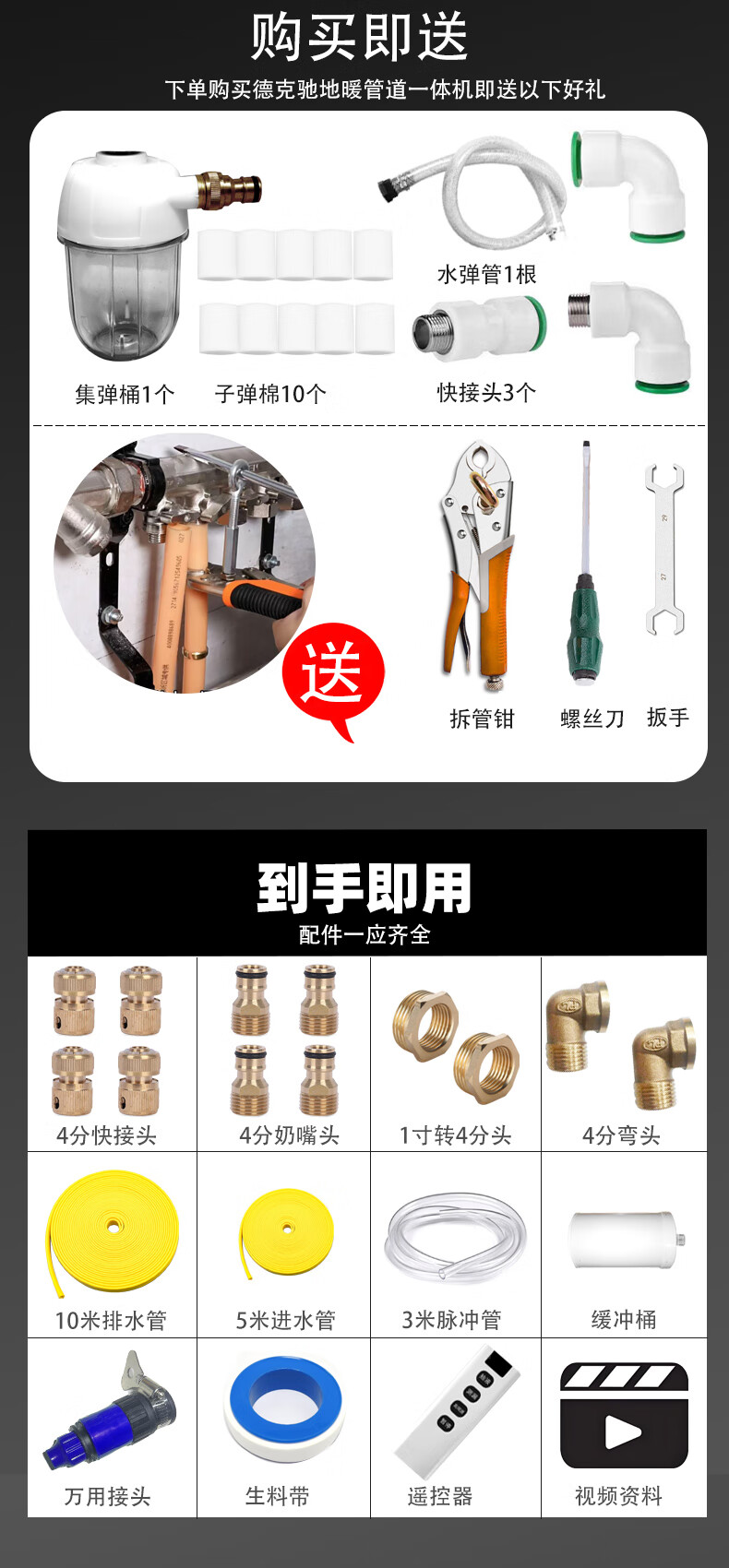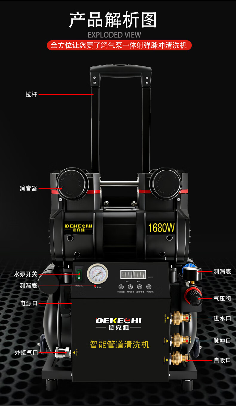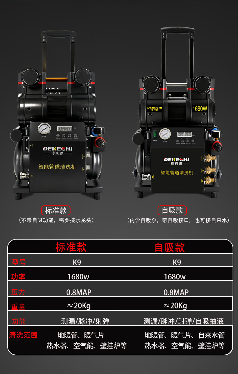 Dekchi floor heating cleaning machine pulse projectile fully automatic equipment water heater tap water pipe radiator cleaning all-in-one machine (pulse + side leakage + self-priming) household pipe cleaning K5 air pump-free floor heating special machine