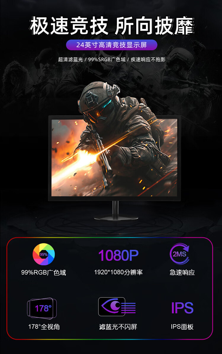 JD Logistics 24-Zoll-HD-IPS-Monitor, Computer-Display, LCD-Bildschirm, Büro, Spiel, Zuhause, kleiner Bildschirm, Erweiterung, externer sekundärer Bildschirm, Wandaufhängung, kostenlos HDMI + VGA, 22 Zoll, gerader Bildschirm, Mikrorand, Schwarz, 1920 x 1080