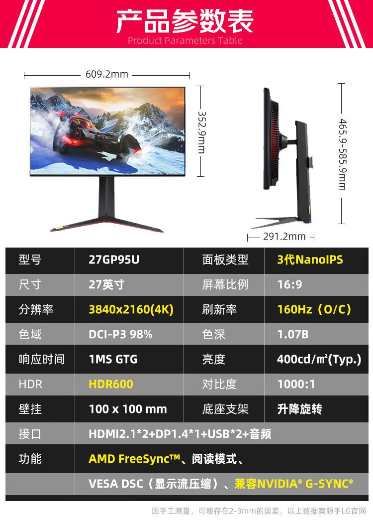 LG27G810A 27英寸 4K180Hz双模1K360高刷  游戏电竞显示器PS5 满血HDMI2.1 电脑显示屏 硬件低蓝光 4K180Hz 双模27G810A【95U升级版】