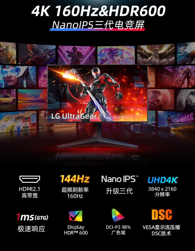 LG27G810A 27英寸 4K180Hz双模1K360高刷 游戏电竞显示器PS5 满血HDMI2.1 电脑显示屏 硬件低蓝光 4K180Hz 双模27G810A【95U升级版】