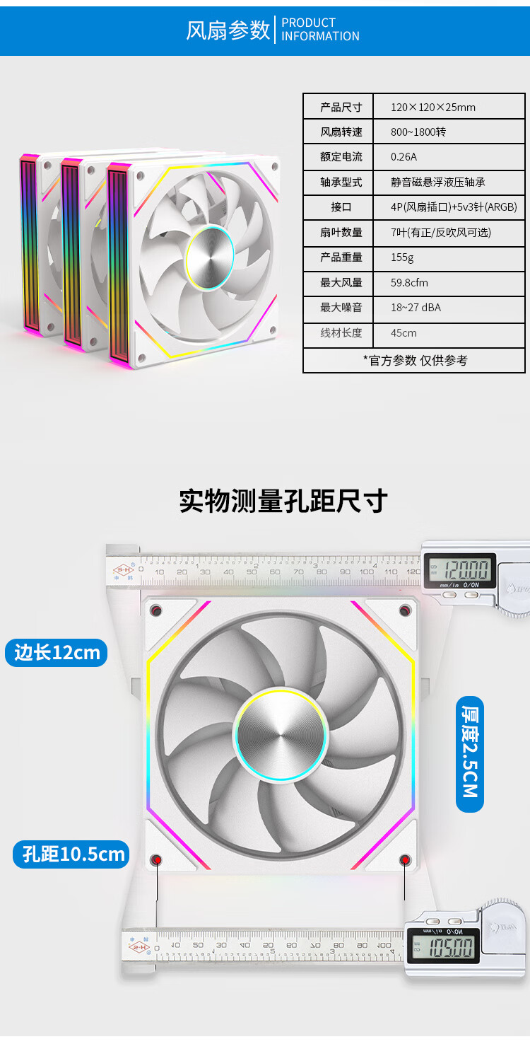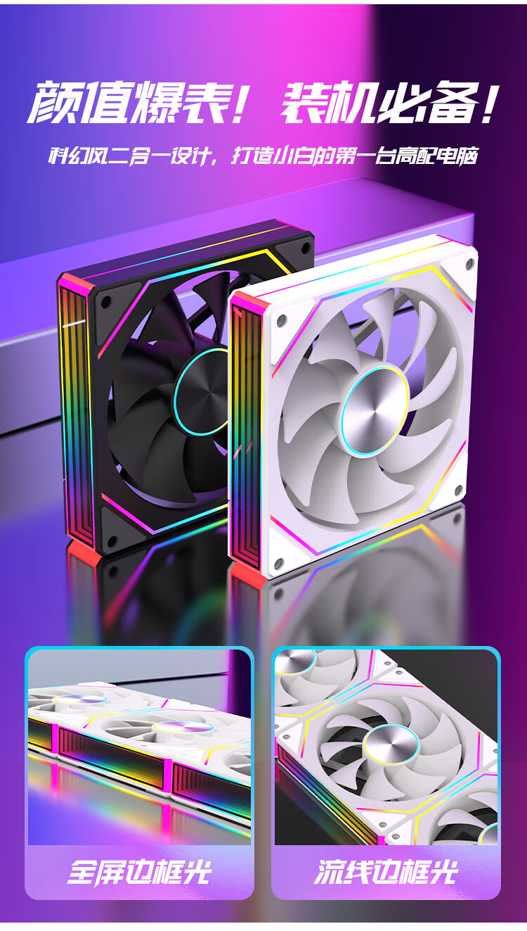 SilentEdge Prism 7pro chassis fan 6pro ultra-quiet 12cm cooling desktop computer sea view room divine light synchronization PWM temperature control speed regulation 5v3 needle light adjustment ARGB Prism 7pro white reverse blade (air inlet)