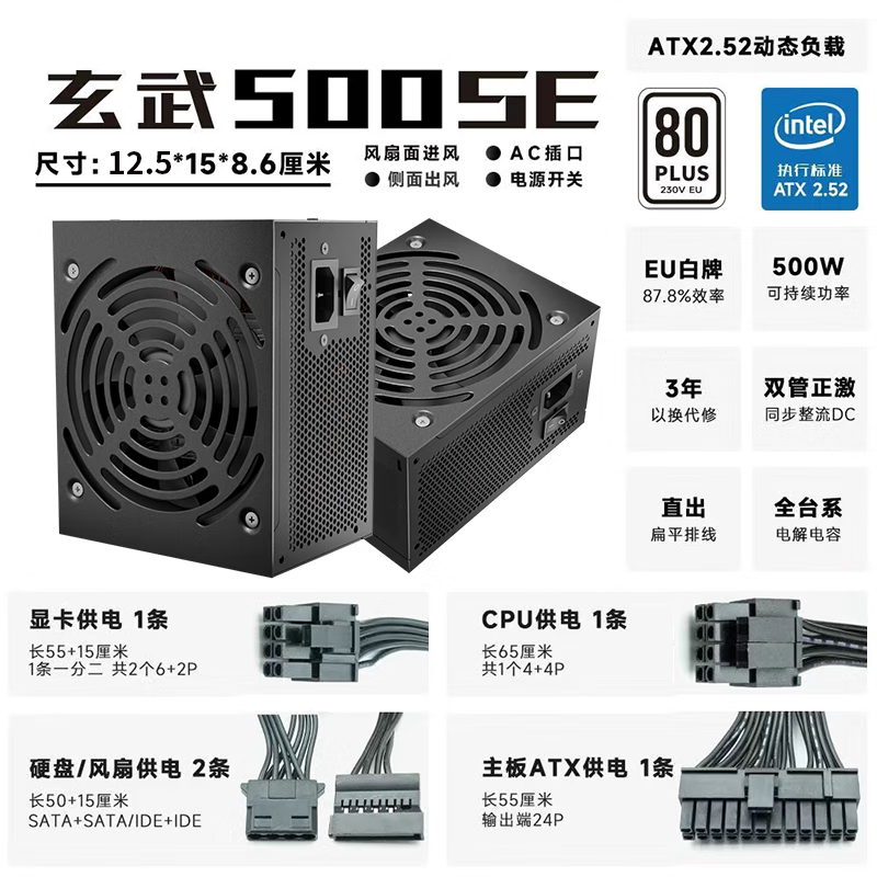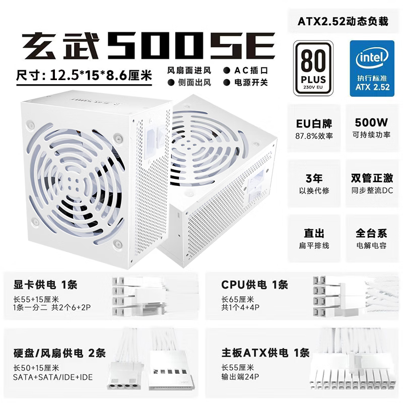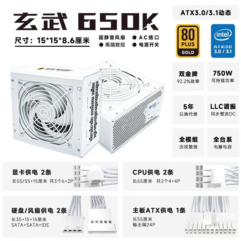 技嘉/驿晨宇 玄武500SE 650SE 650K 850K 金牌全模组 全新台式机电脑ATX电源 玄武650E 工包 黑色【额定650W】 【含安规电源线,含模组线】