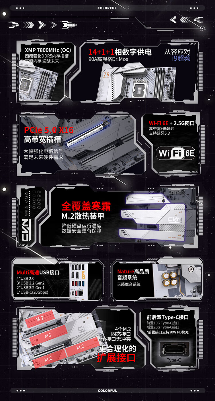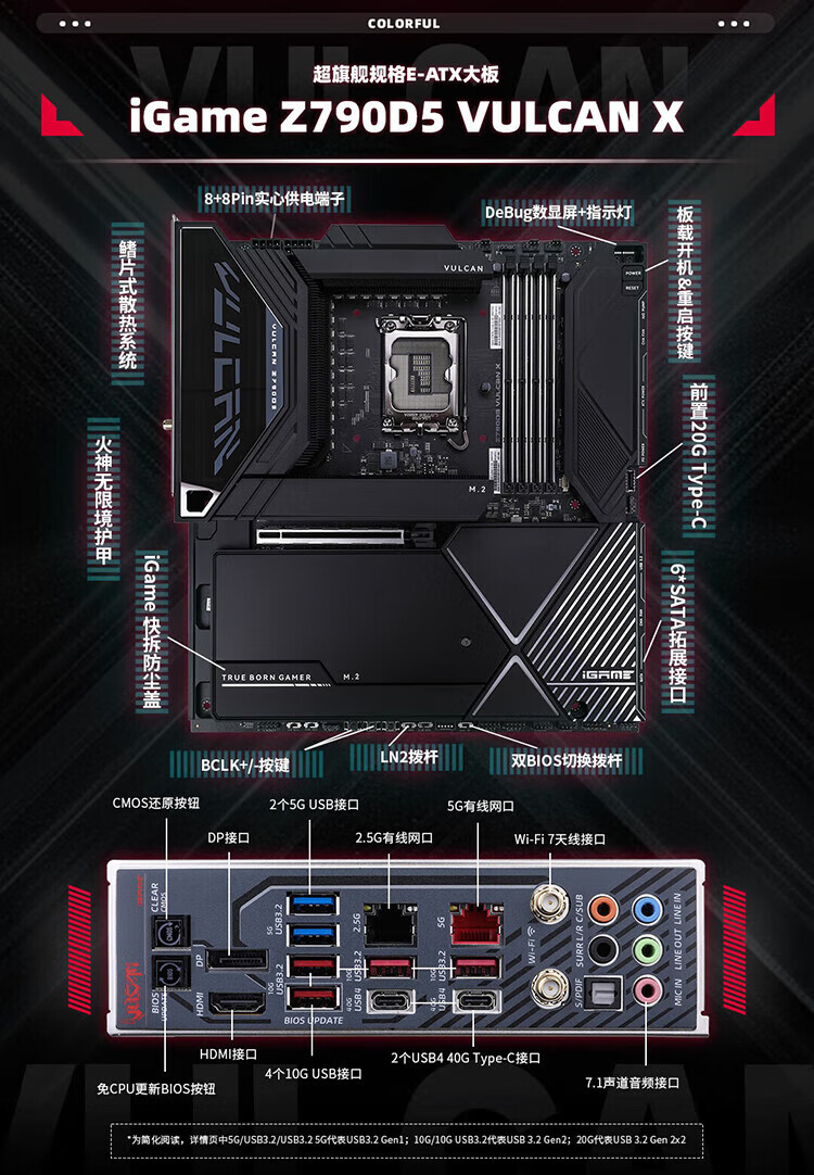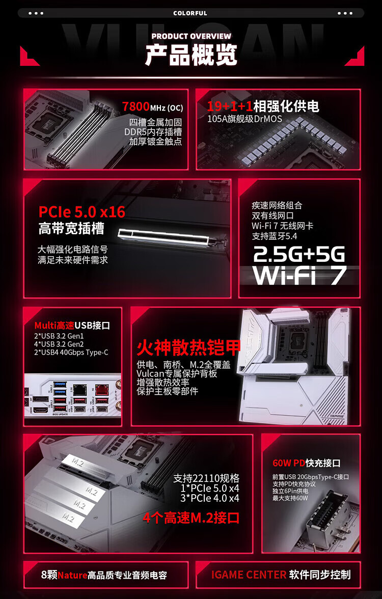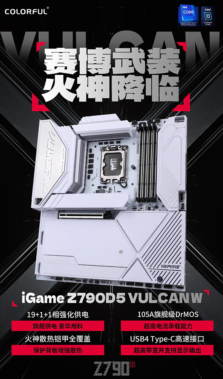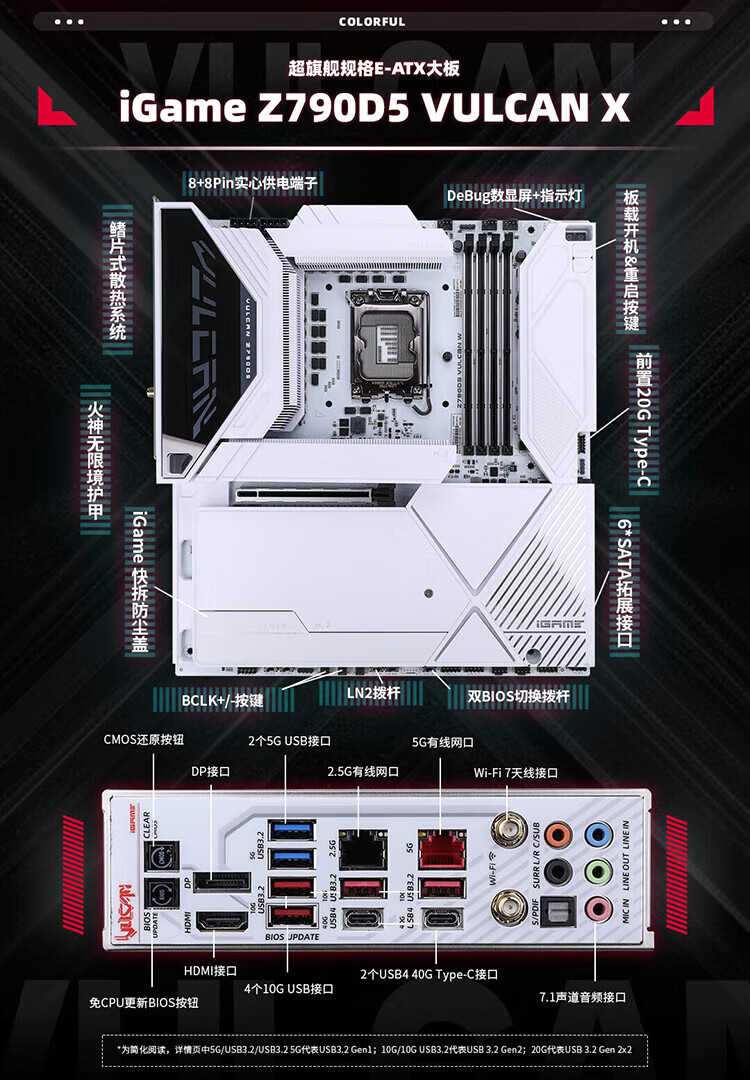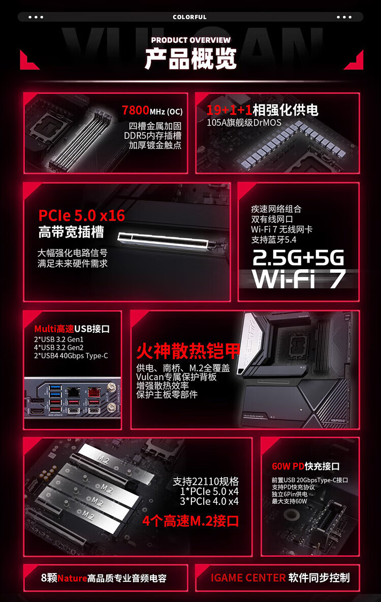 Das farbenfrohe Z790-Motherboard unterstützt das Intel Desktop-Computer-Motherboard Z790 D5 Vulcan WIFI Vulcan V20 der 12., 13. und 14. Generation CPU14600KF/14700KF/14900K