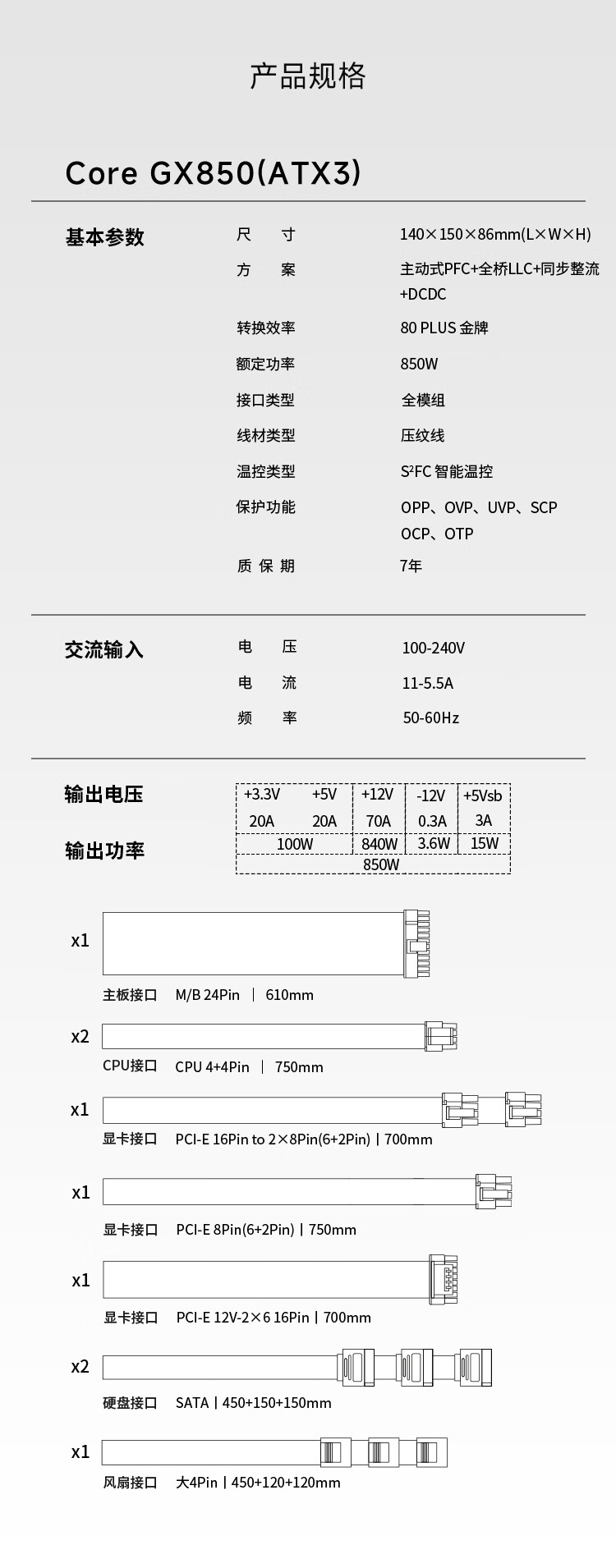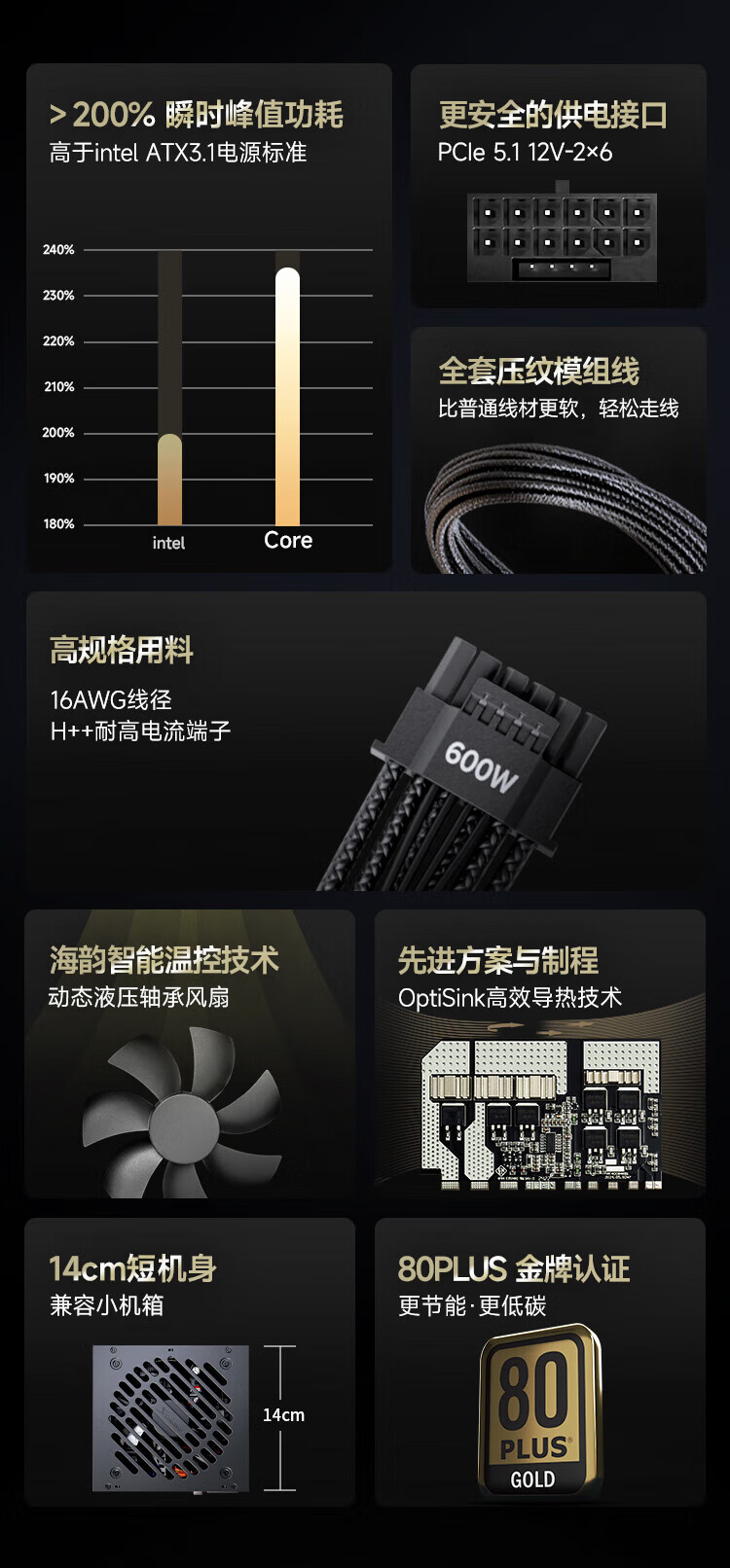 Haiyuns neues Netzteil CORE GX ATX3 650/750/850 Goldmedaille Vollmodell 12V-2x6 Netzteilschnittstelle Vollständiger Satz geprägter Modulkabel Sieben Jahre Garantie Neues Produkt CORE Goldmedaille direkt aus GC750