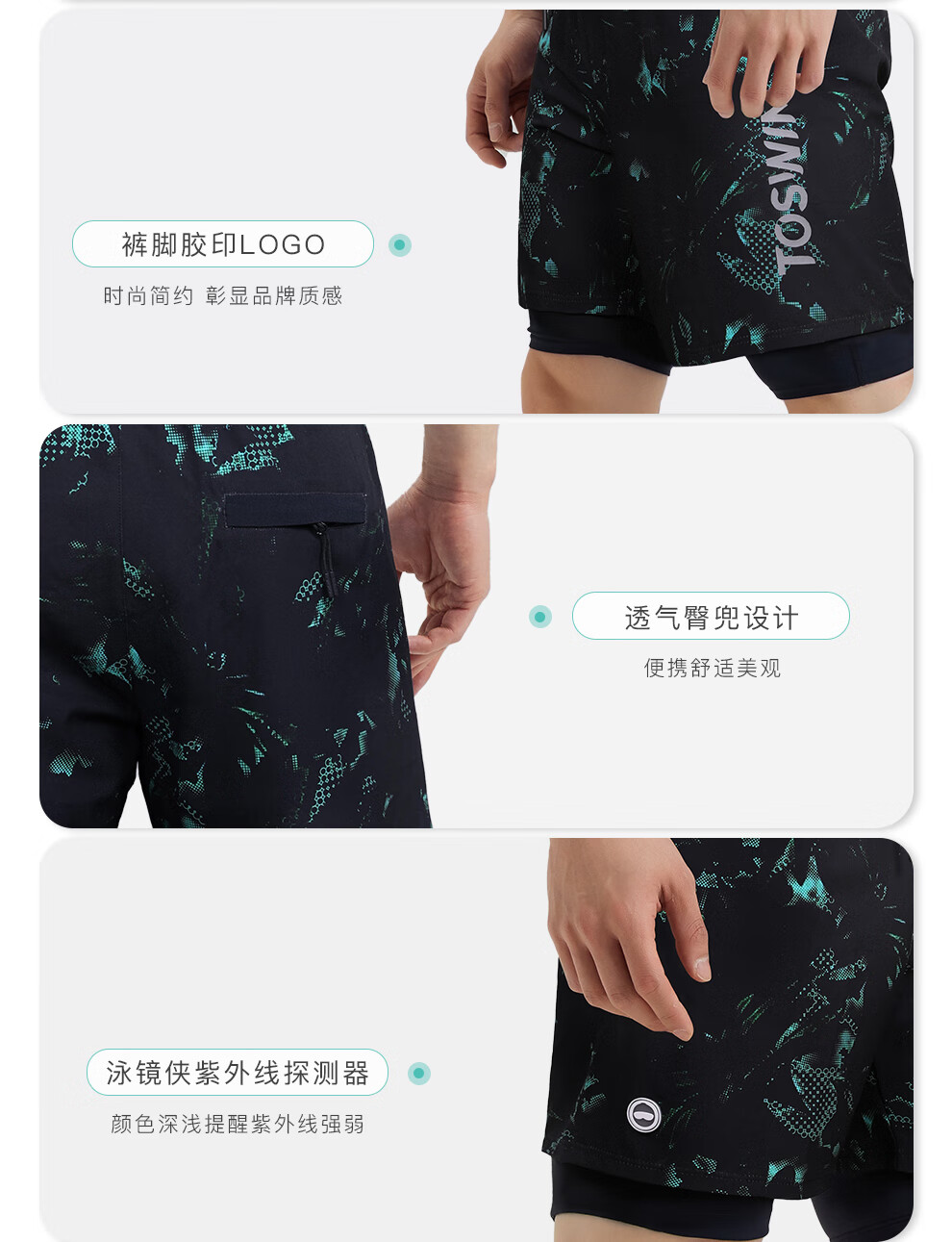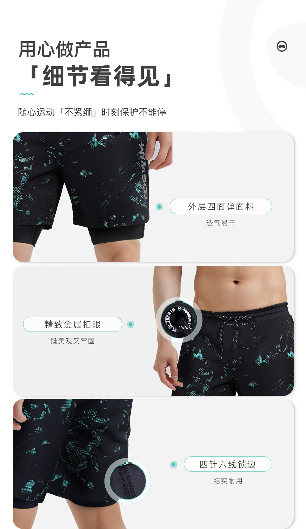 Tuosheng men's swimming trunks five-point beach trunks quick-drying and can be used in the water adult men's double-layer surfing swimming trunks ten-piece set for men, underwear + swimming goggles + swimming cap + bath M