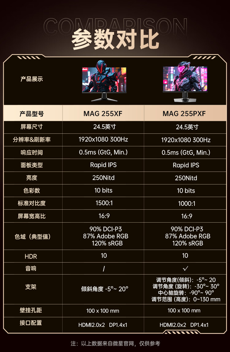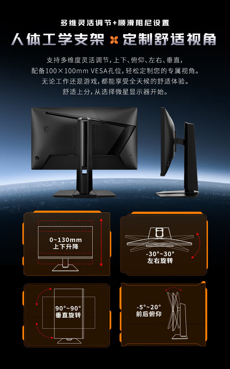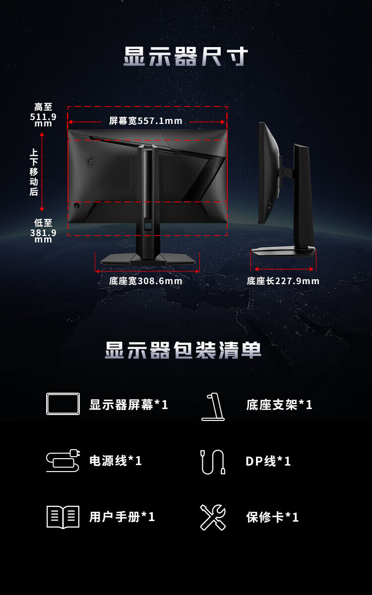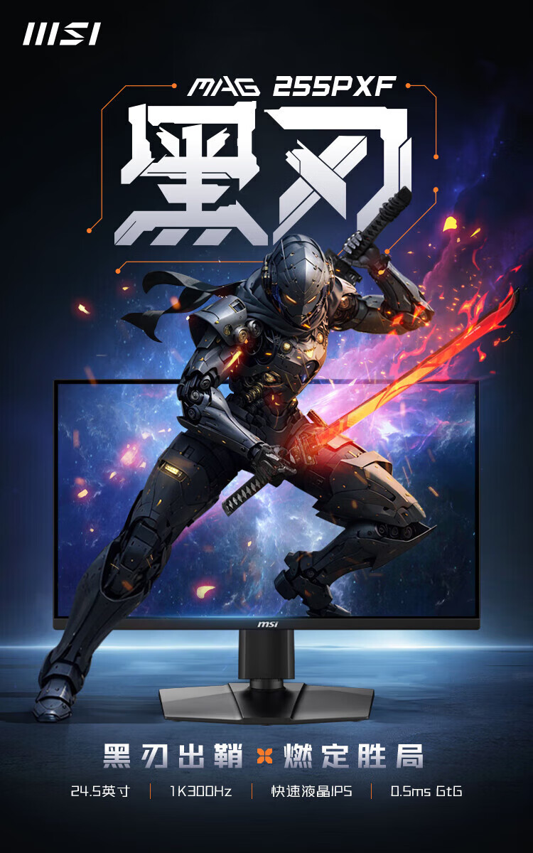 MSI 24,5-Zoll-nativer 300-Hz-0,5-ms-GTG-HDR10-FastIPS-Rotationslift-Extern-Notebook-Display-Gaming-E-Sport-Monitor MAG 255PXF