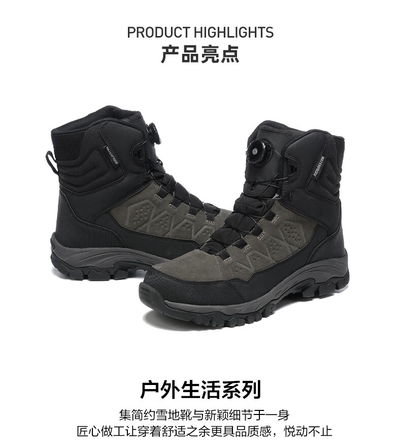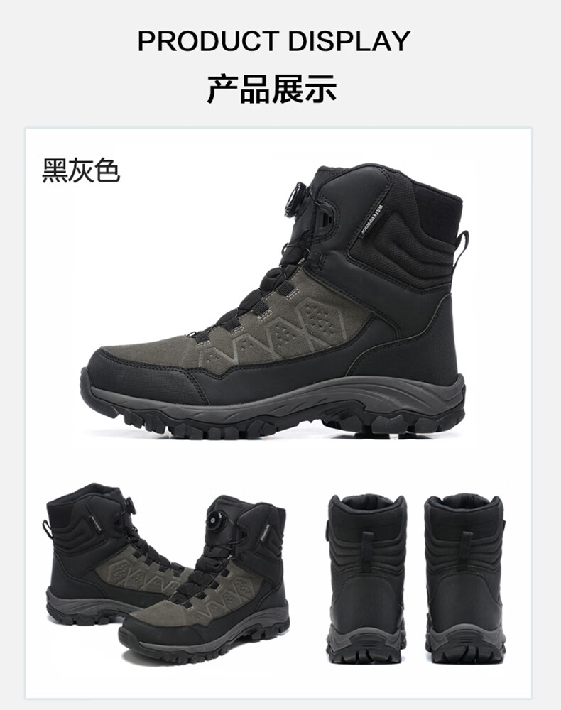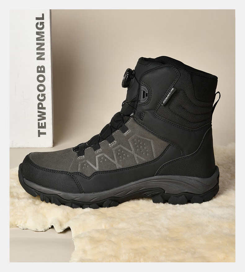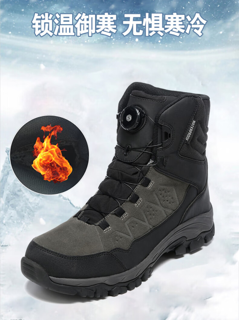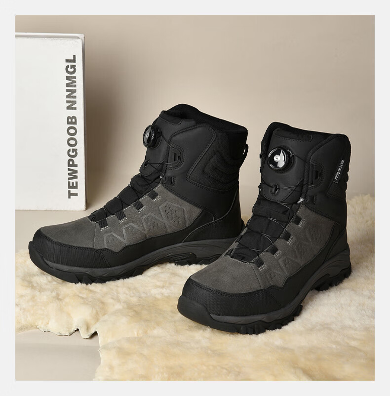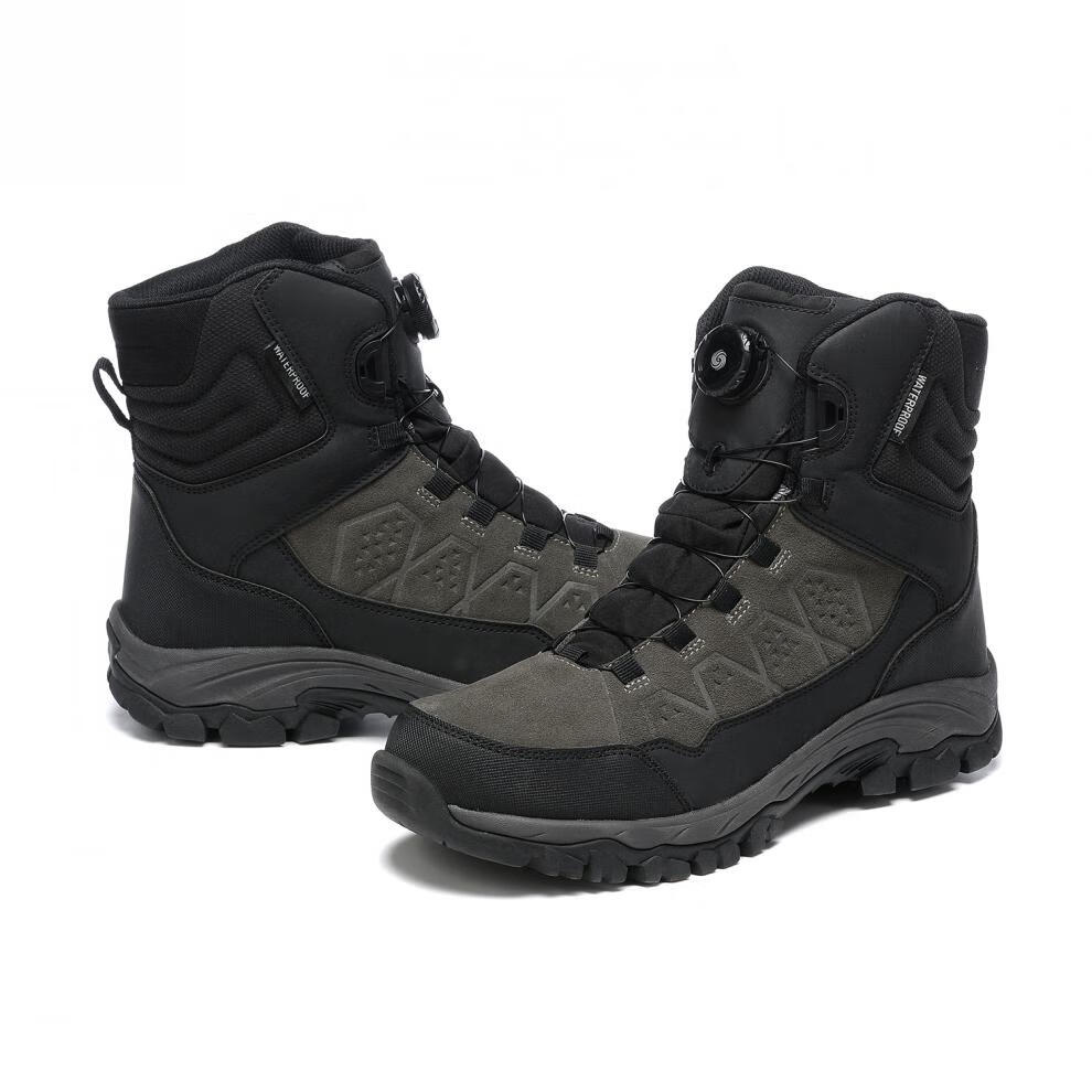 Jatulu Northeast Snow Country Outdoor Knob Botas de nieve para hombre, impermeables, antideslizantes, engrosadas, cálidas, para montañismo, esquí, zapatos de algodón, gris (hebilla de rotación)_Zapatos deportivos Código estándar 40