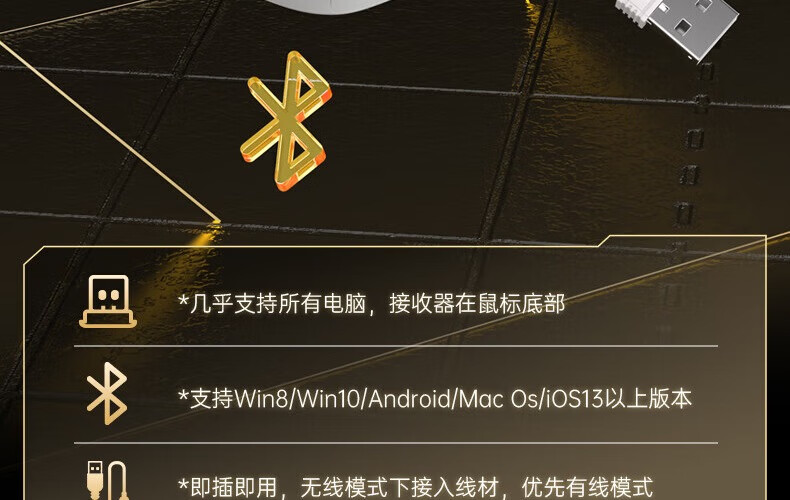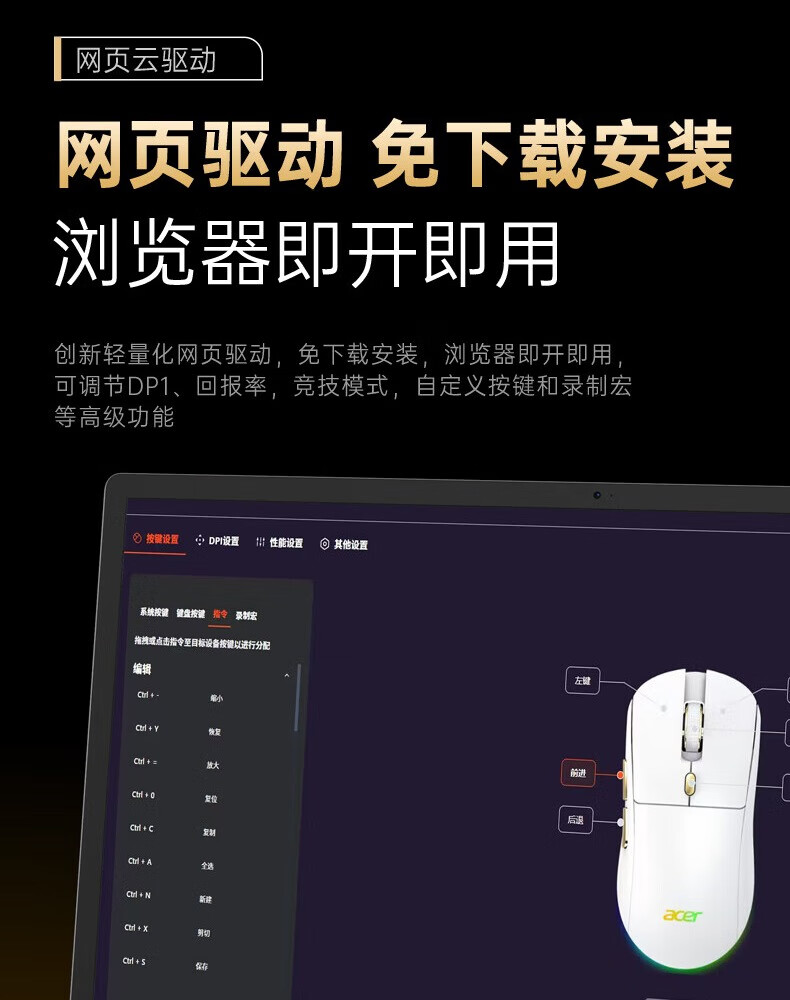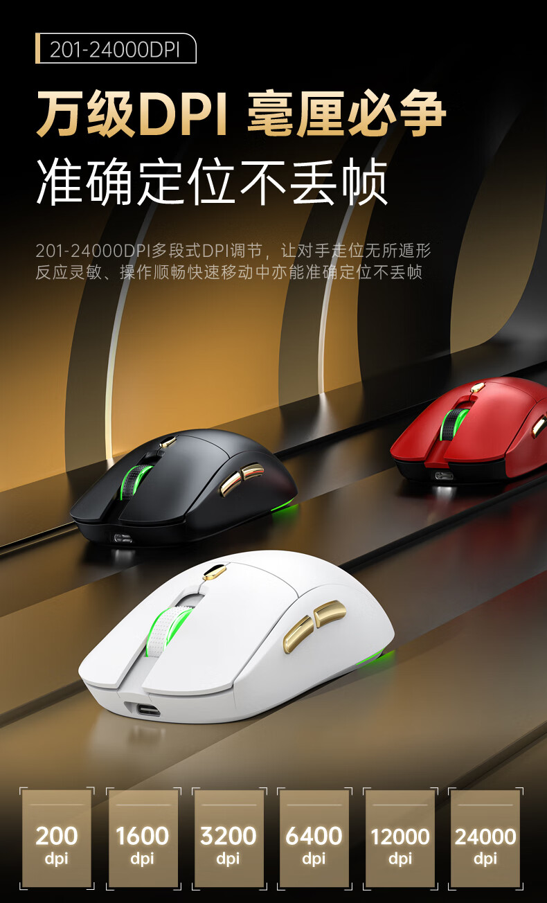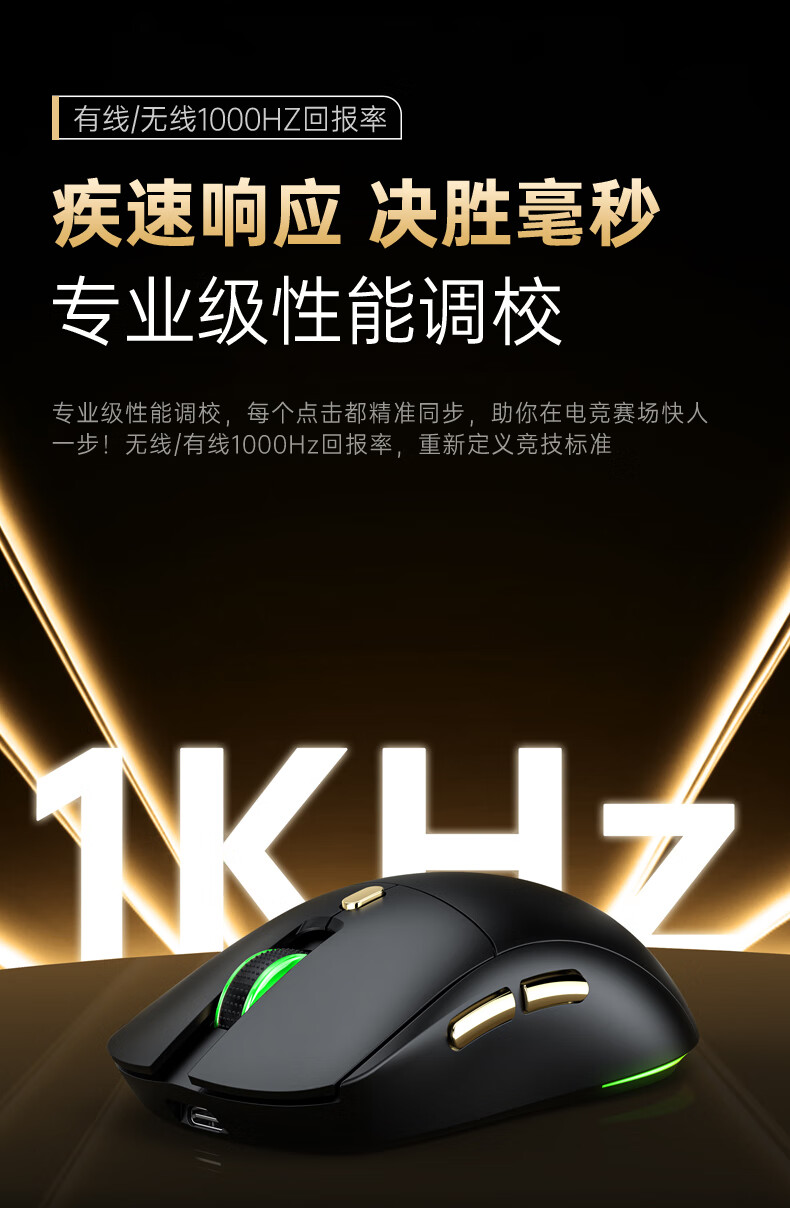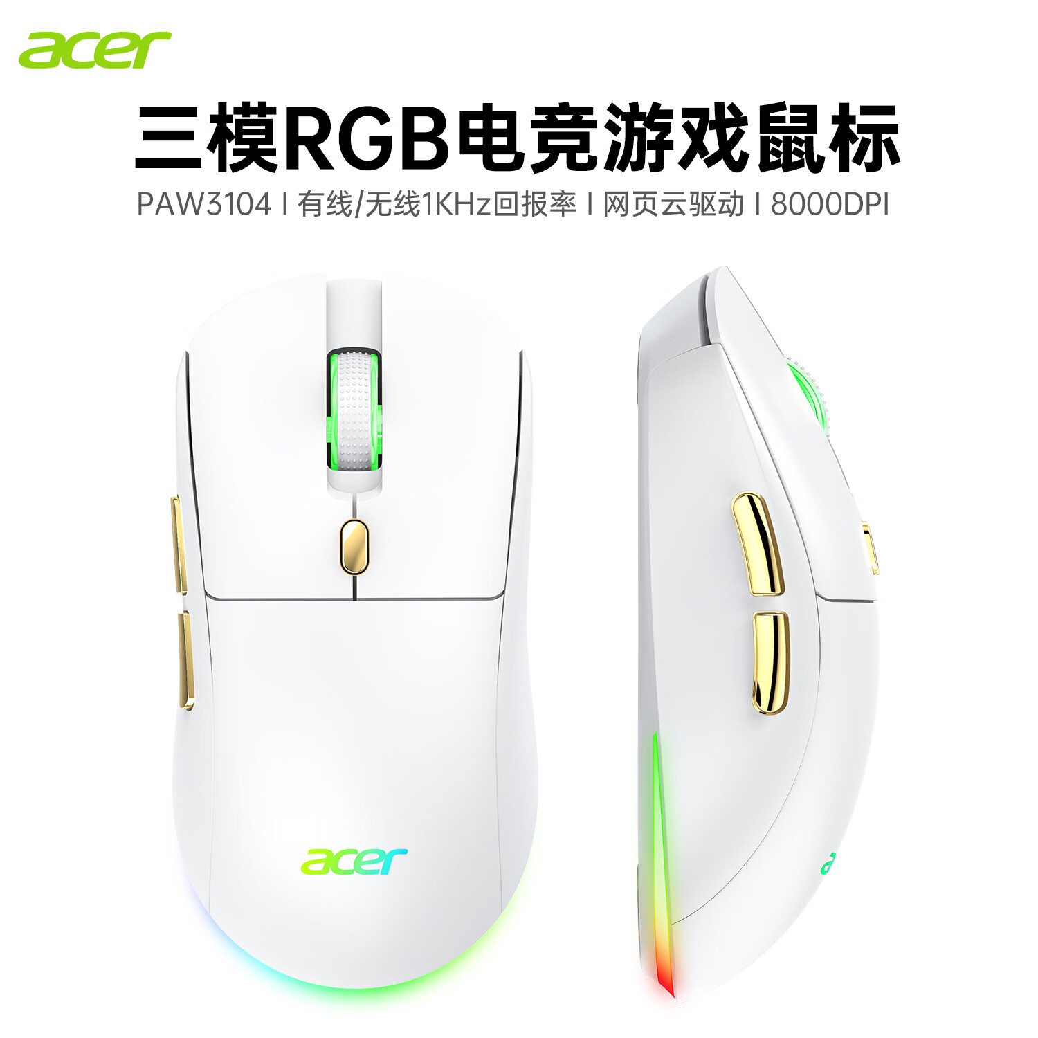 Acer Gaming-Maus mit drei Modi, kabelgebunden, kabellos, Bluetooth, RGB, Akku, programmierbarer Makrotreiber, Notebook, Desktop-Computer, Mobiltelefon, Tablet, IPAD, Büro, universell, Schwarz, Gold, Originalphase 3311-1K, Rücklaufquote 24000 DPI