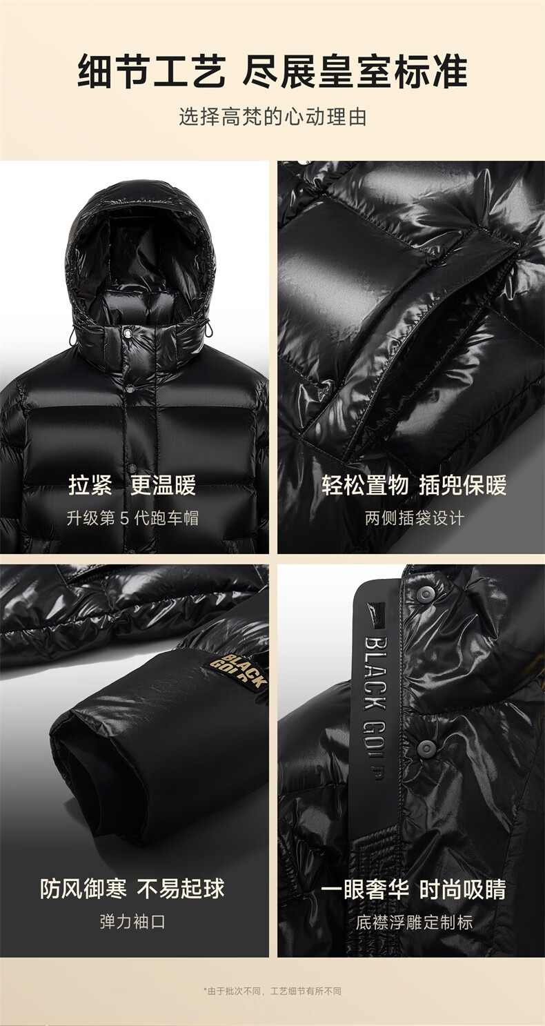 Gao Fan and Tian Xuning same style black gold goose down jacket Pioneer 5.0 five grid men's down jacket casual trendy bread jacket black L
