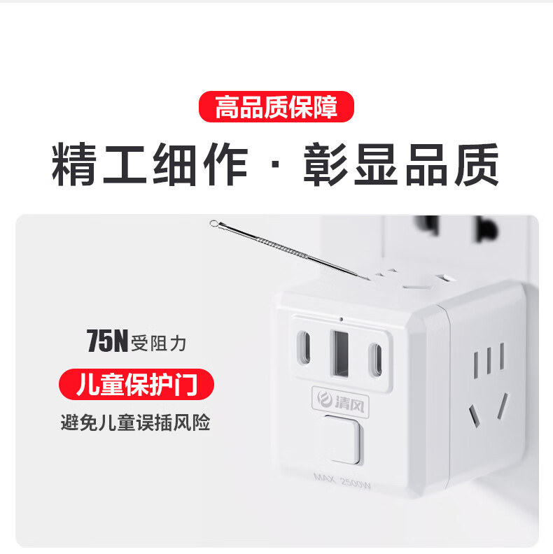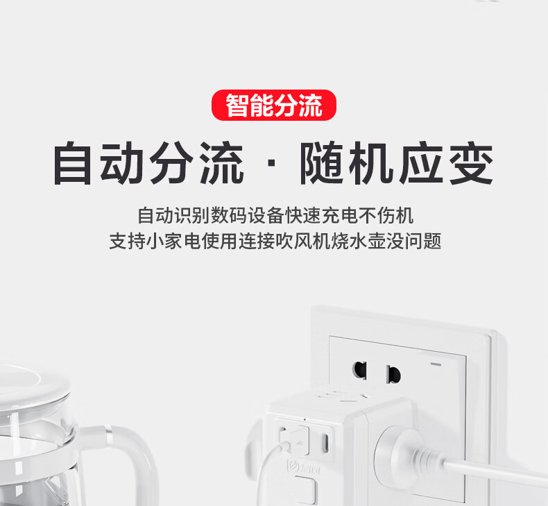 插座智能一转多魔方插座无线usb多功能插排家用宿舍大功率带线 无线 3位 黑色