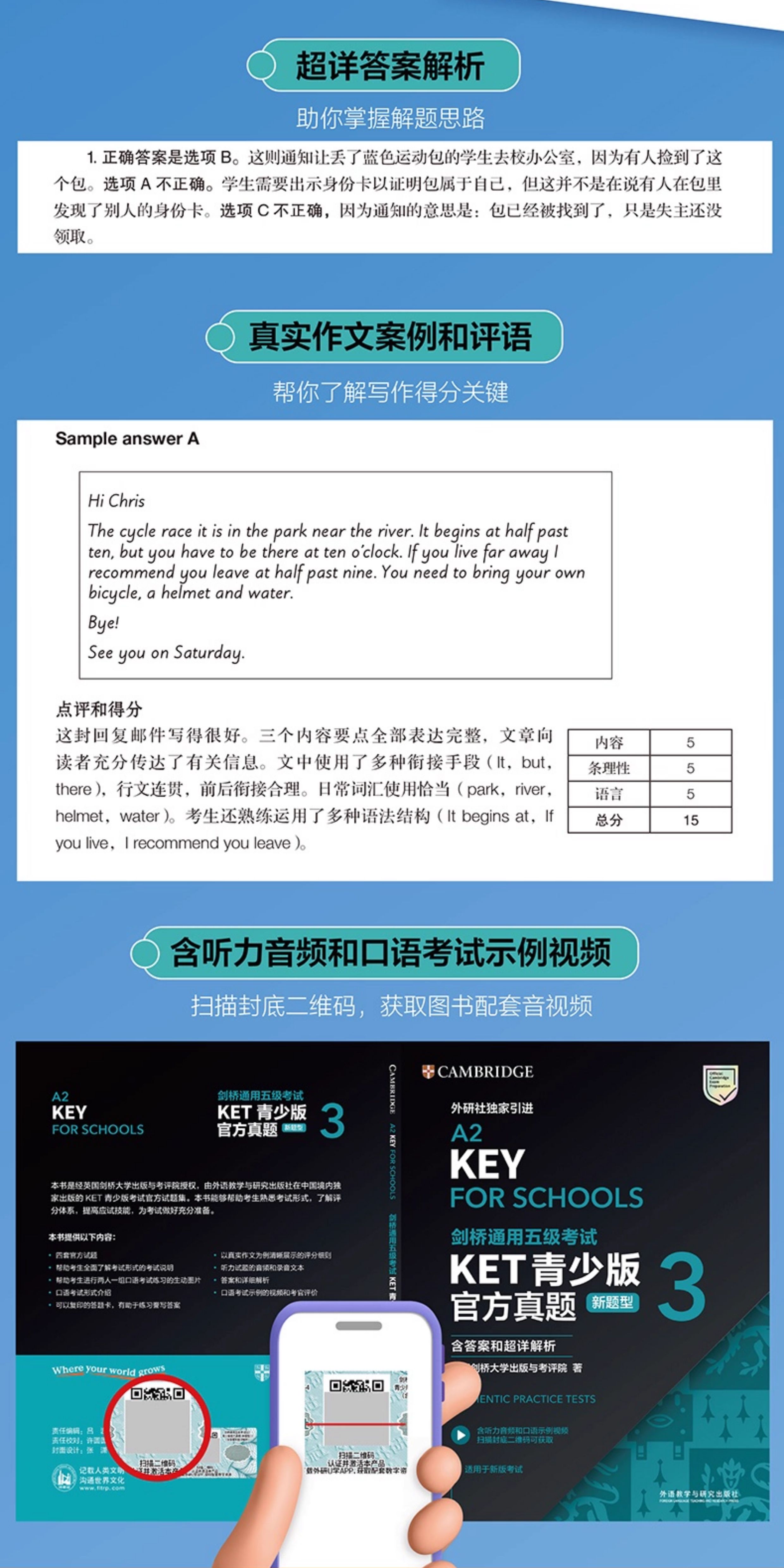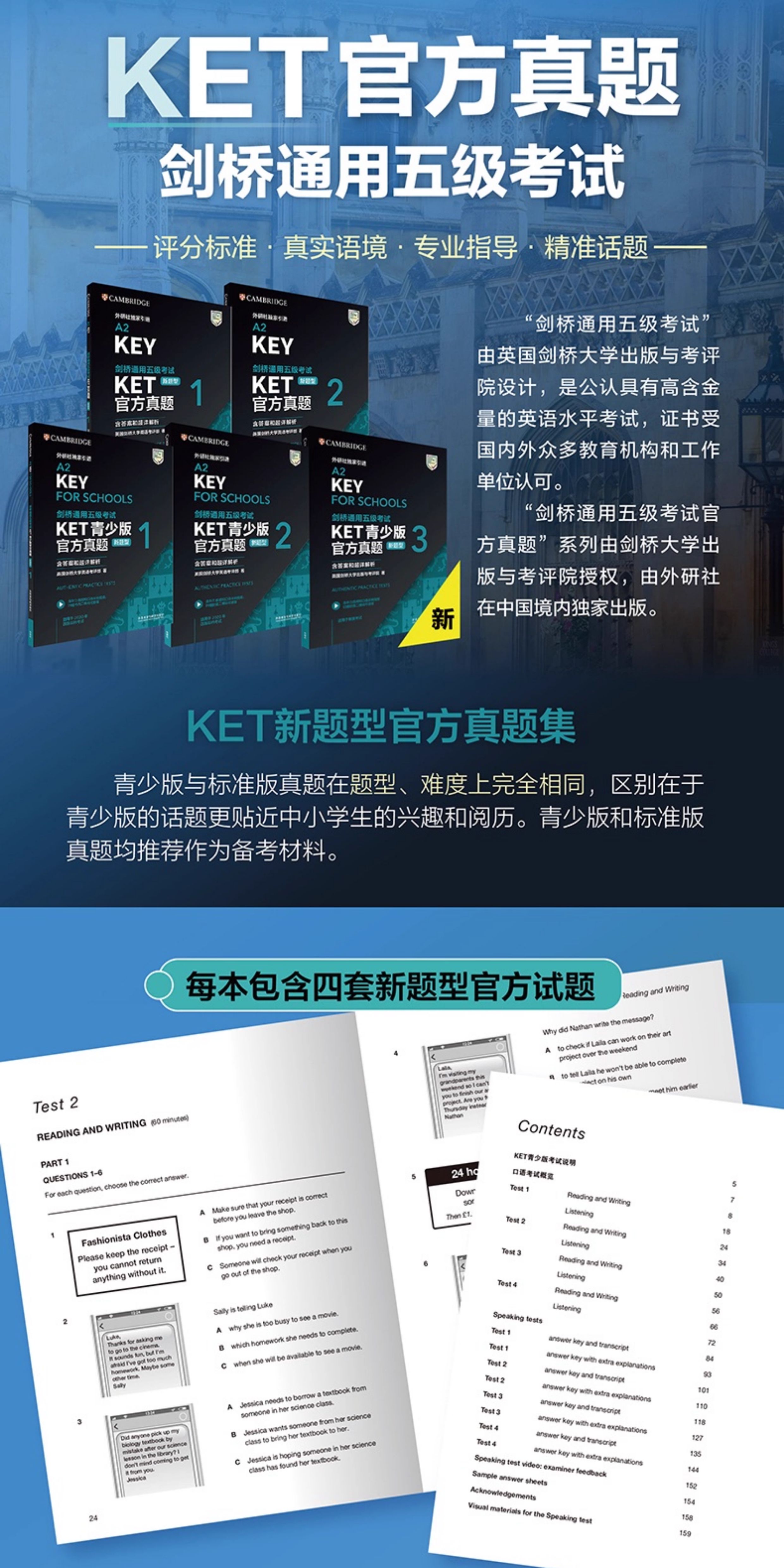 正版 剑桥通用五级考试KET青少版官方真题 新题型1+2+3含答案和超详解析 ket模拟考试题 英语证书入门考试备考资料 外研社 【3册】KET真题-青少版 1+2+3