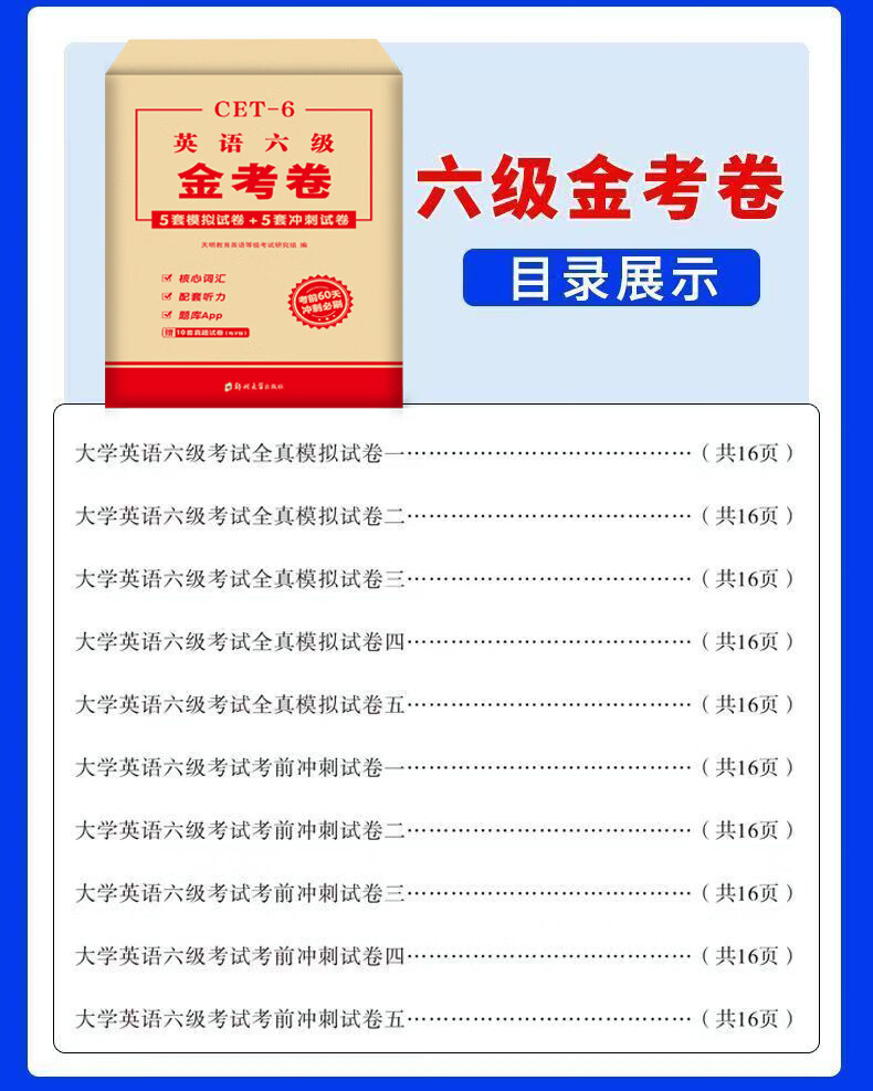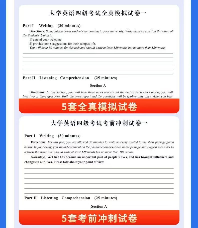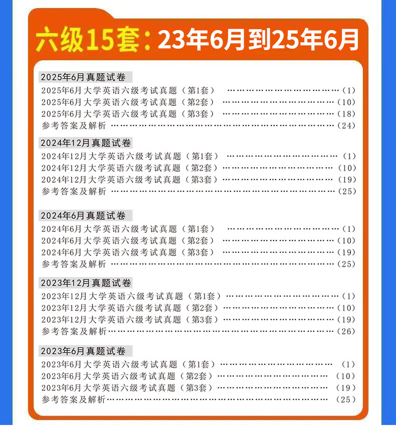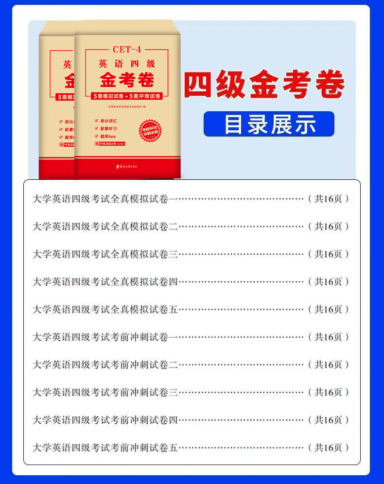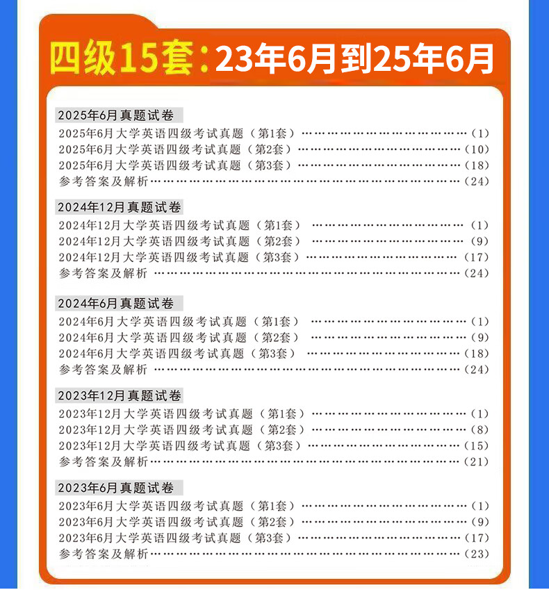 备考2025年12月大学英语四六级考试资料真题模拟题冲刺卷四级六级词汇书CET-4级46级模拟历年试卷真题单词卷子专项训练练习题刷题套卷听力音频资料真题详细解析 四级【15套真题+词汇+金考卷+1张答